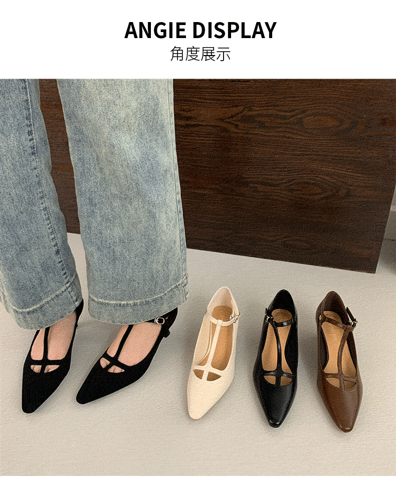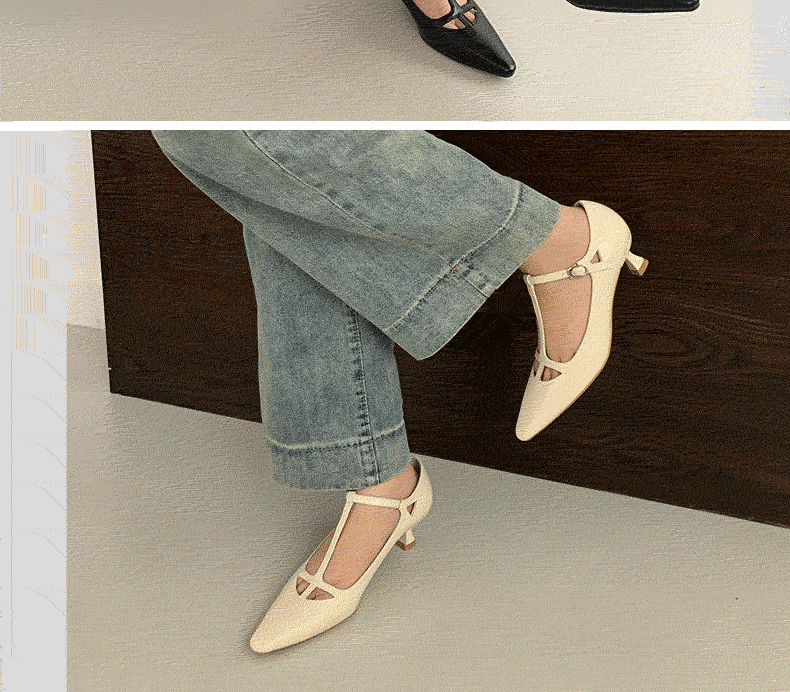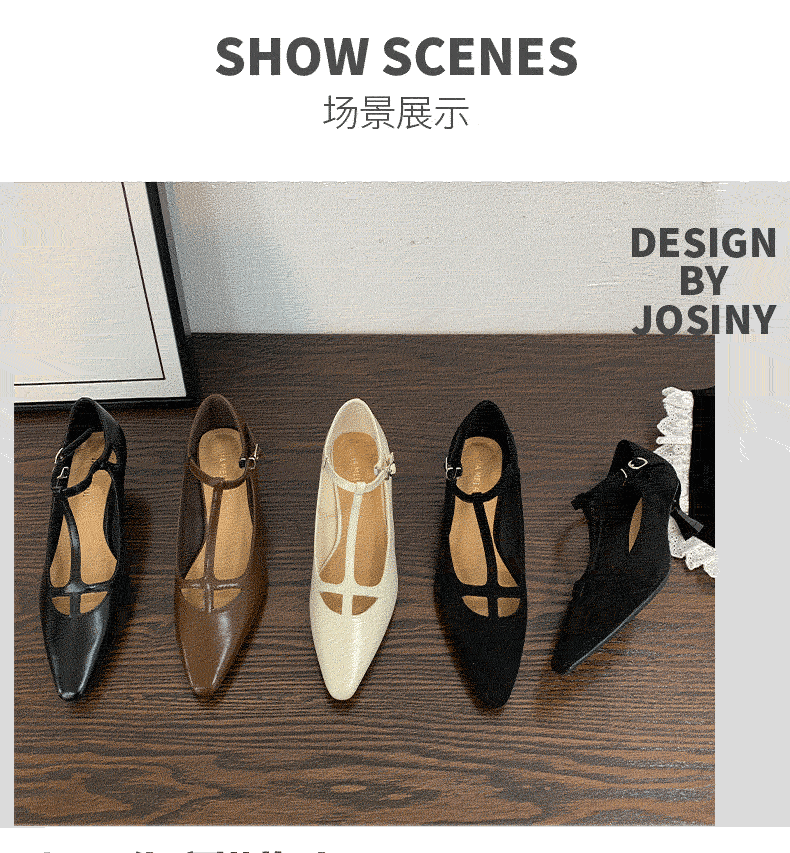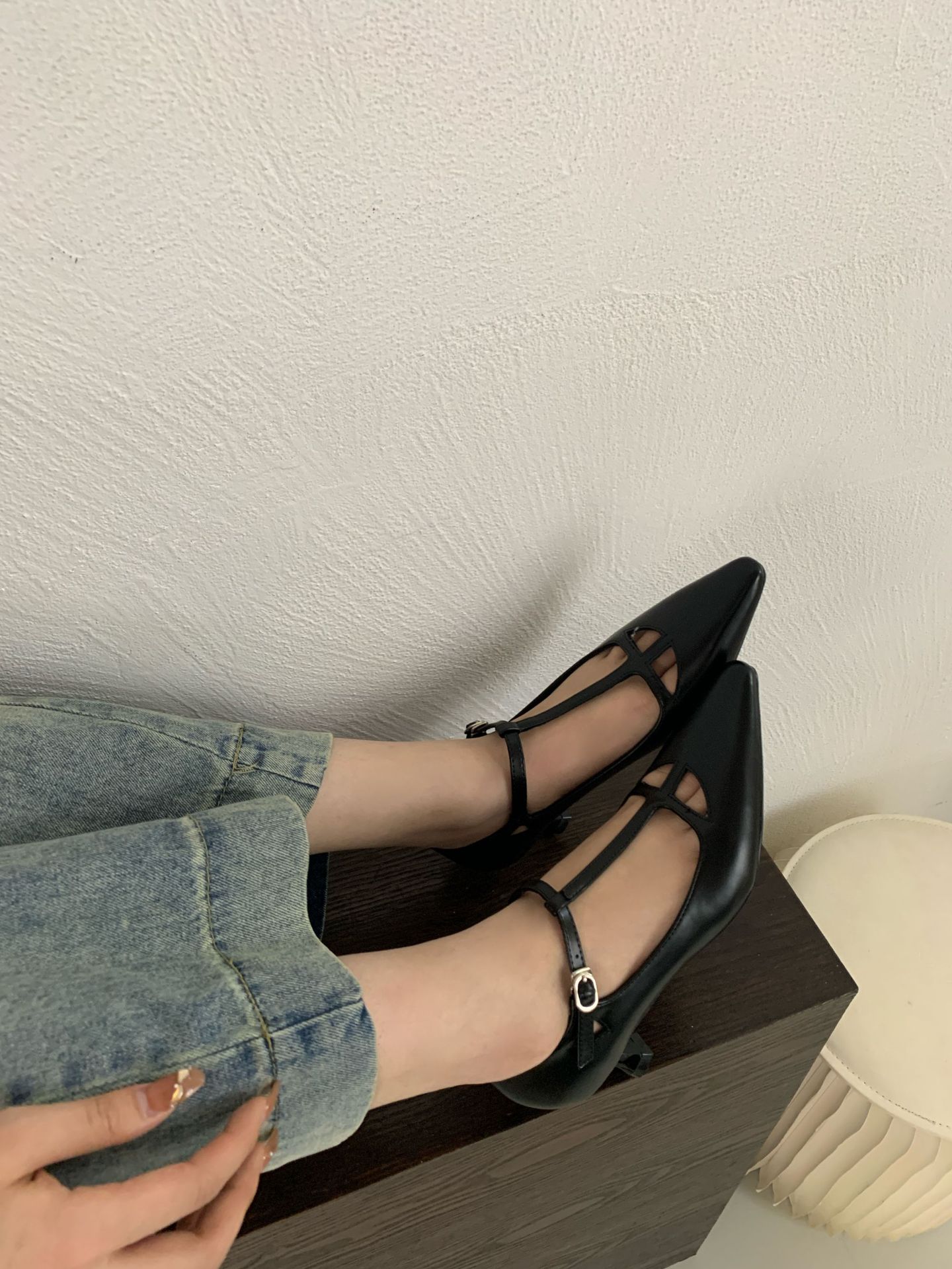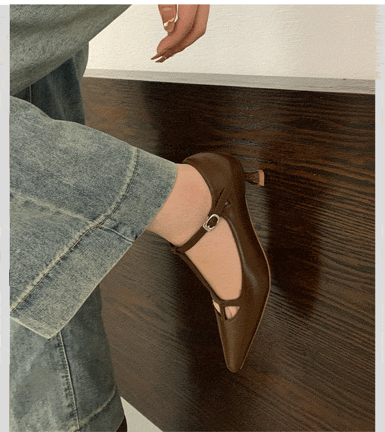 오리지널 신상품, 레트로 스타일의 세련된 디자인, 끈이 달린 얕은 굽의 펌프스, 뾰족한 앞코, 얇은 굽, 버클 장식의 메리제인 슈즈스토어 가기