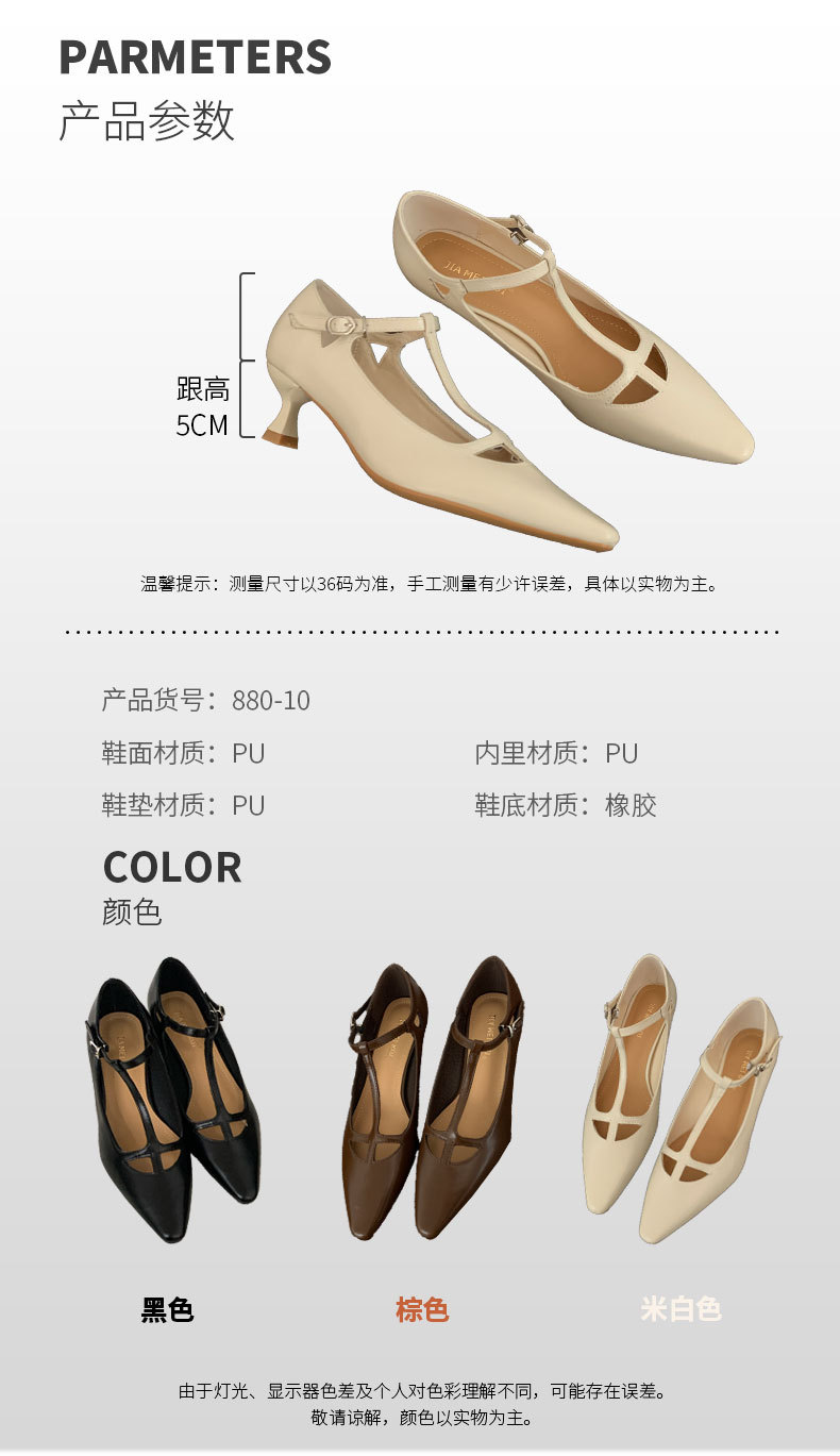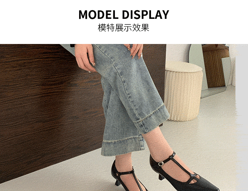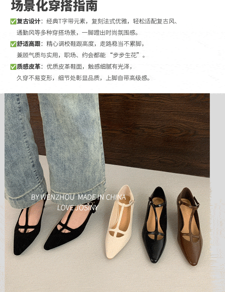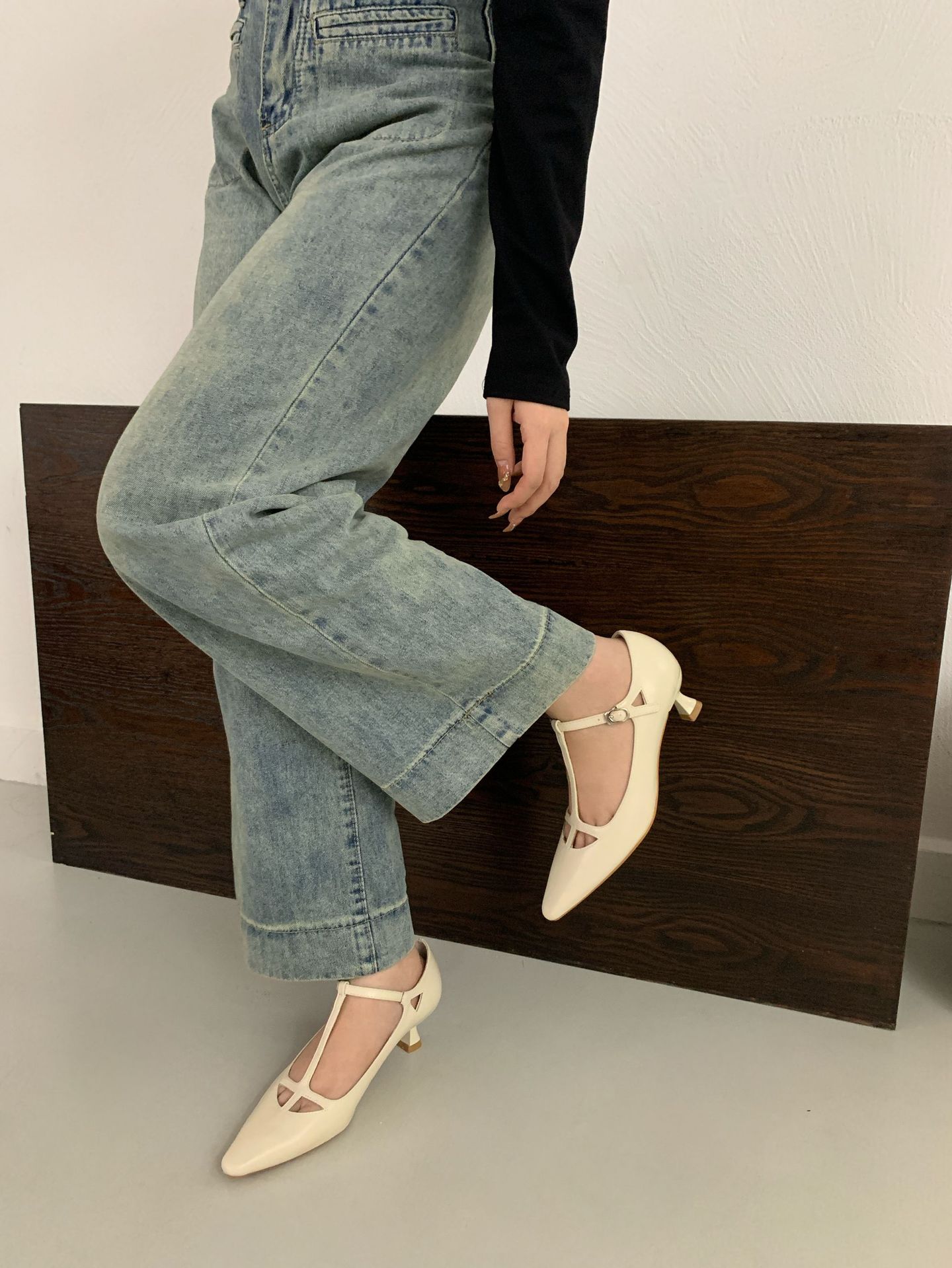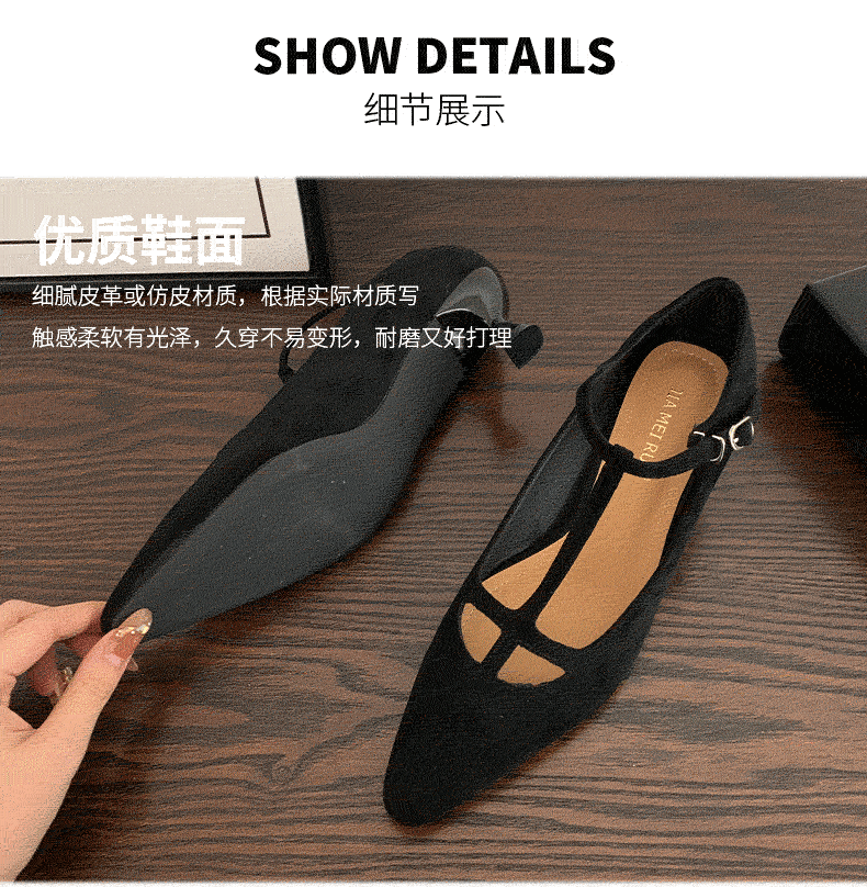 오리지널 신상품, 레트로 스타일의 세련된 디자인, 끈이 달린 얕은 굽의 펌프스, 뾰족한 앞코, 얇은 굽, 버클 장식의 메리제인 슈즈스토어 가기