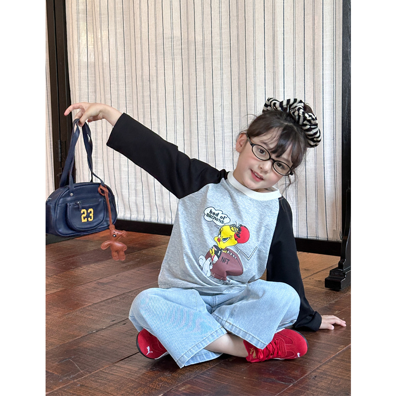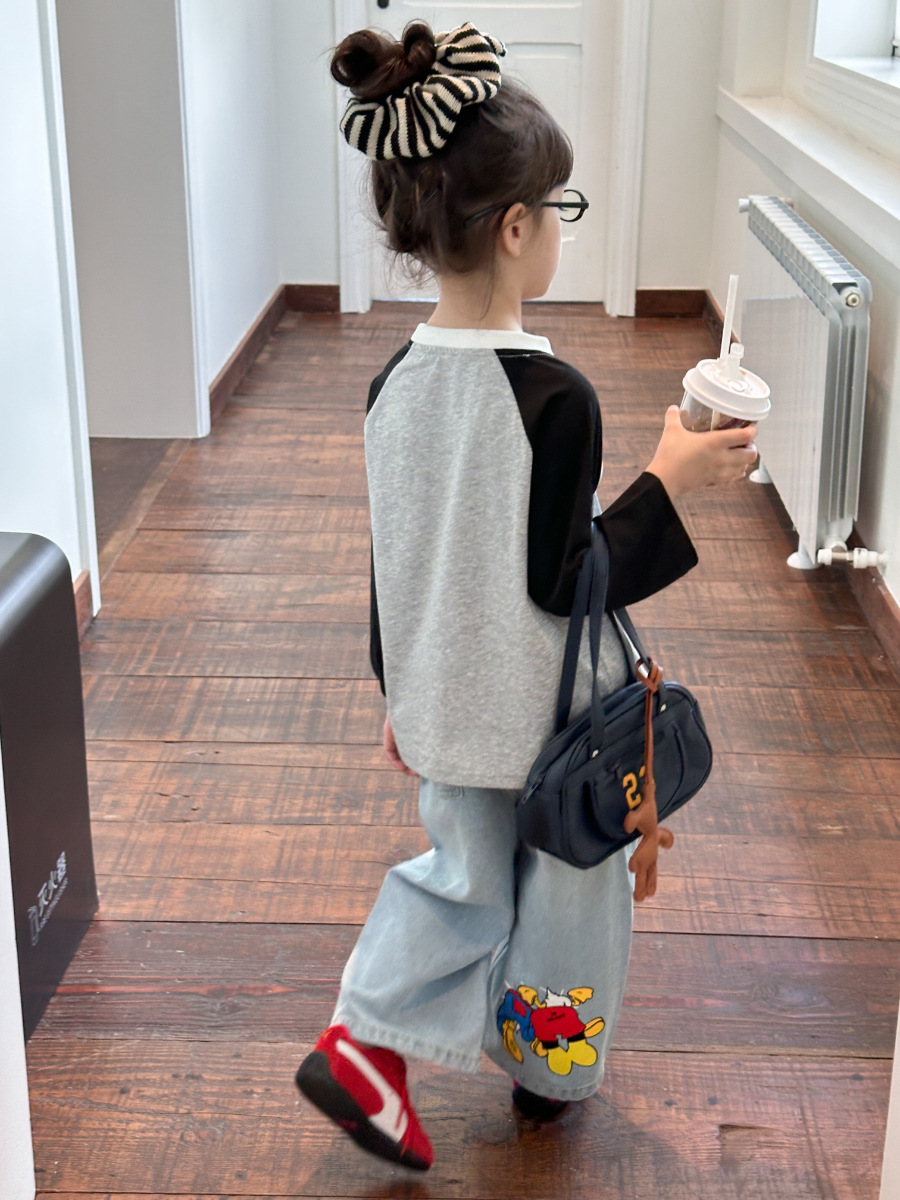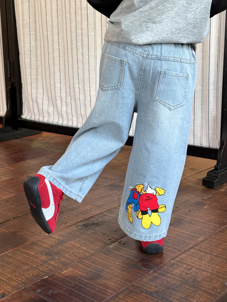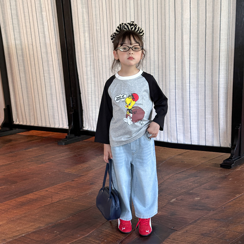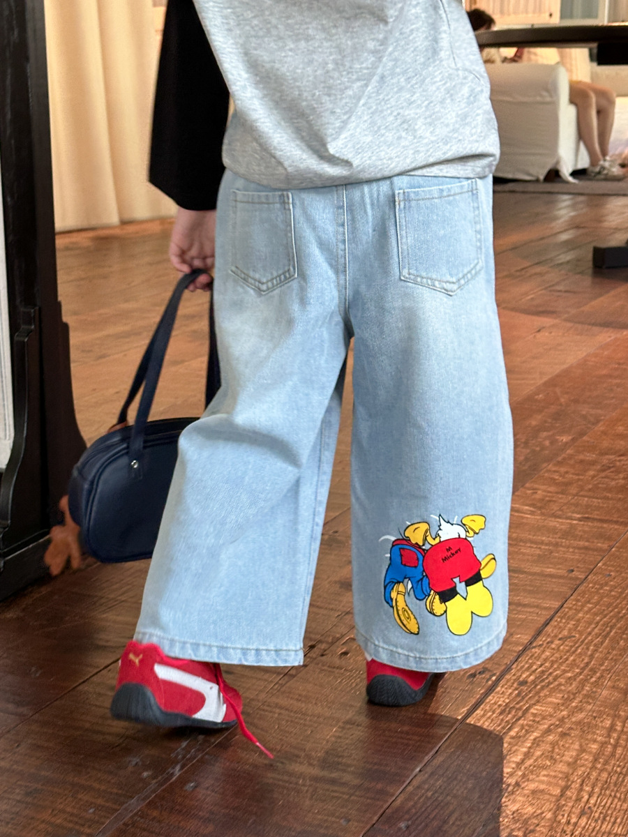 봄가을 아동복 한국 스타일 만화 캐릭터 청바지 여아 바지 중소형 아동용 신상 데님 와이드 팬츠