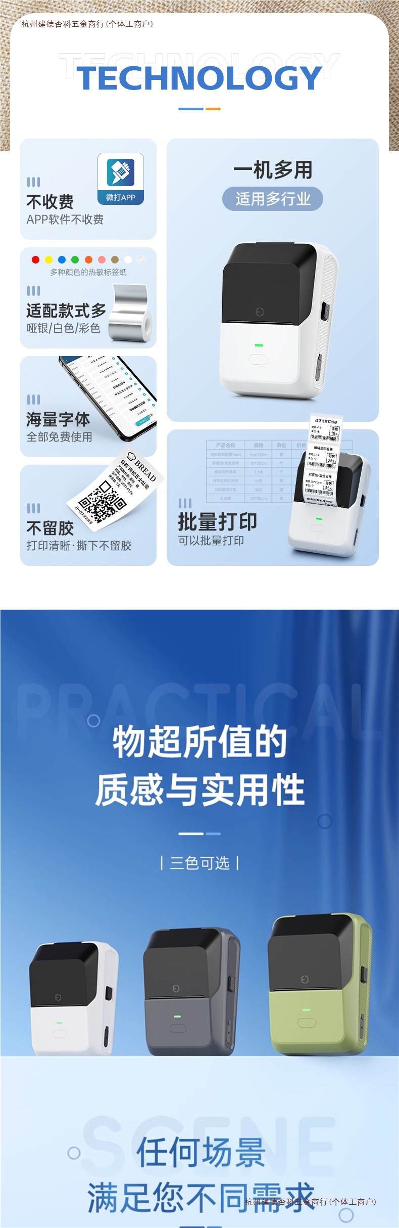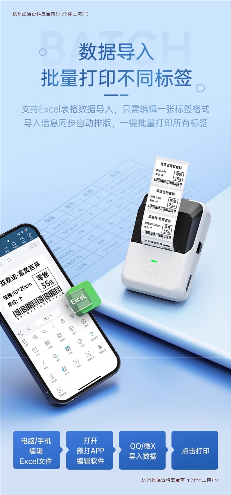 Detongyin Cube P2 식품 라벨 프린터 생산 날짜 제품 인증서 가격 바코드 의류 걸이