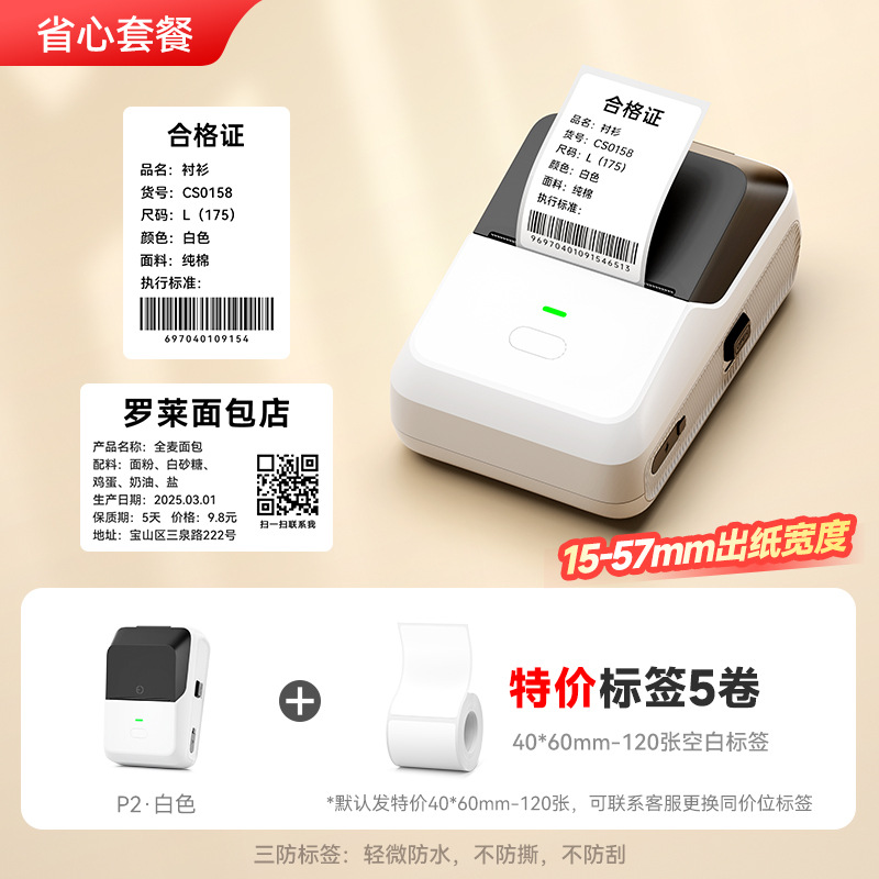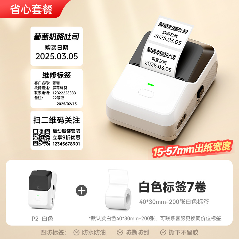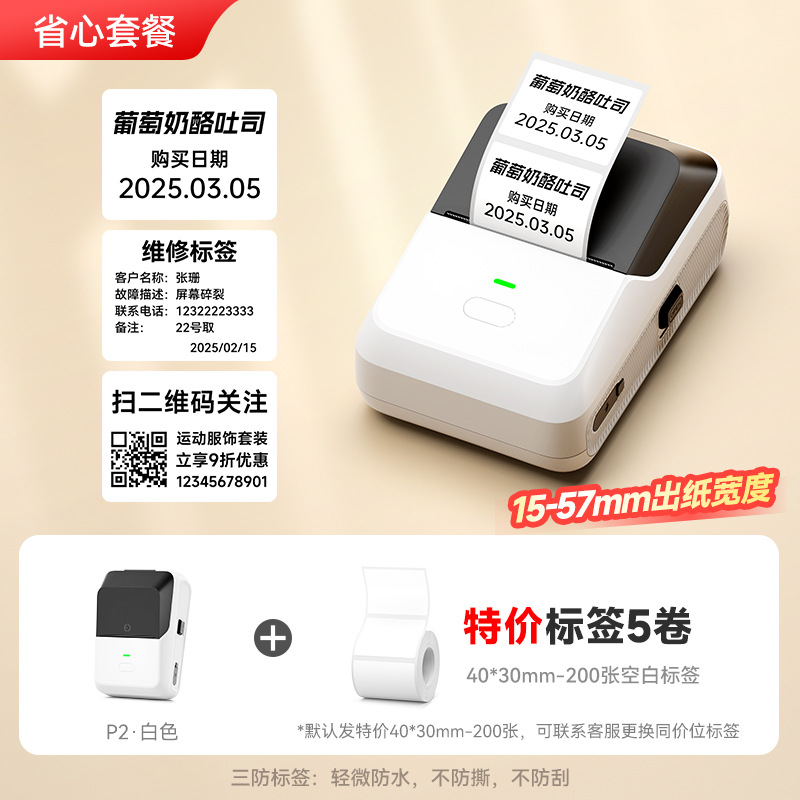 • P2 흰색 기계 + 무료 40x30 빈 라벨 1롤