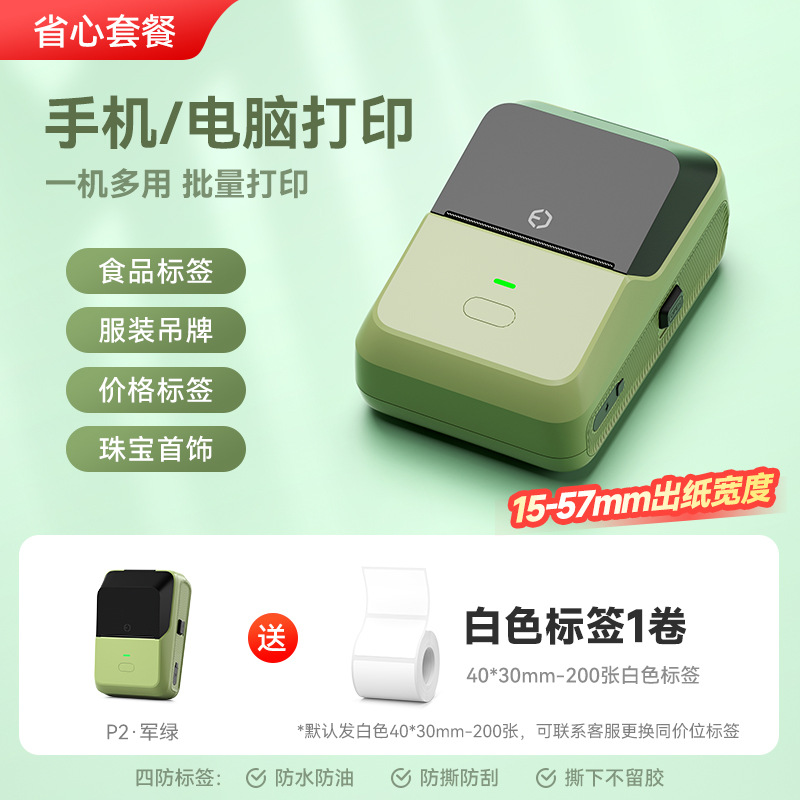 • P2 녹색 기계 + 무료 40x30 빈 라벨 롤 1개