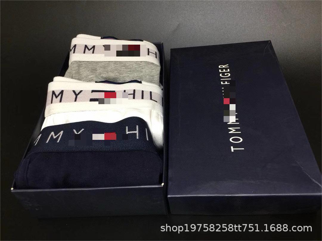 Tommy Underwear 남성용 팬티 코튼 박스 팬티 미드 웨이스트 팬티 반바지 통기성 도매 복서스토어 가기