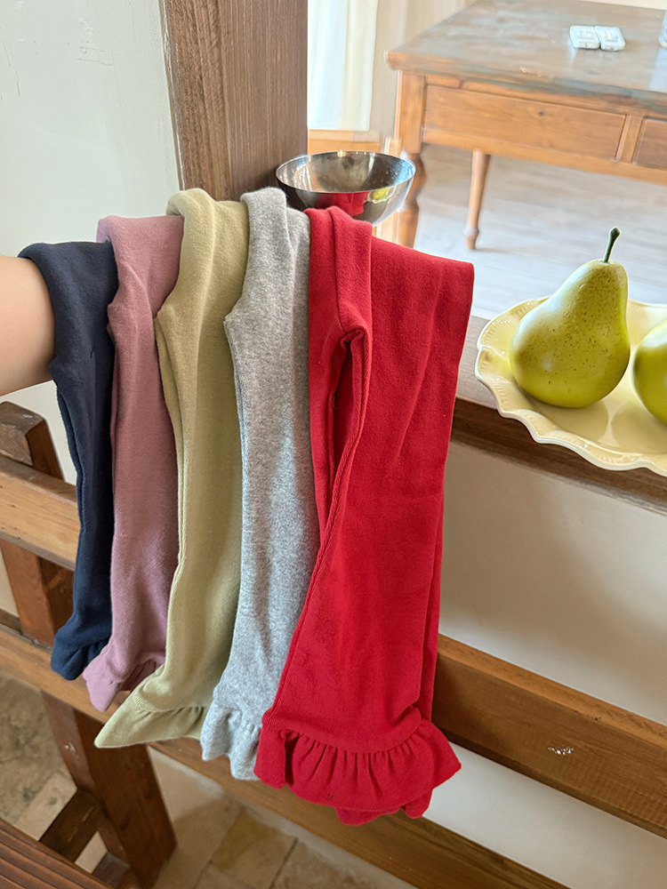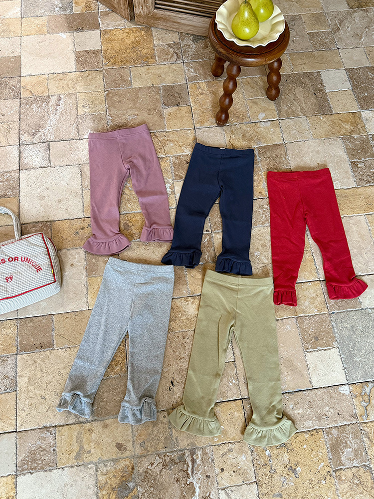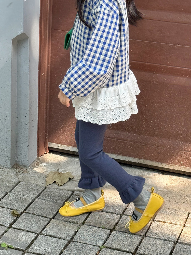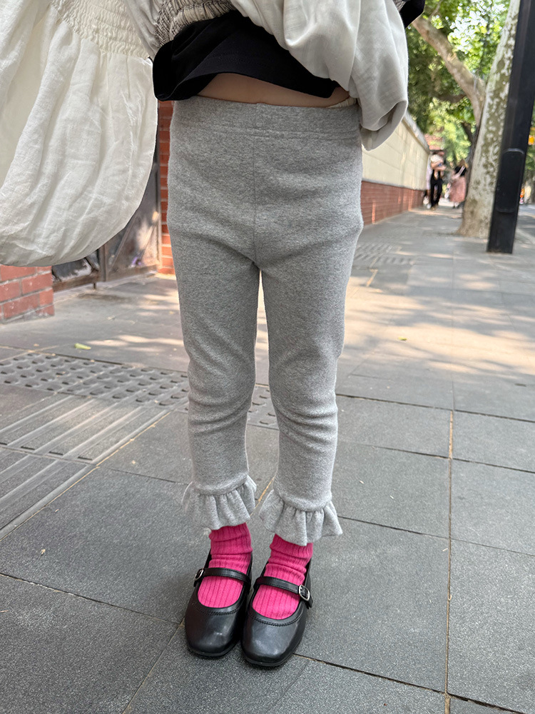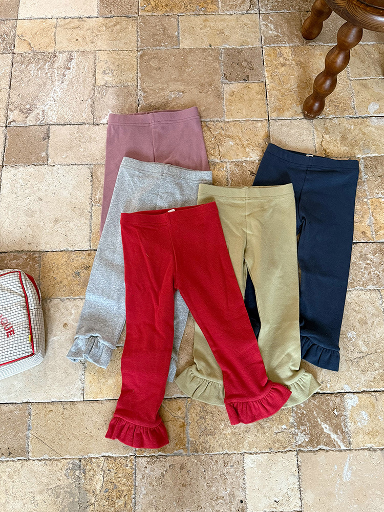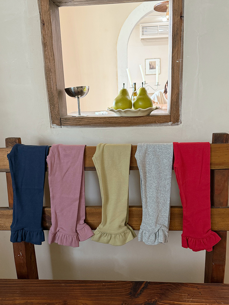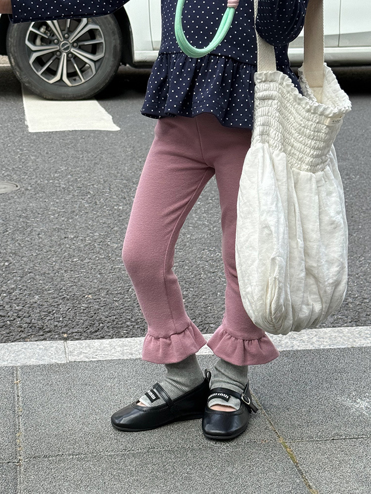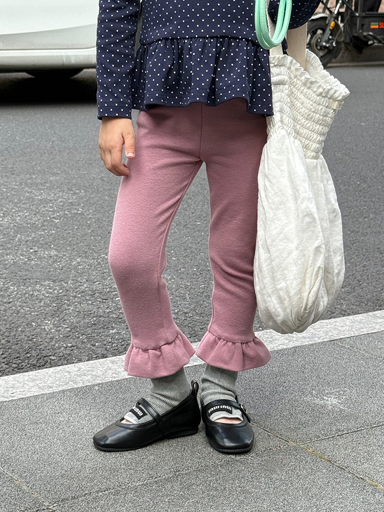 아동용 러플 레깅스, 여아용 멀티 컬러 스트레치 니트 레깅스, 레그 플레어 팬츠, 겹쳐 입을 수 있는 가을 옷, 새로운 한국식스토어 가기