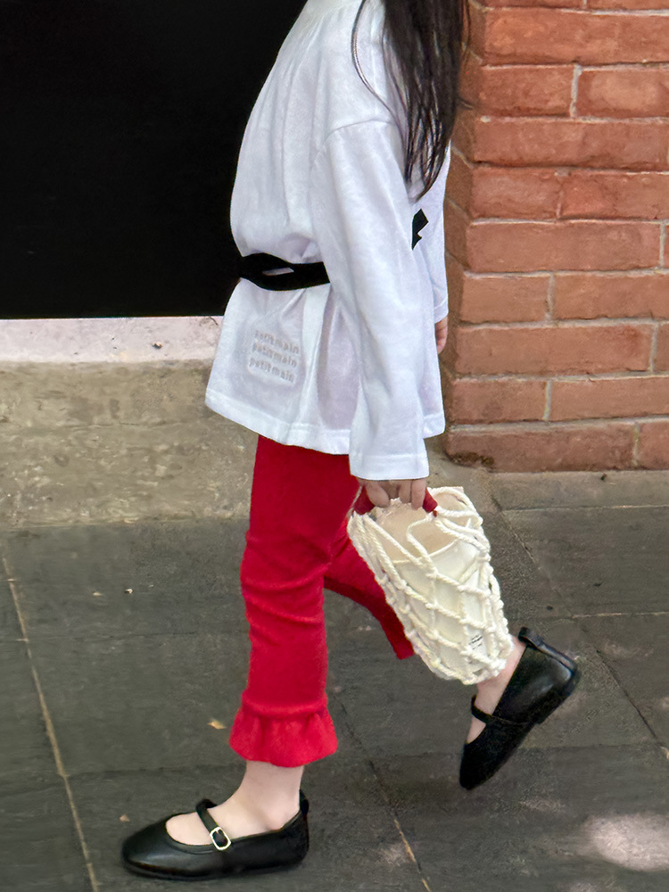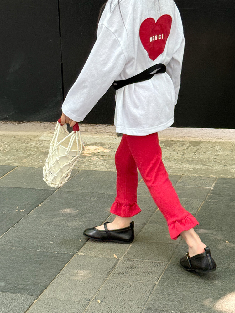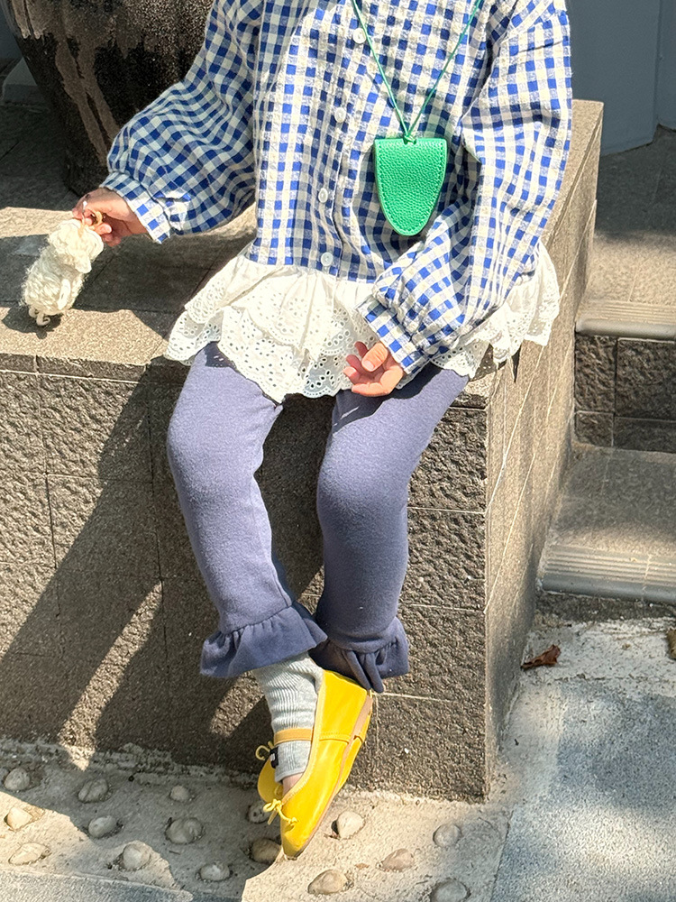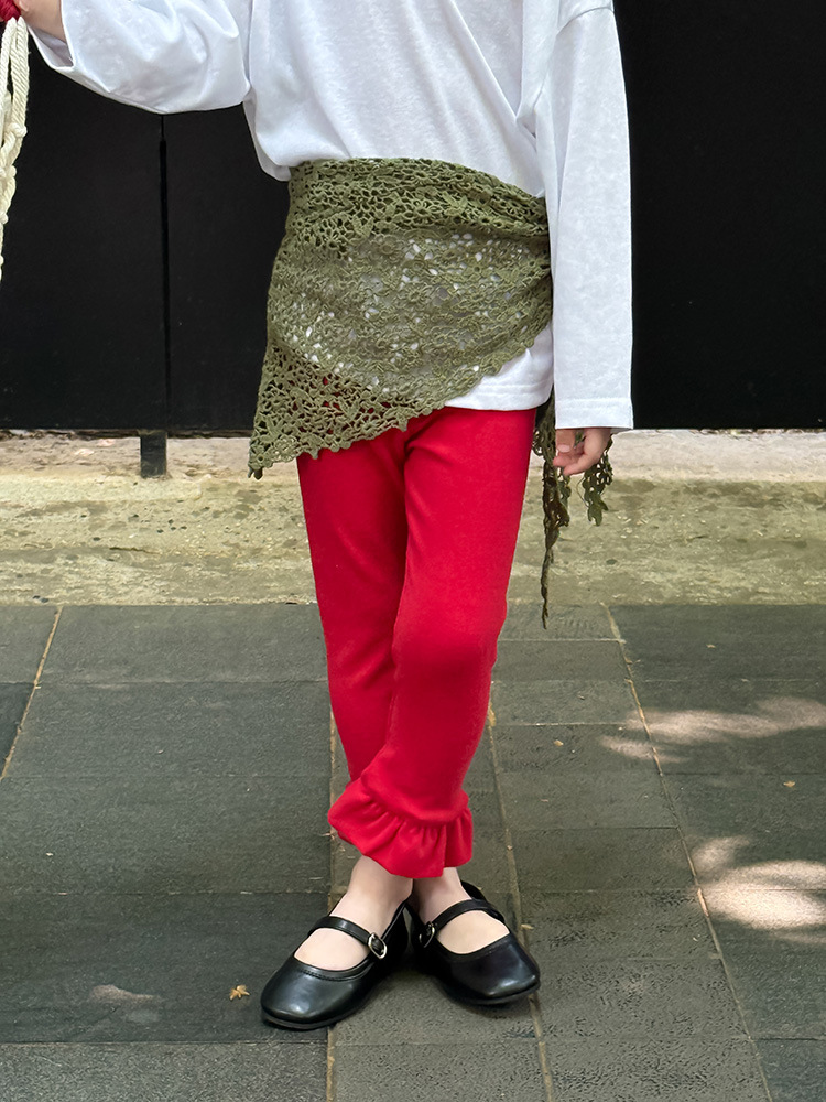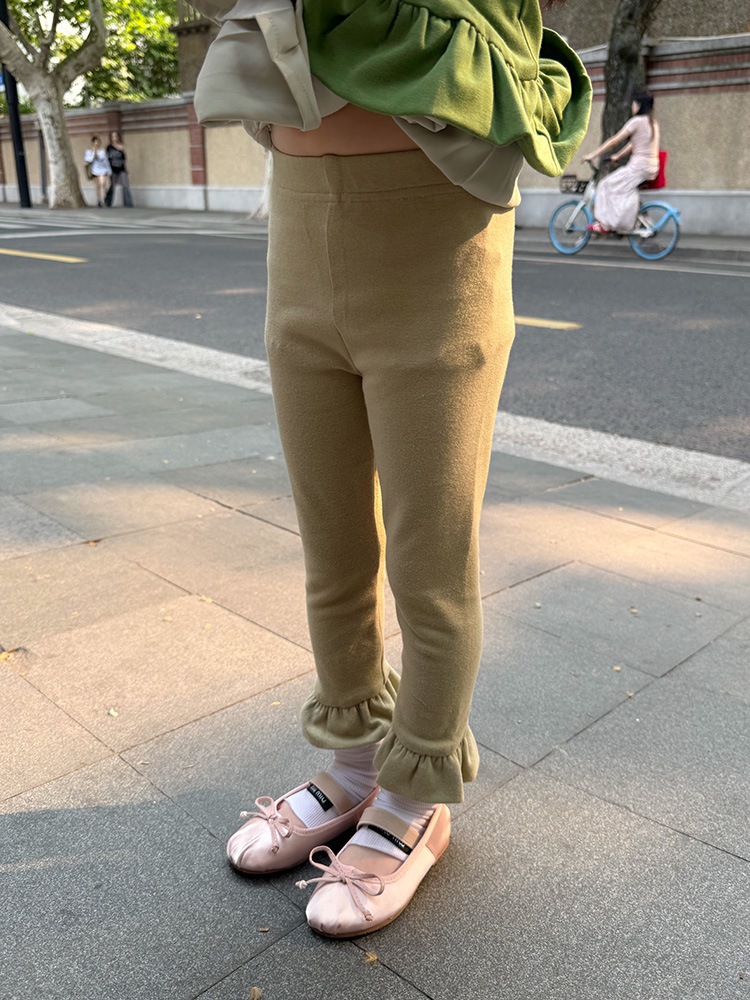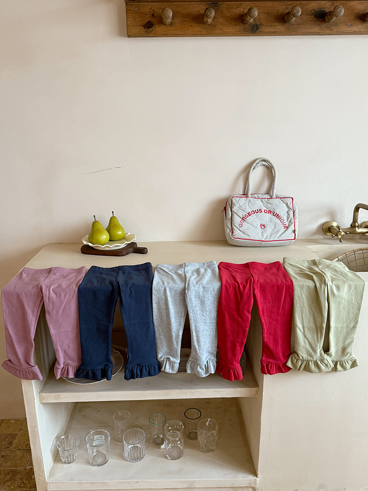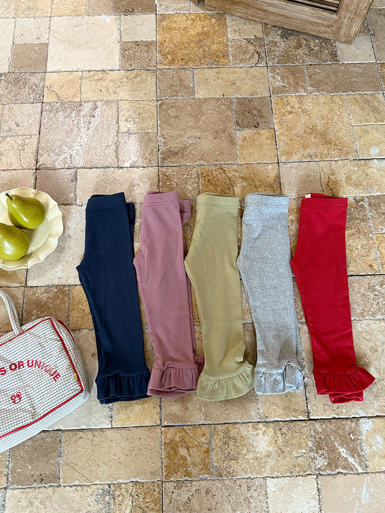 아동용 러플 레깅스, 여아용 멀티 컬러 스트레치 니트 레깅스, 레그 플레어 팬츠, 겹쳐 입을 수 있는 가을 옷, 새로운 한국식스토어 가기