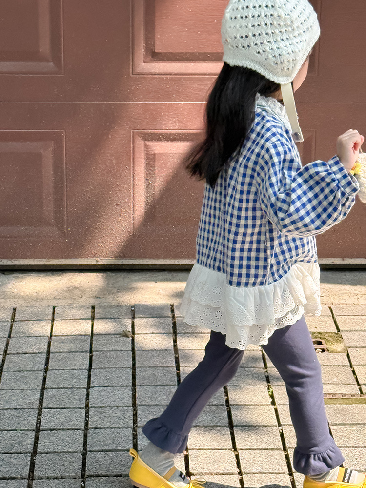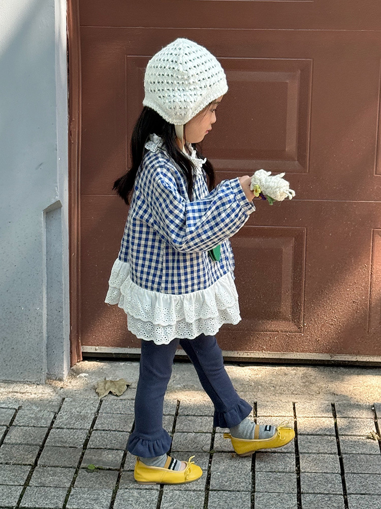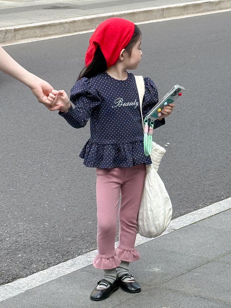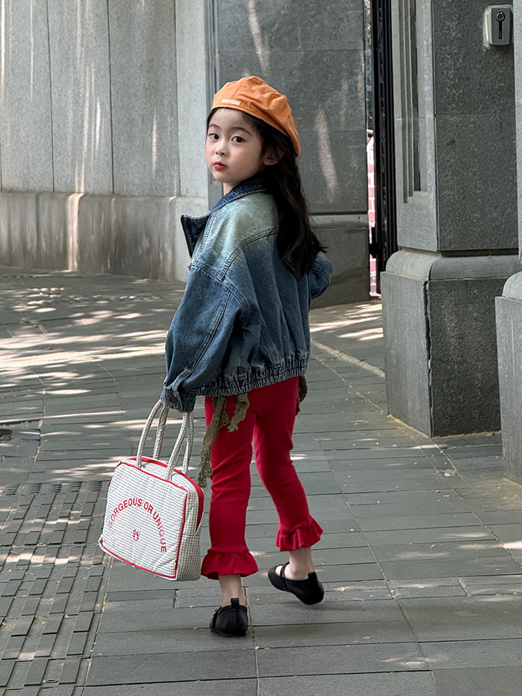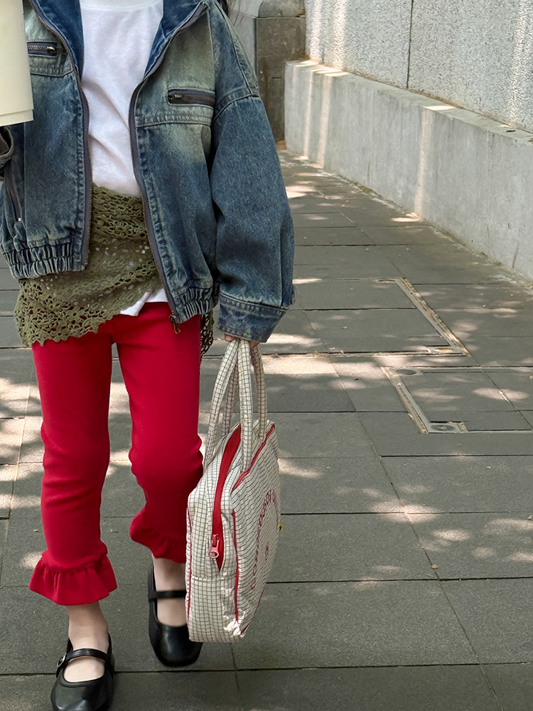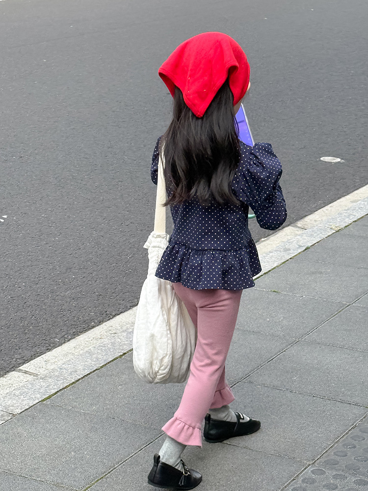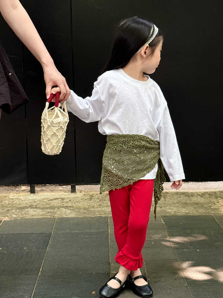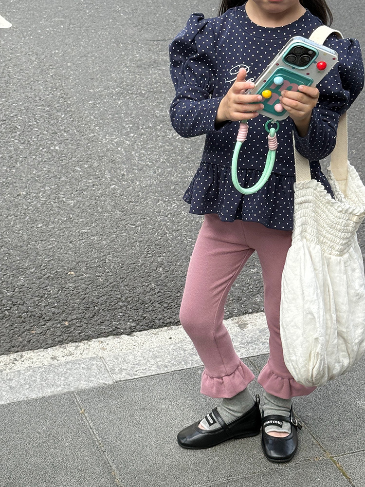 아동용 러플 레깅스, 여아용 멀티 컬러 스트레치 니트 레깅스, 레그 플레어 팬츠, 겹쳐 입을 수 있는 가을 옷, 새로운 한국식스토어 가기