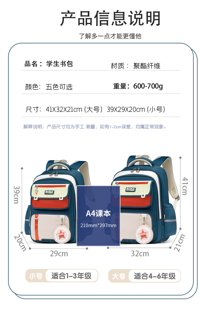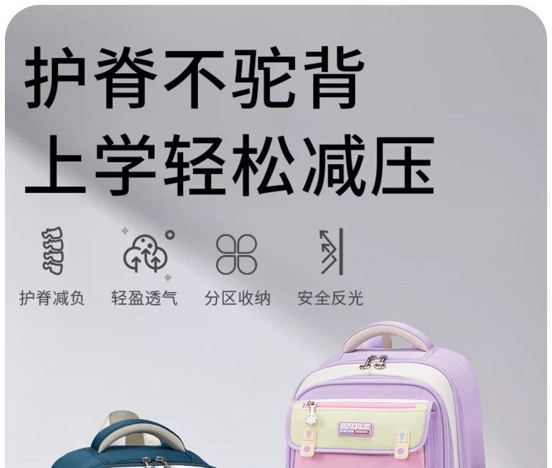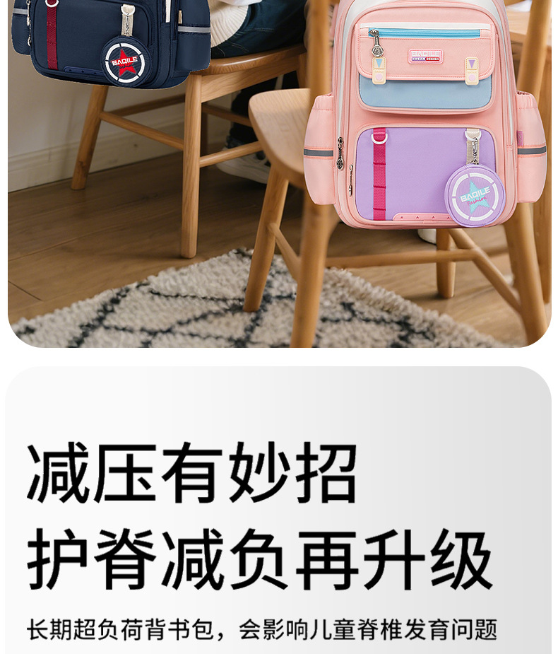 바치일 책가방 초등학생 1~6학년 대용량 방수 어린이 백팩 부담 경감 허리 보호 책가방