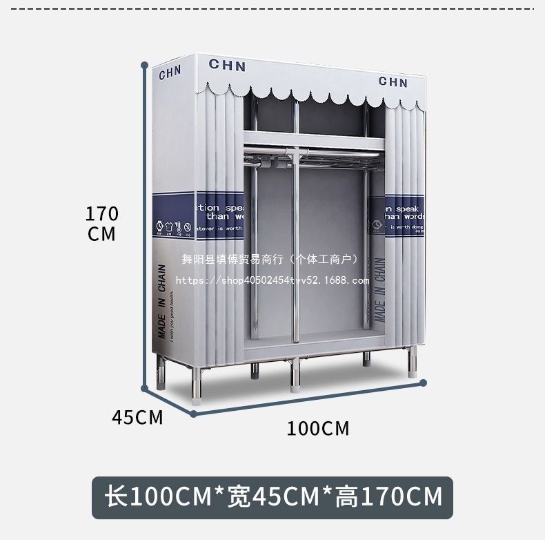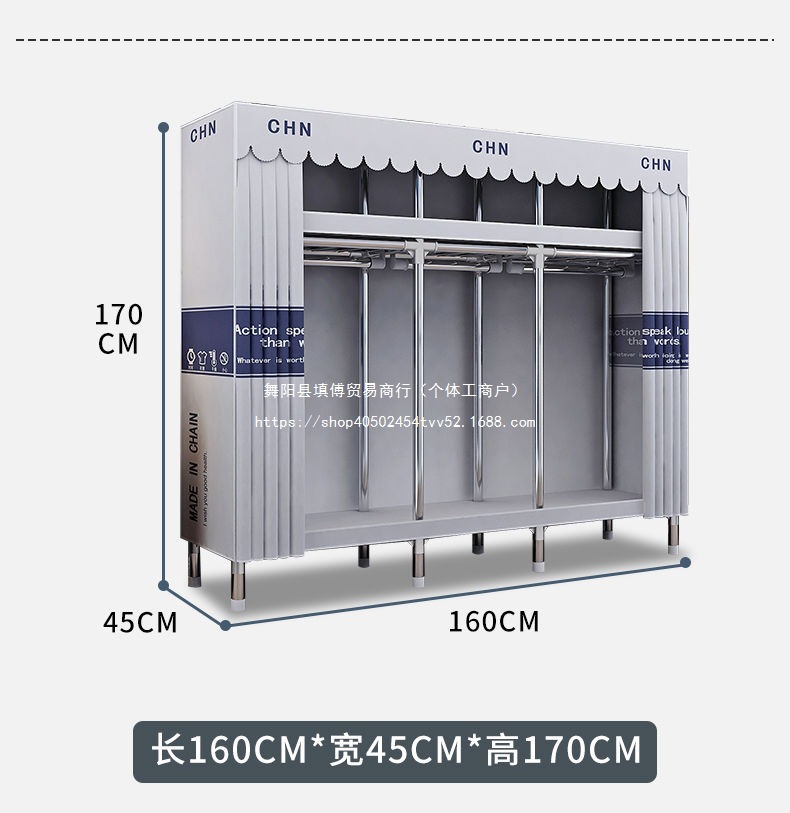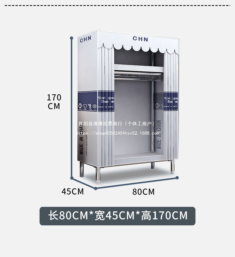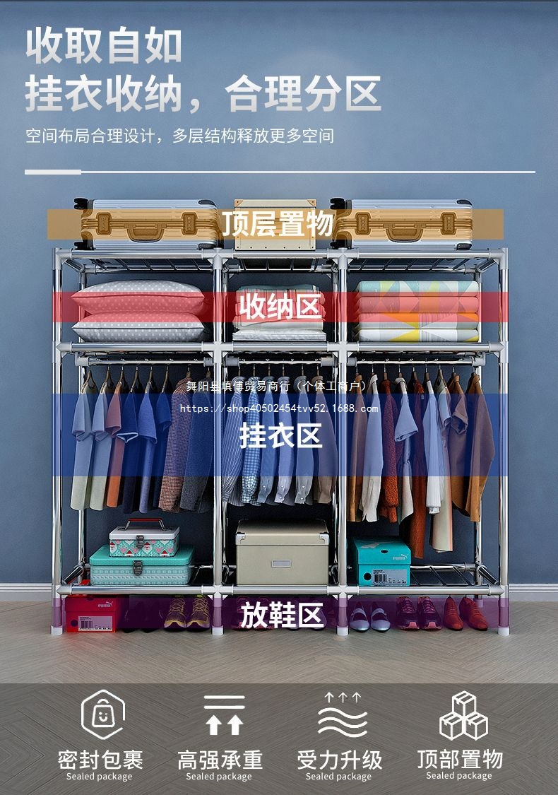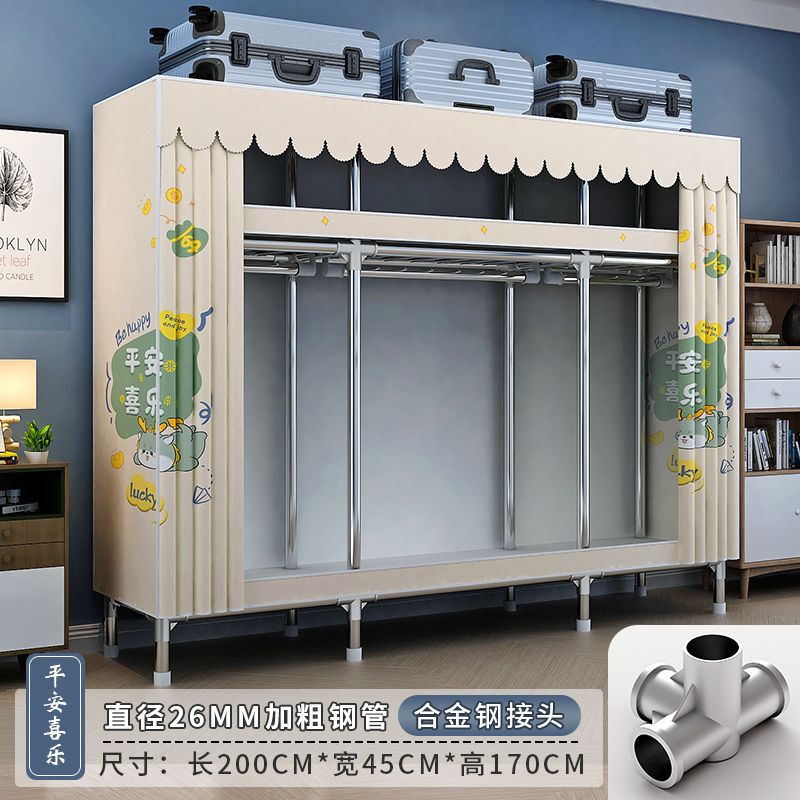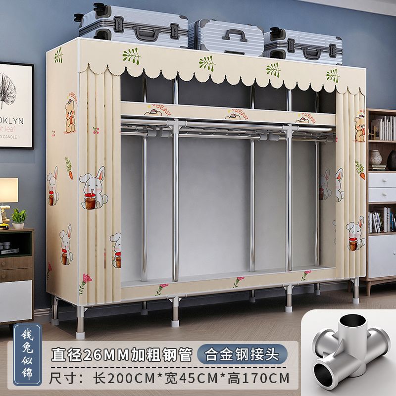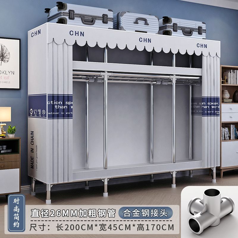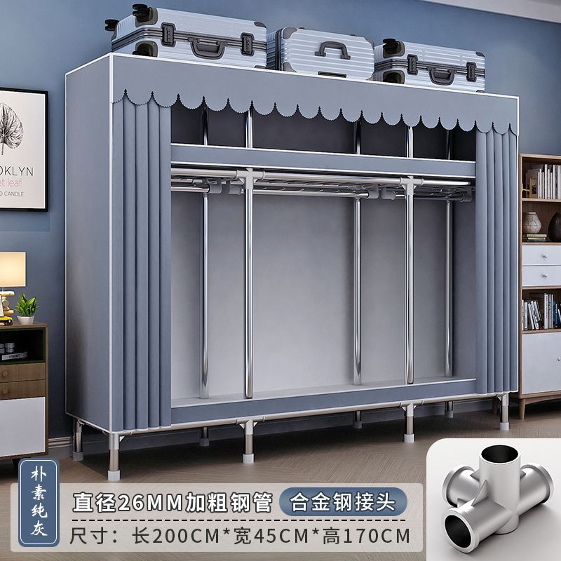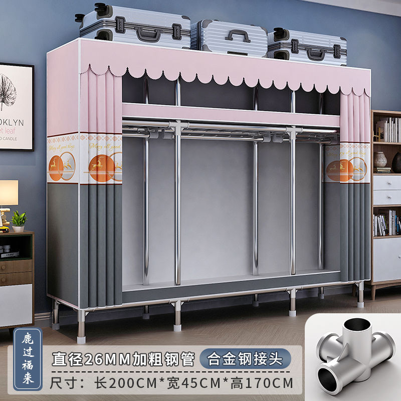 간단한 옷장 임대 집 강철 프레임 보관 두꺼운 조립 가정용 내구성 강철 파이프 침실 두꺼운 강화 옷장