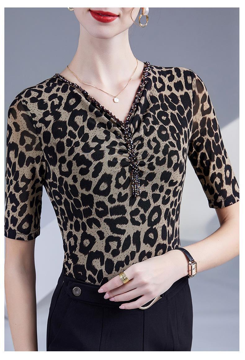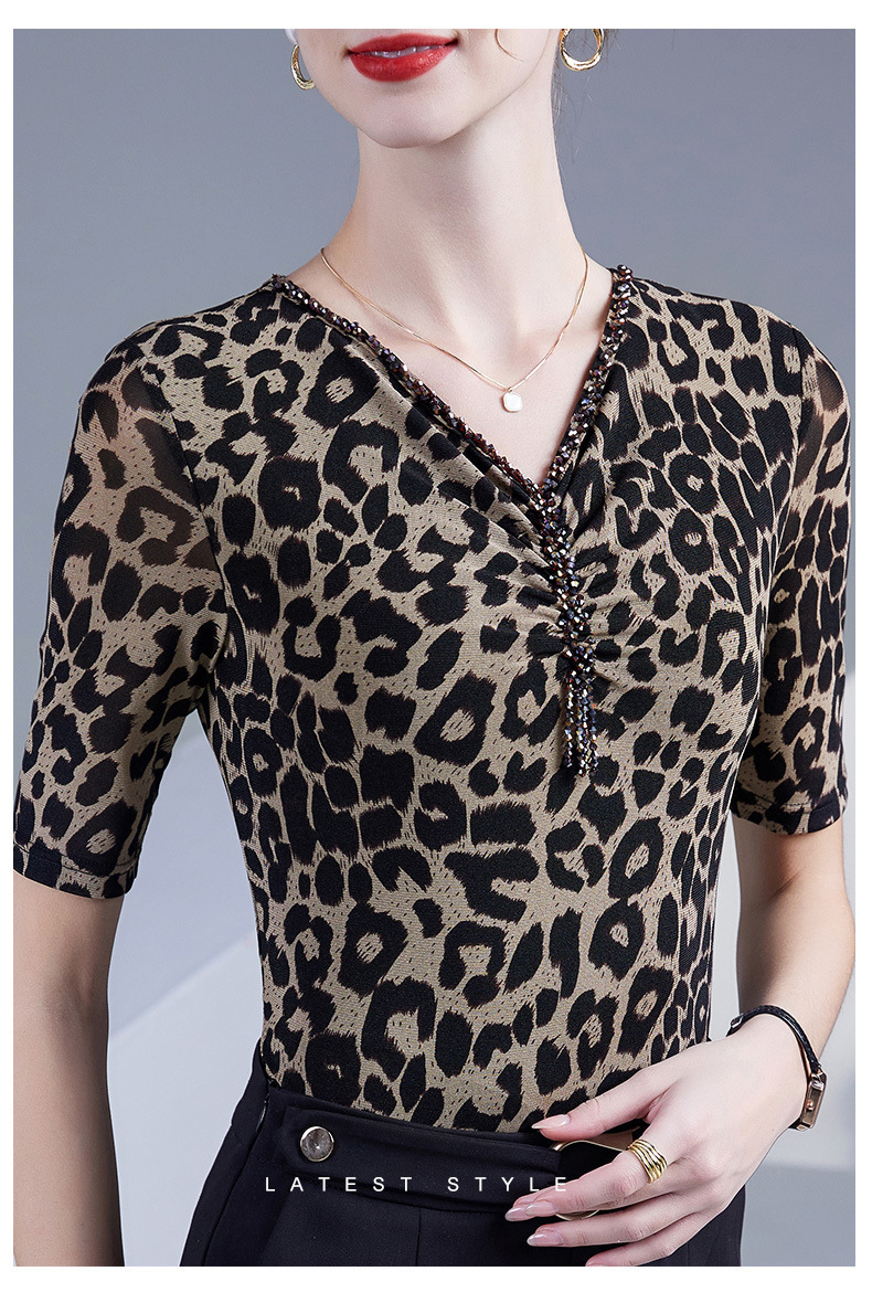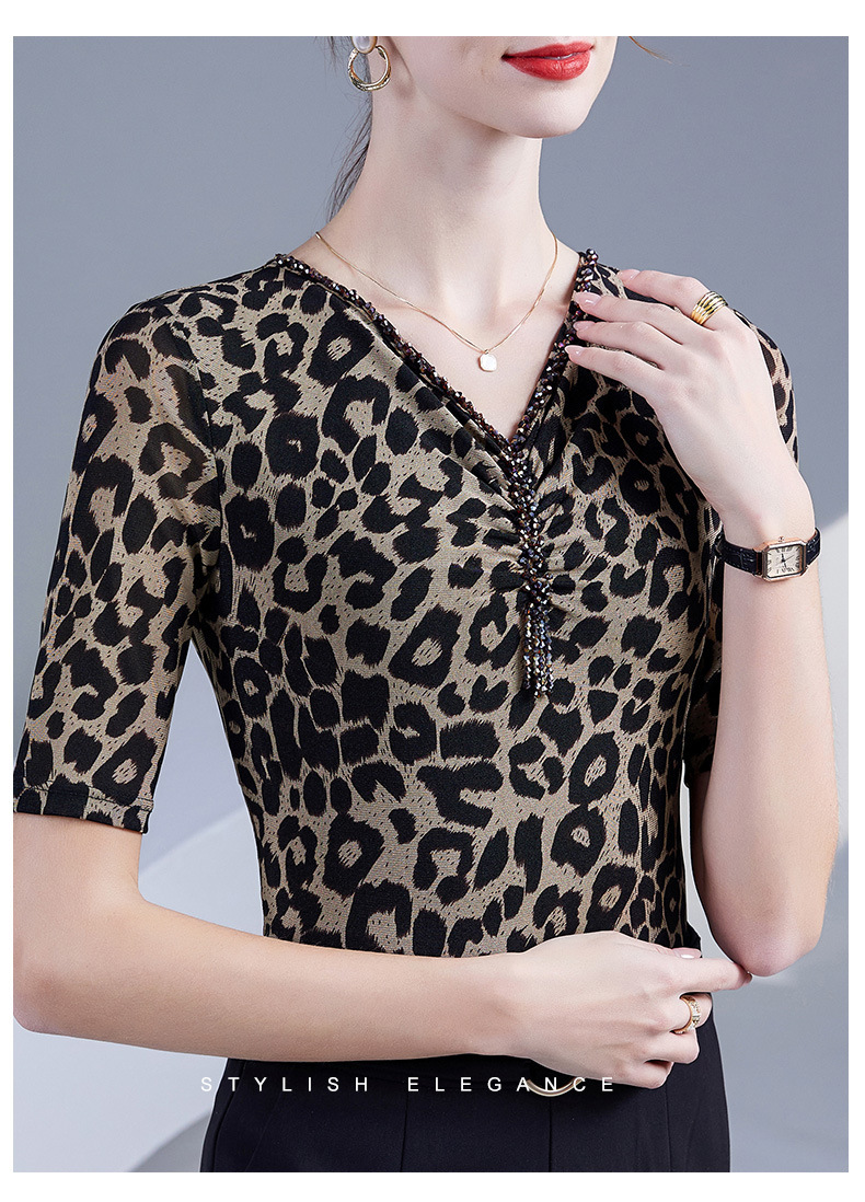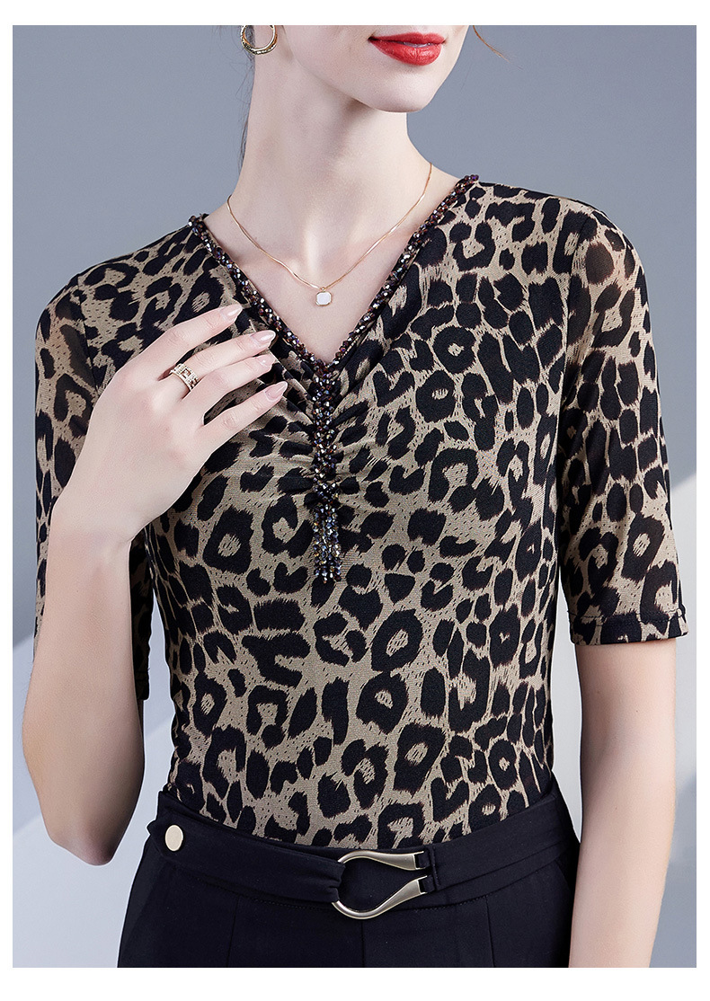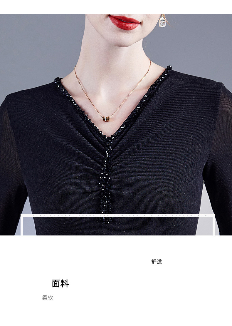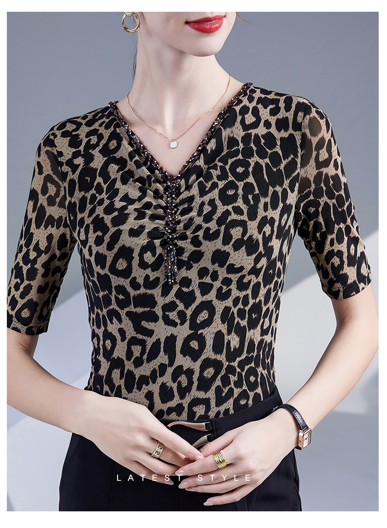 봄 여름 신상 미드슬리브 셔츠, 브이넥 비즈 메쉬 티셔츠, 여성용 5부소매 이너 레이어드 셔츠, 슬리밍 탑, 트렌디스토어 가기