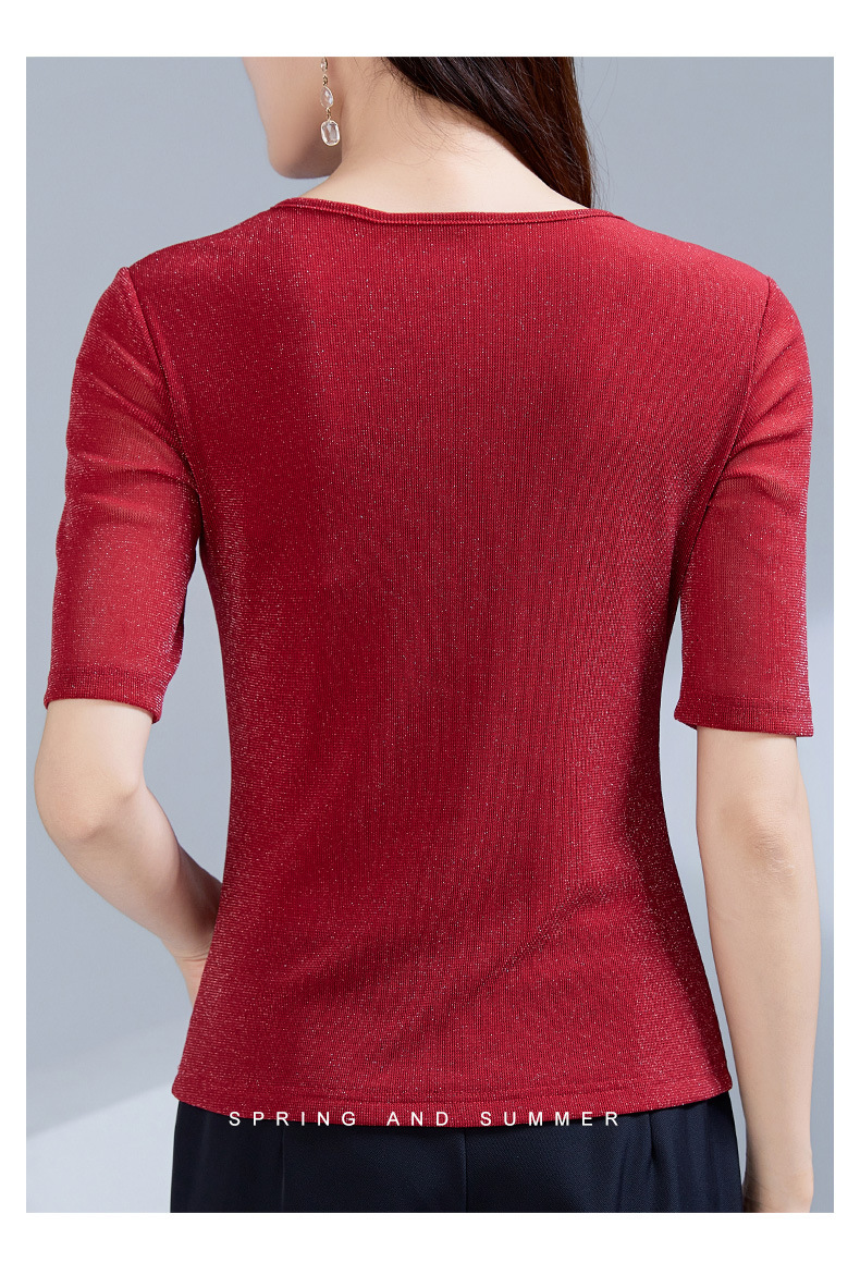 봄 여름 신상 미드슬리브 셔츠, 브이넥 비즈 메쉬 티셔츠, 여성용 5부소매 이너 레이어드 셔츠, 슬리밍 탑, 트렌디