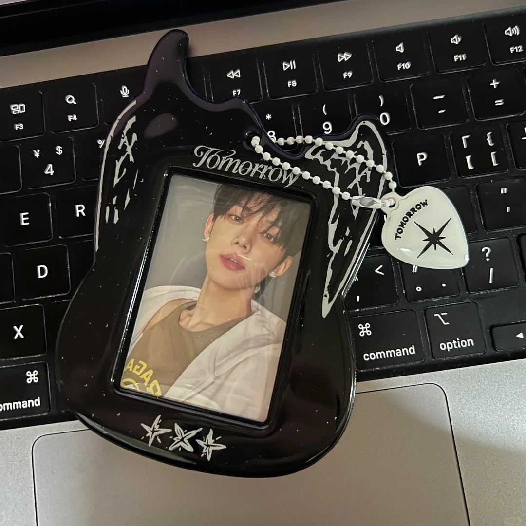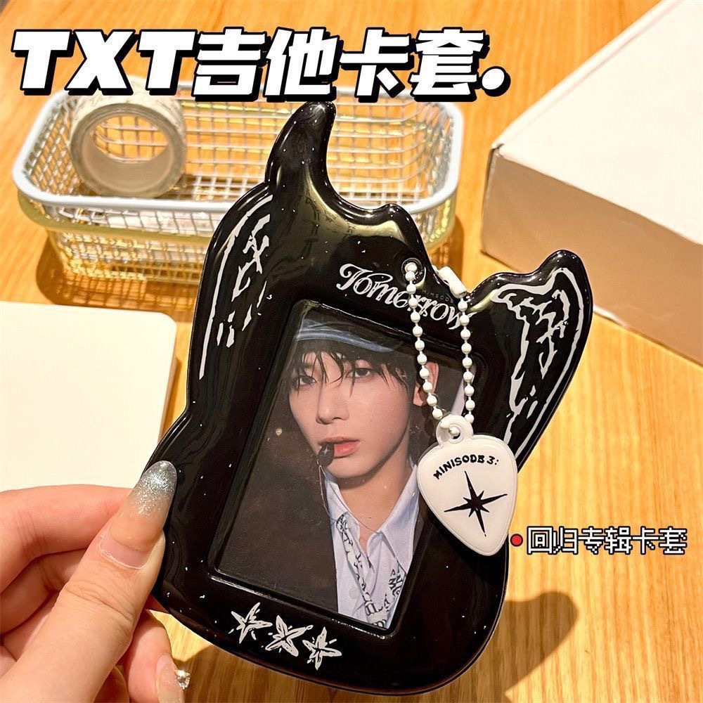 한국 엔터테인먼트 TXT 기타 PVC 블랙 카드 홀더 아이돌 팬 카드 보관 디스플레이 키체인이 있는 부드러운 고무 보호 커버