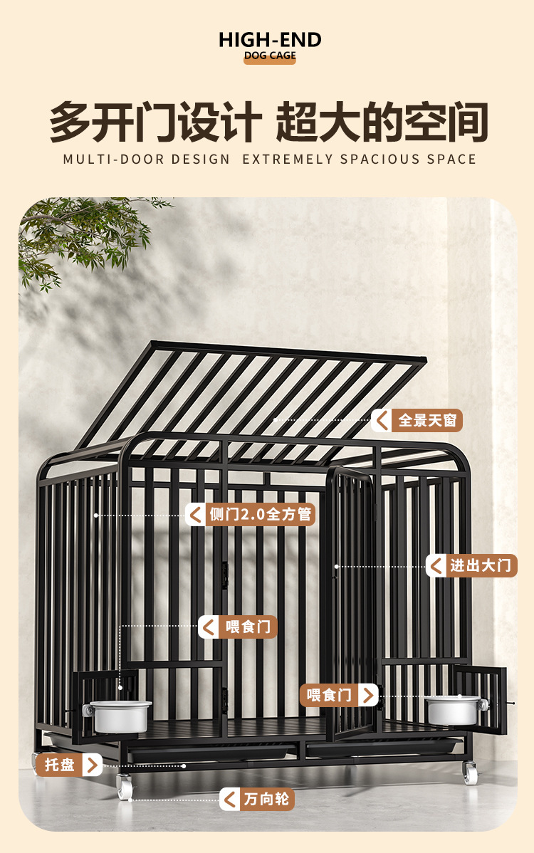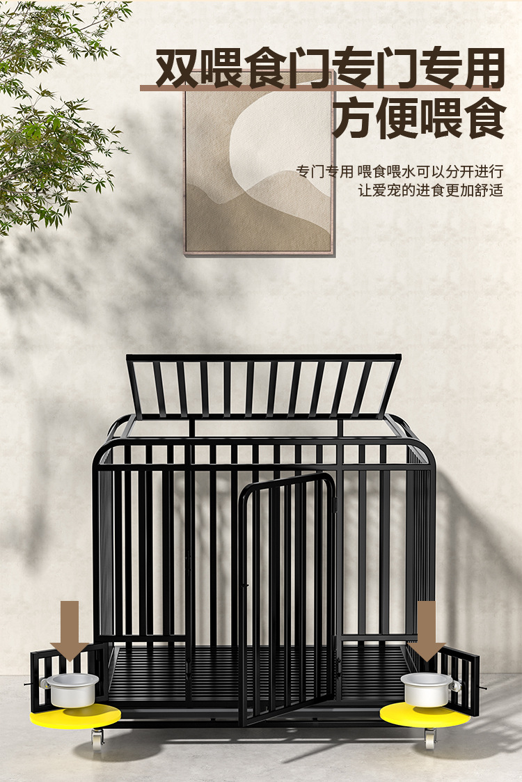 • 두꺼운 3.0 정사각형 튜브 개 케이지(대형 먹이 문) 93.5*64*83.5cm