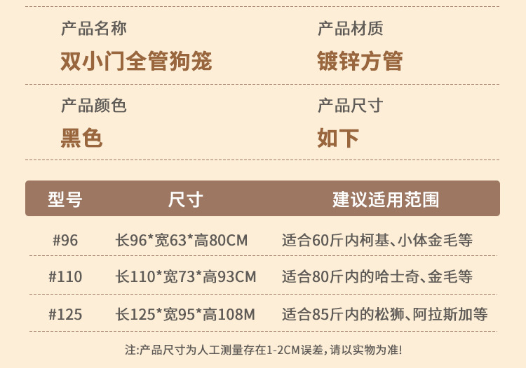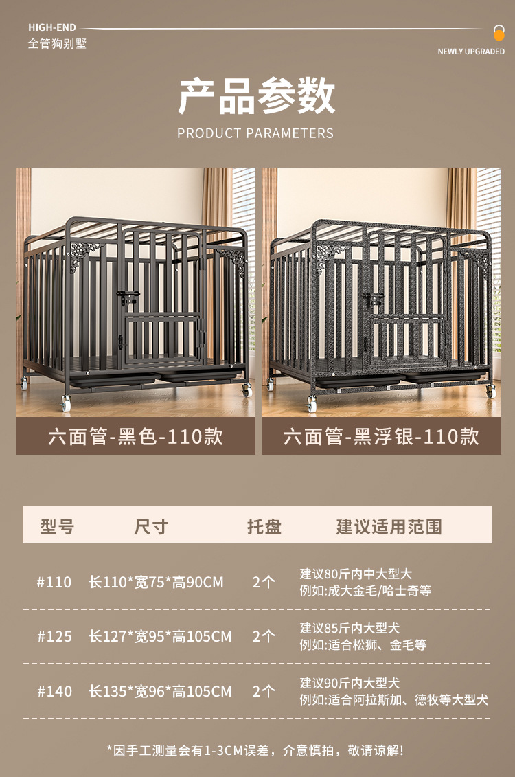 강아지 케이지 3cm 폭 내부 튜브 6면 전면 튜브 중대형견용 화장실 포함 실내 애완견 케이지 용품