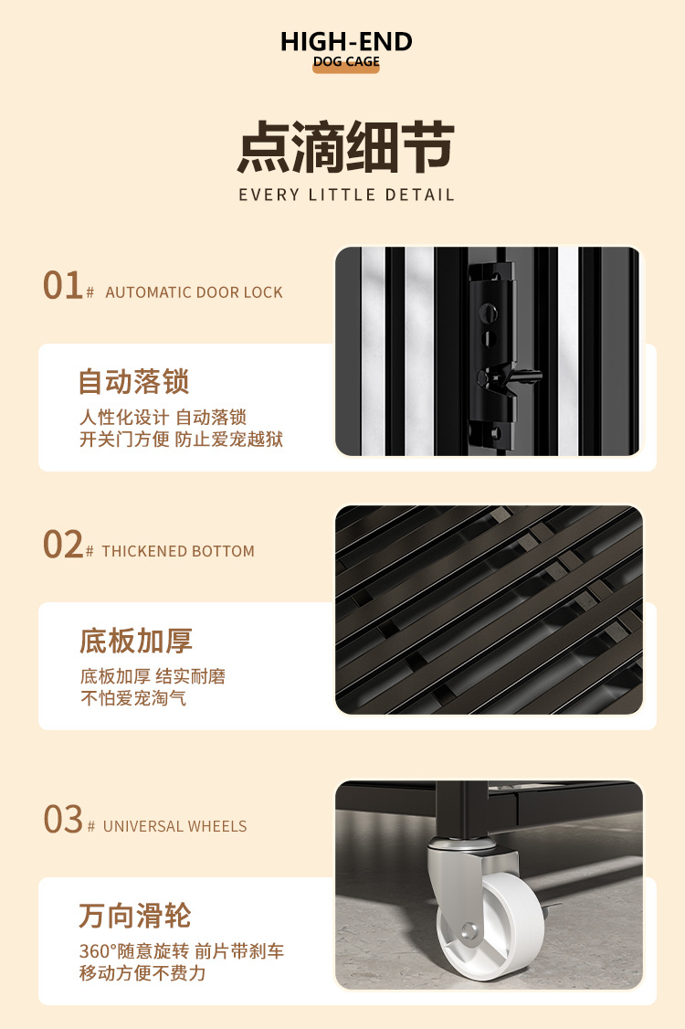 강아지 케이지 3cm 폭 내부 튜브 6면 전면 튜브 중대형견용 화장실 포함 실내 애완견 케이지 용품스토어 가기