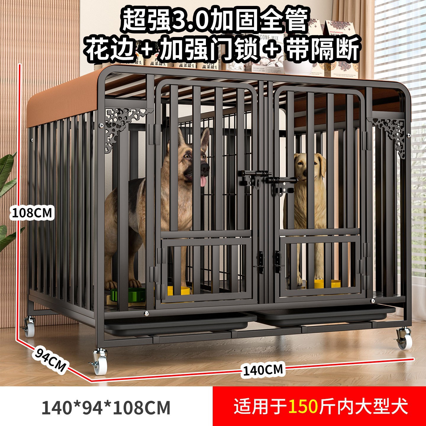 • 두꺼운 3.0 정사각형 튜브 개 케이지(파티션 및 이중 먹이 도어 포함) 140*94*108cm