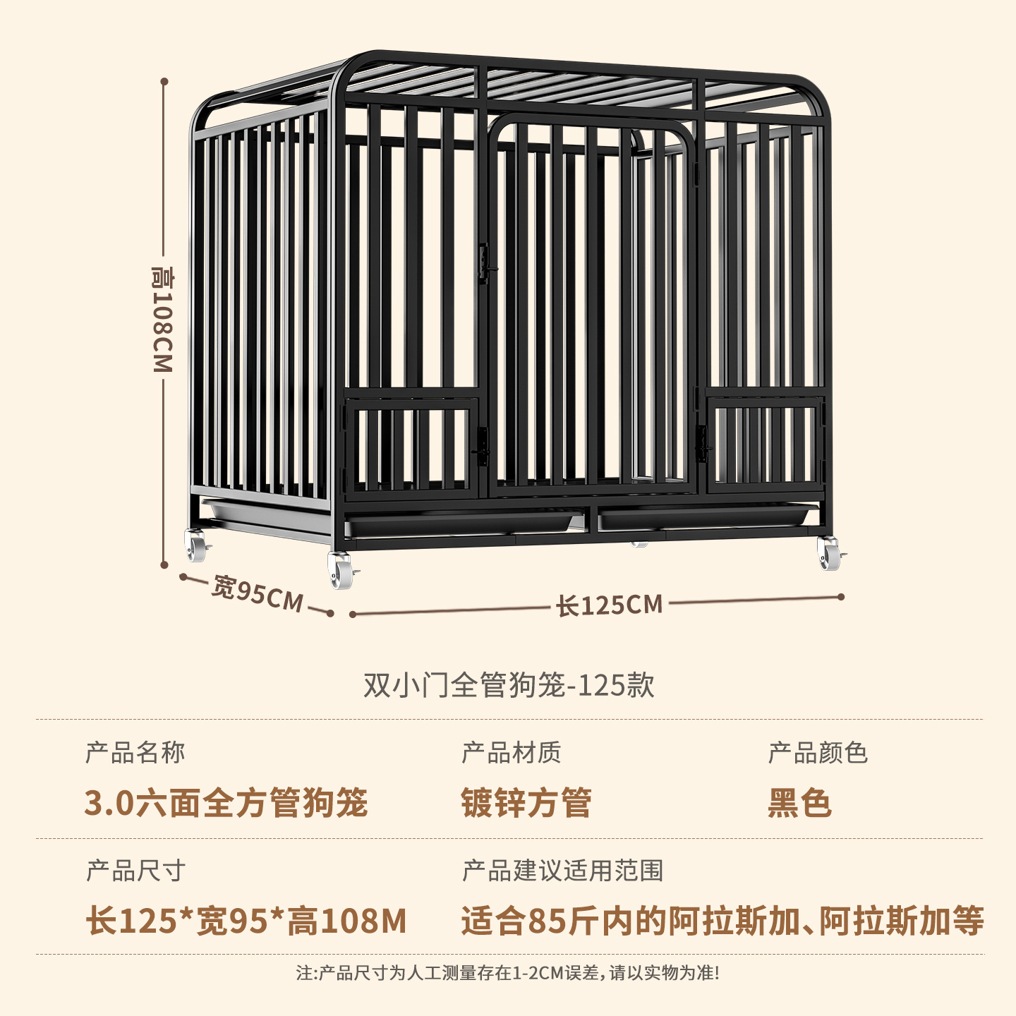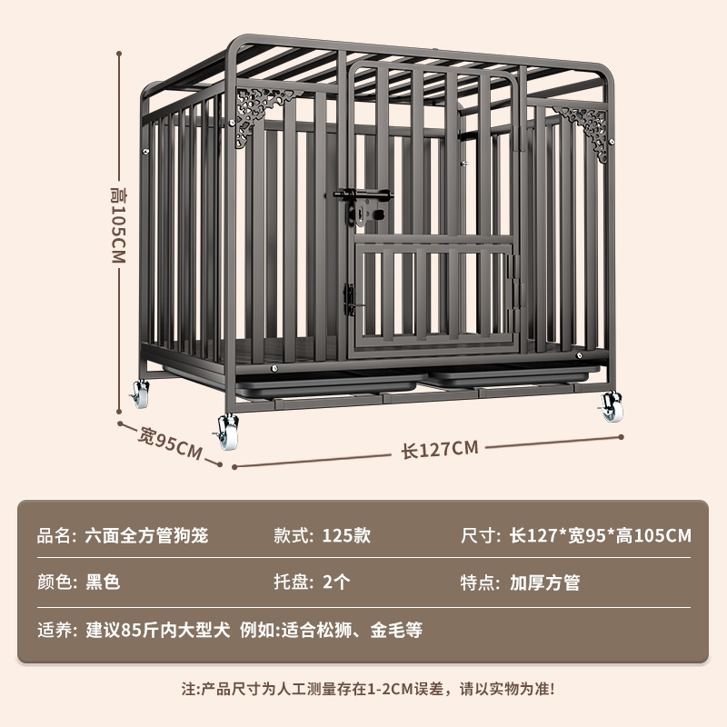 • 두꺼운 3.0 전체 사각형 튜브 개 케이지(대형 먹이 문) 127*95*105cm