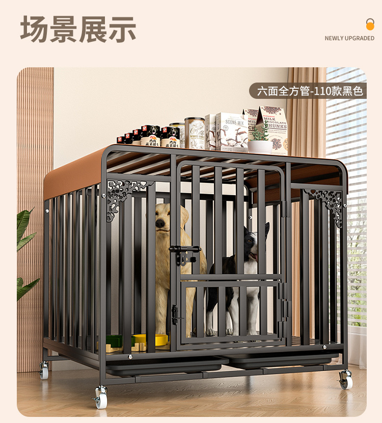 • 두꺼운 3.0 전체 사각형 튜브 개 케이지(대형 먹이 문) 110*75*90cm