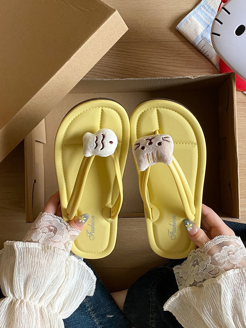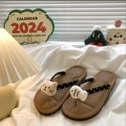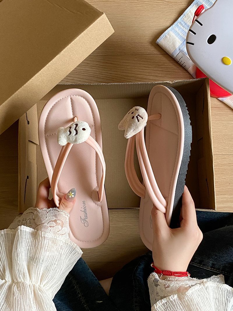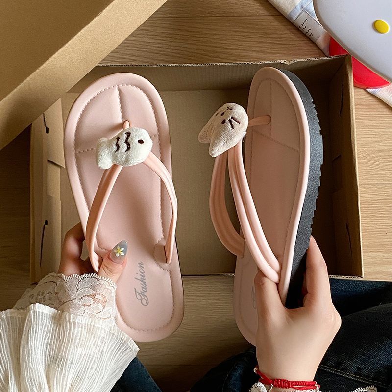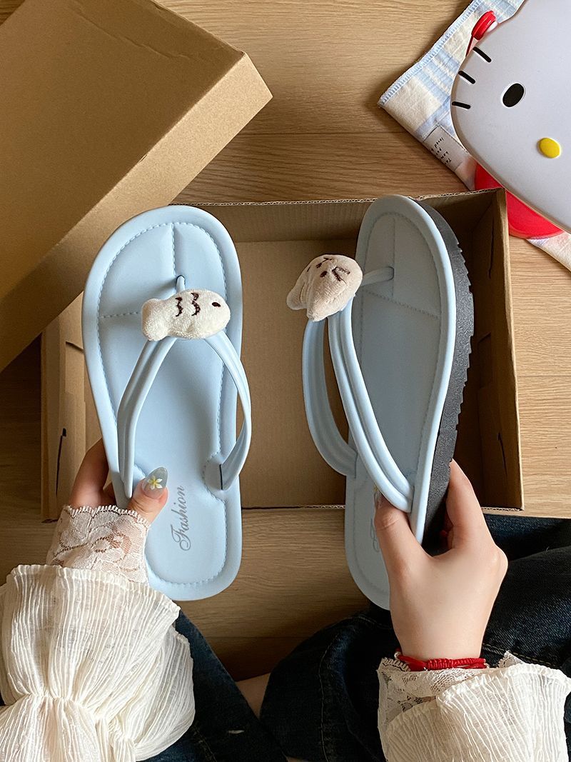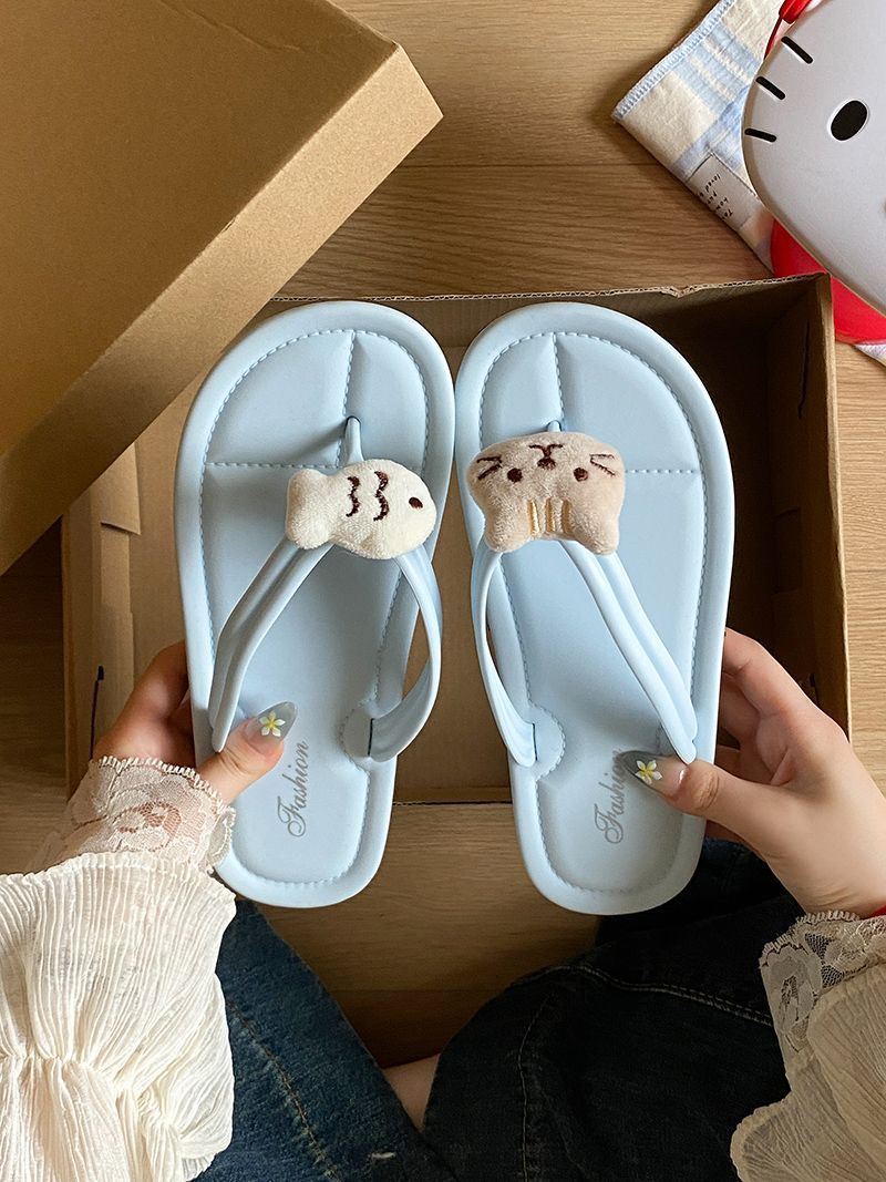 여름 2025 여성을위한 여성을위한 인터넷 연예인 귀여운 고양이 물고기 플립 플롭 여성을위한 새로운 미끄럼 방지 플립 플롭 비치 샌들