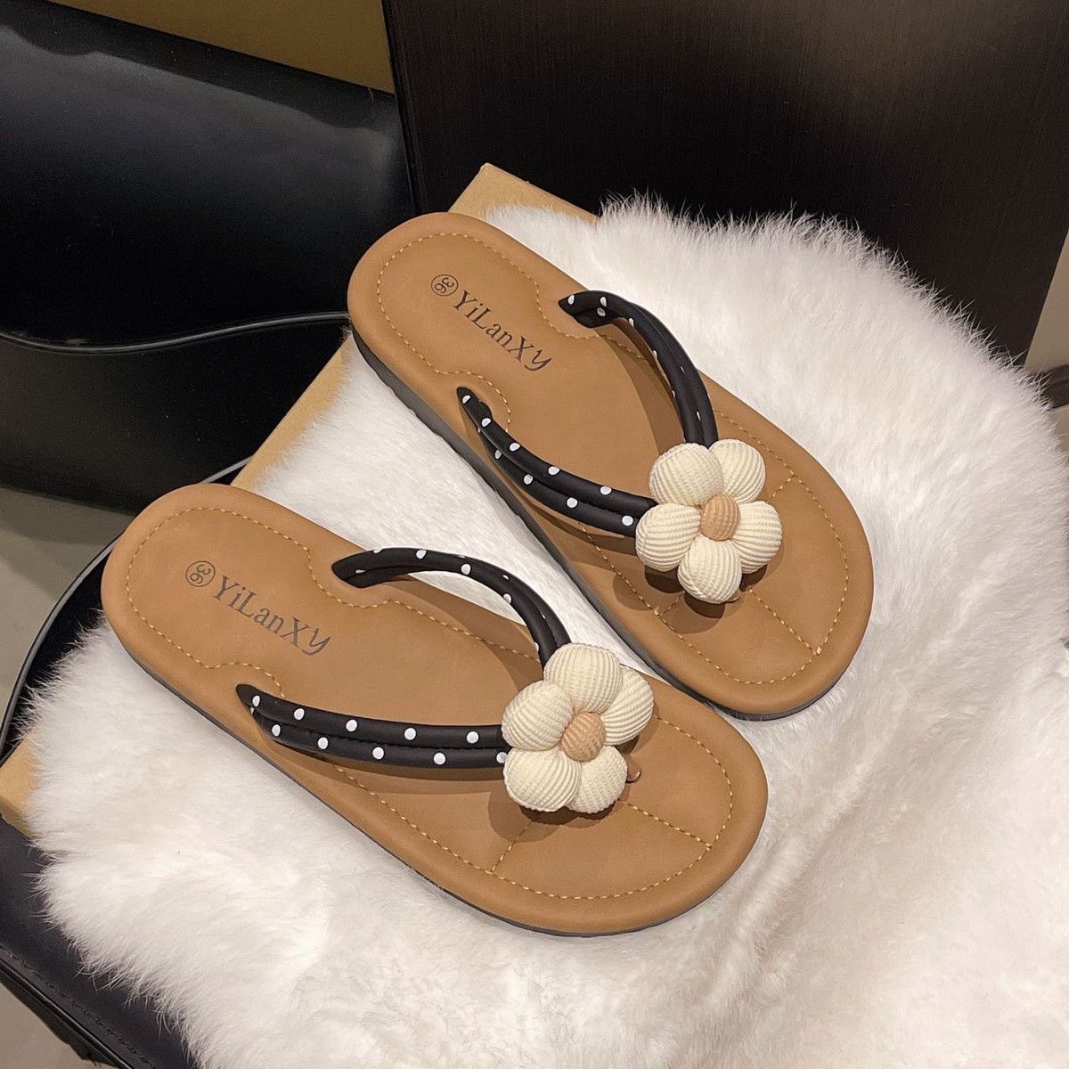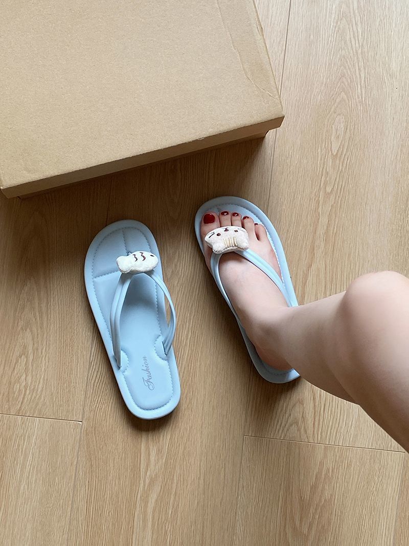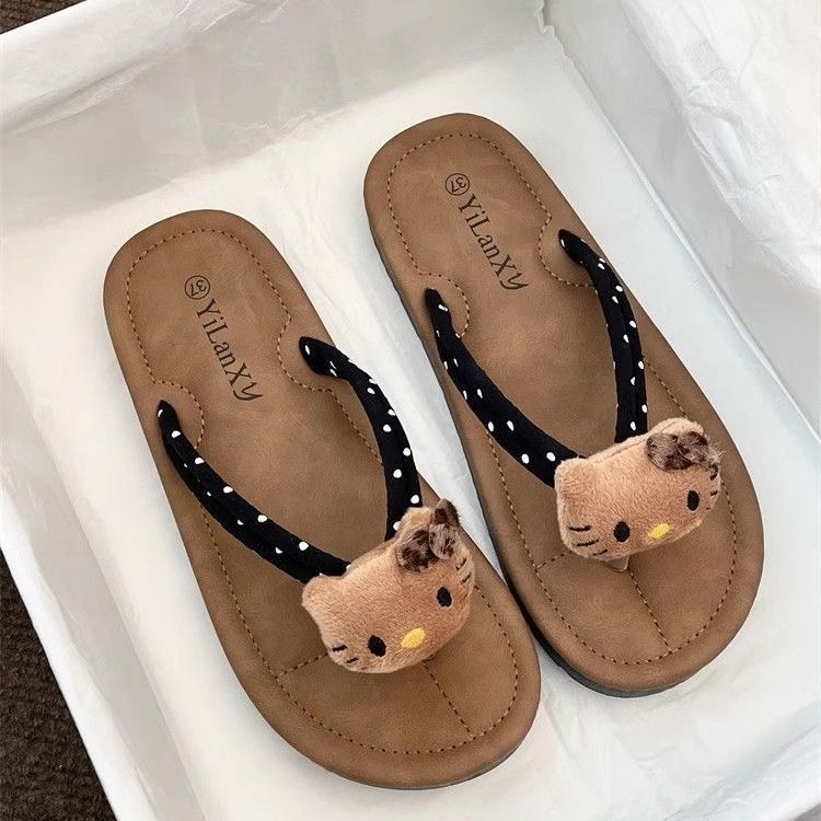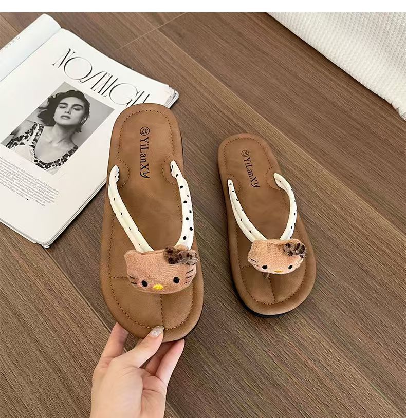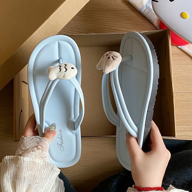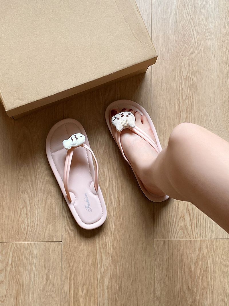 여름 2025 여성을위한 여성을위한 인터넷 연예인 귀여운 고양이 물고기 플립 플롭 여성을위한 새로운 미끄럼 방지 플립 플롭 비치 샌들