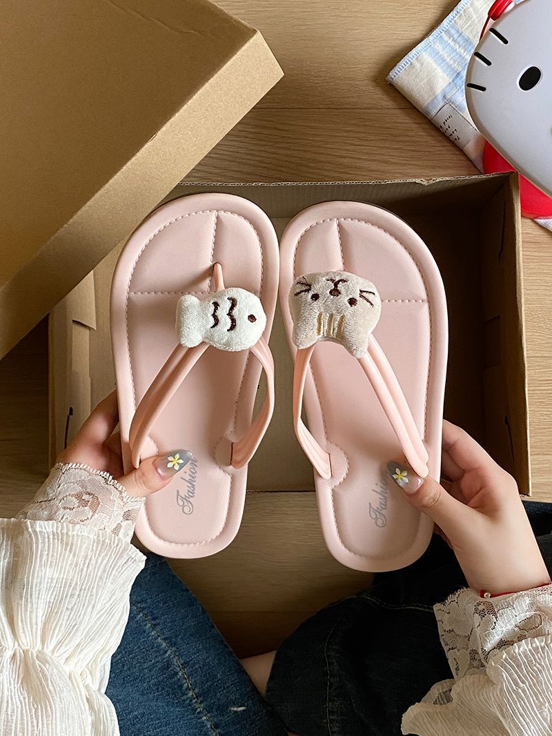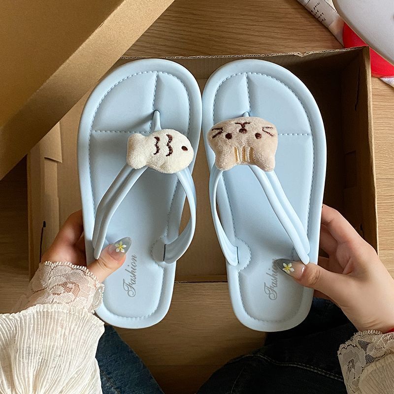 여름 2025 여성을위한 여성을위한 인터넷 연예인 귀여운 고양이 물고기 플립 플롭 여성을위한 새로운 미끄럼 방지 플립 플롭 비치 샌들스토어 가기