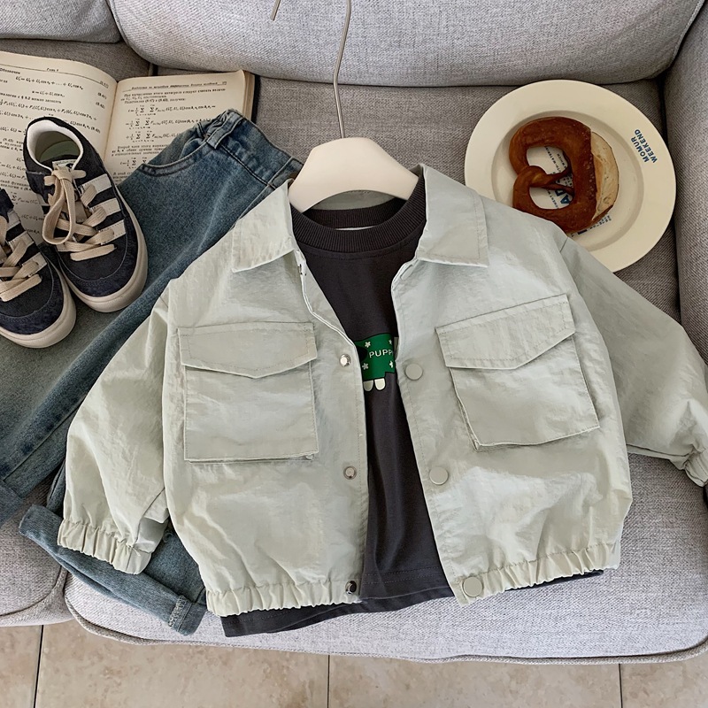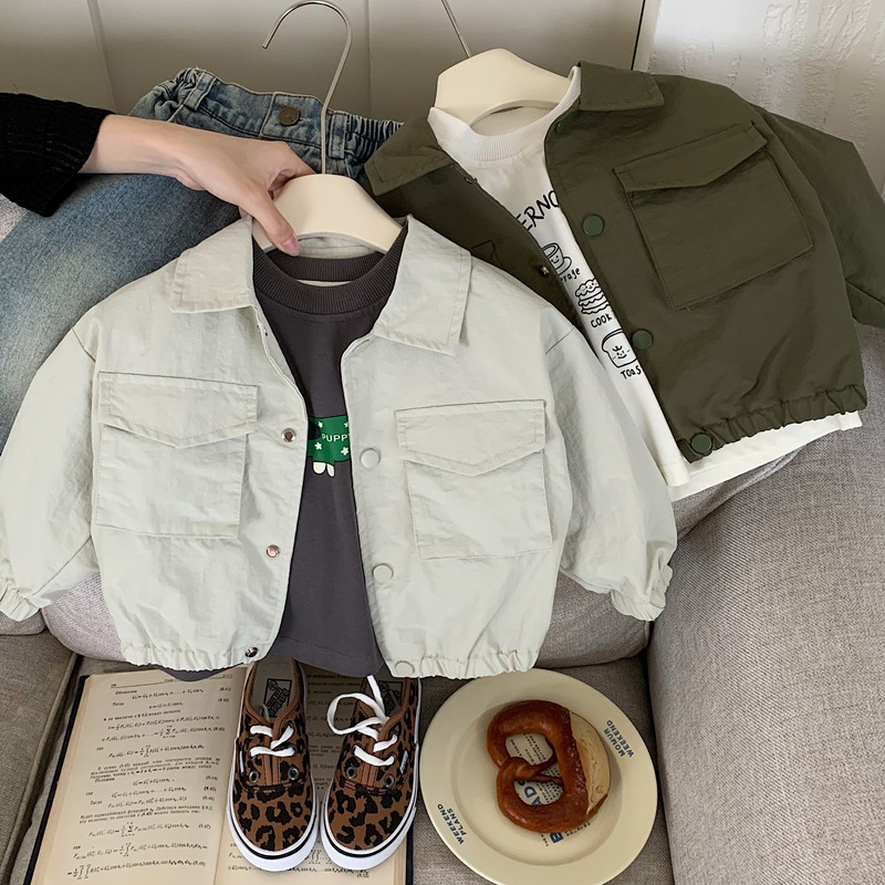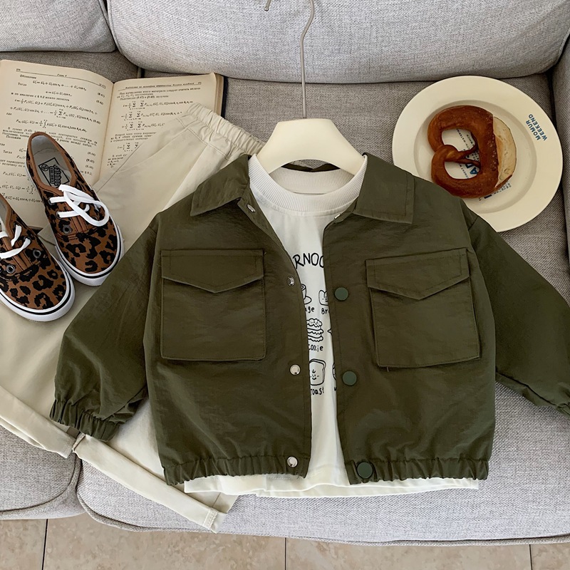 소년 코트 아동용 밀리터리 그린 야구 재킷 봄, 가을 2025 통기성 일본 작업복 소녀 탑 유행