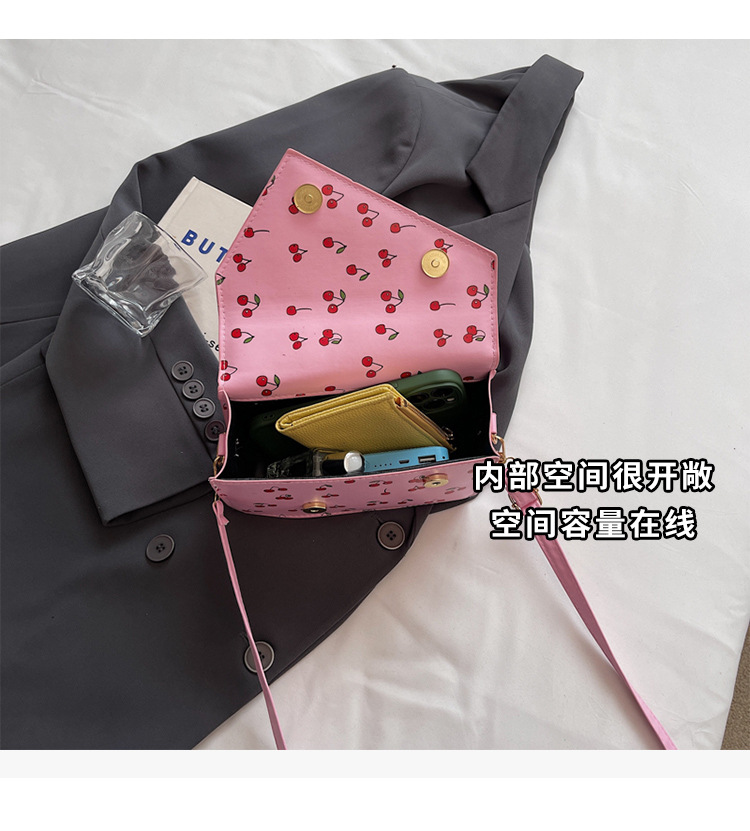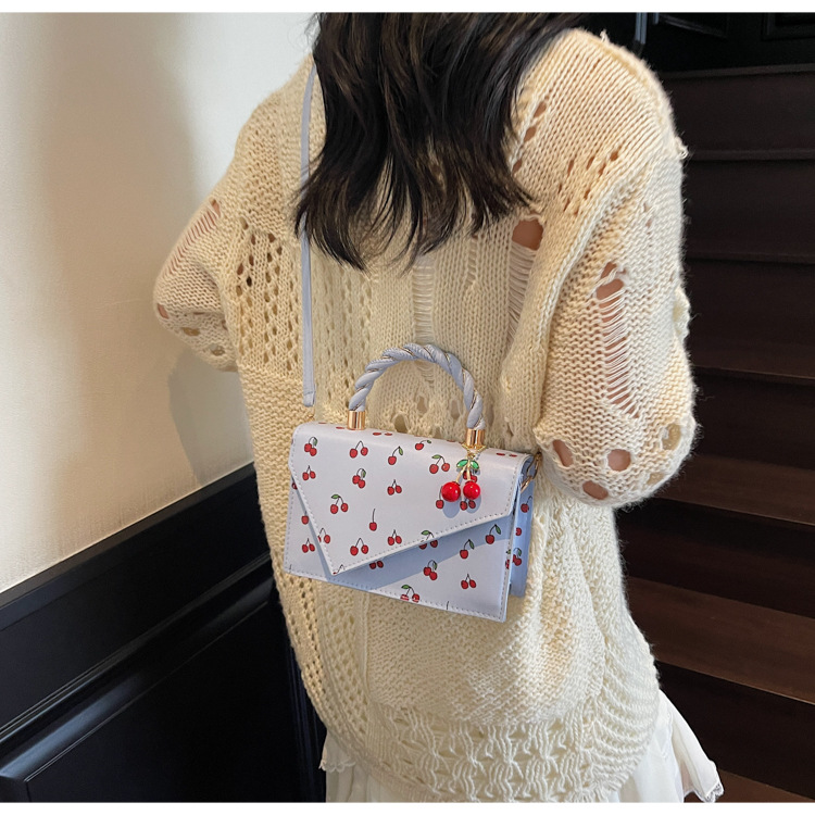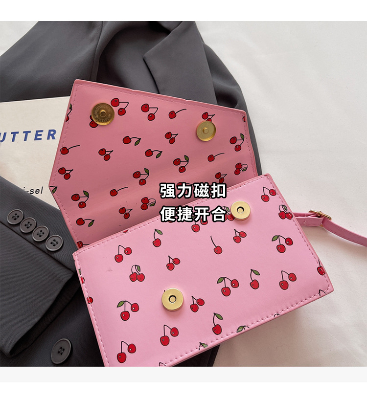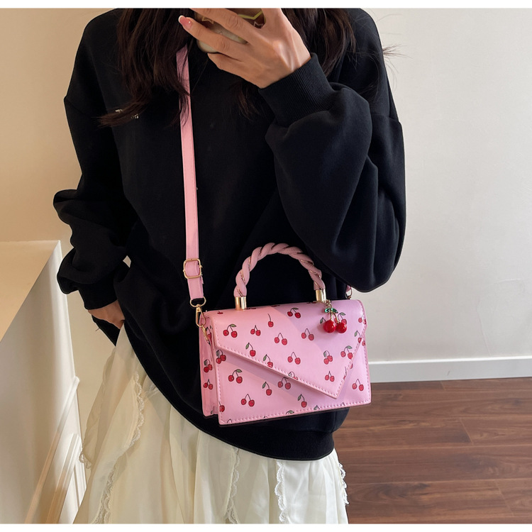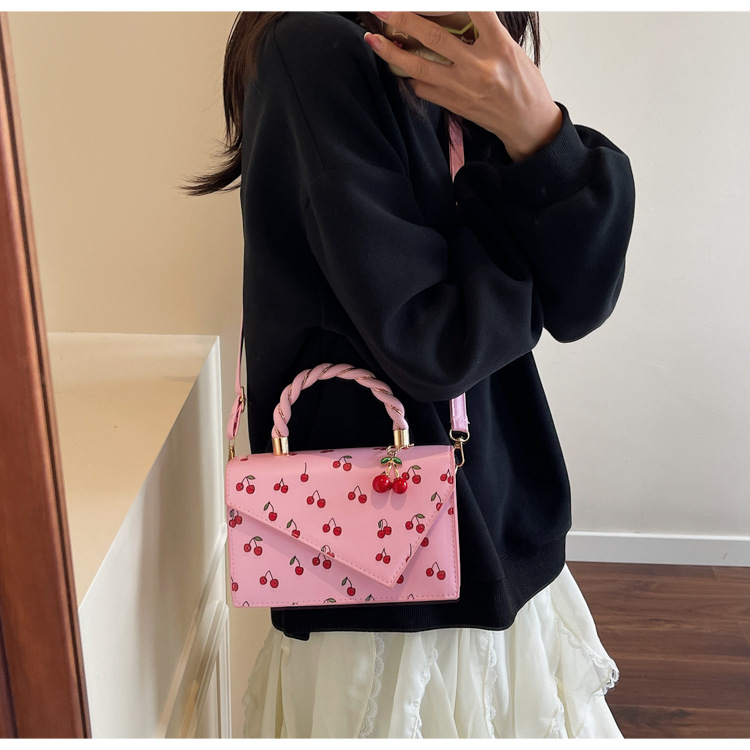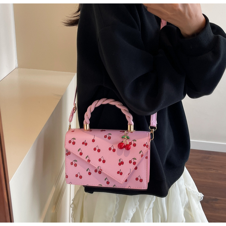 신선하고 달콤한 휴대용 작은 사각형 가방 여성 가방 2025 여름 새로운 체리 대비 색상 어깨 가방 통근 크로스 바디 백스토어 가기