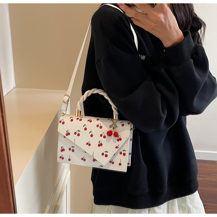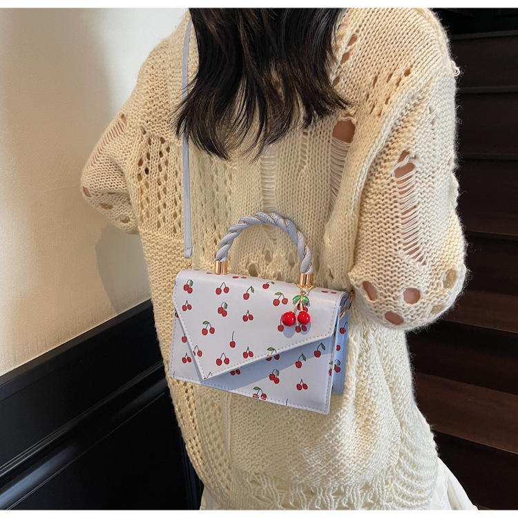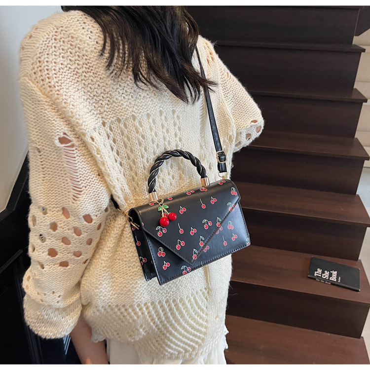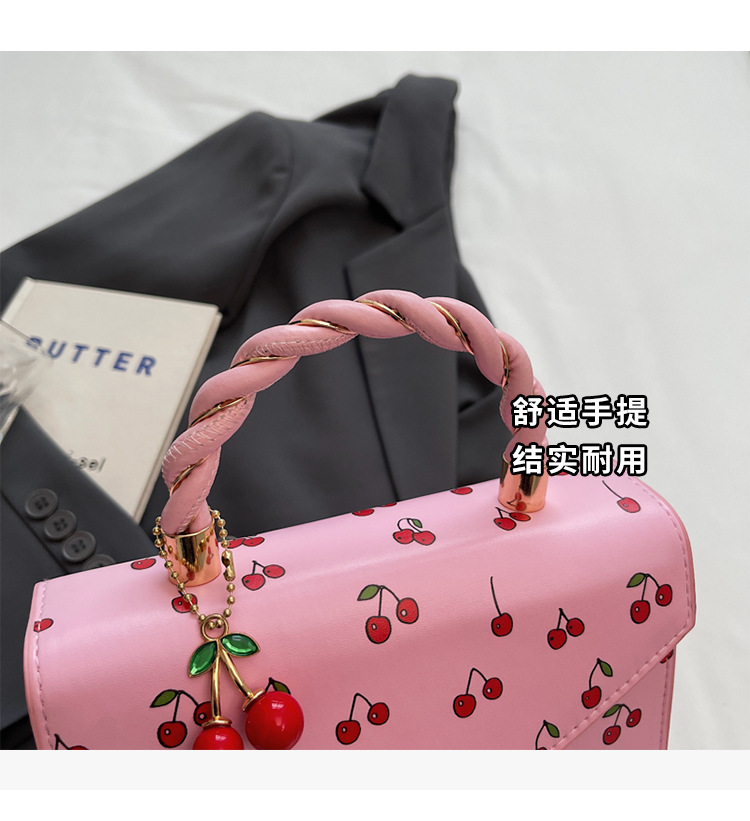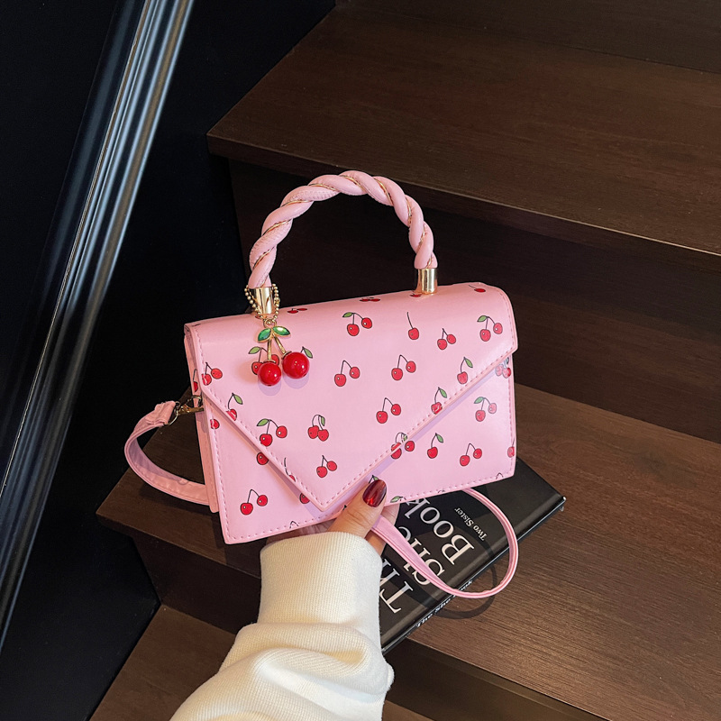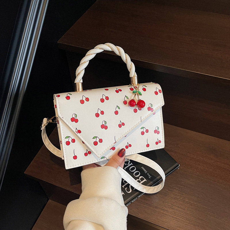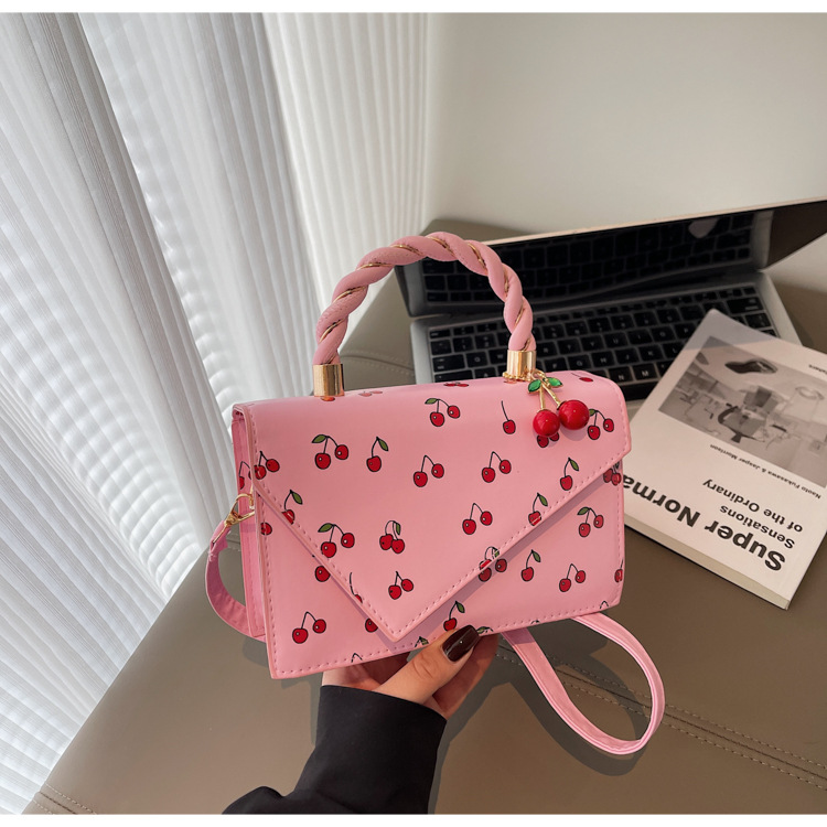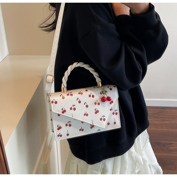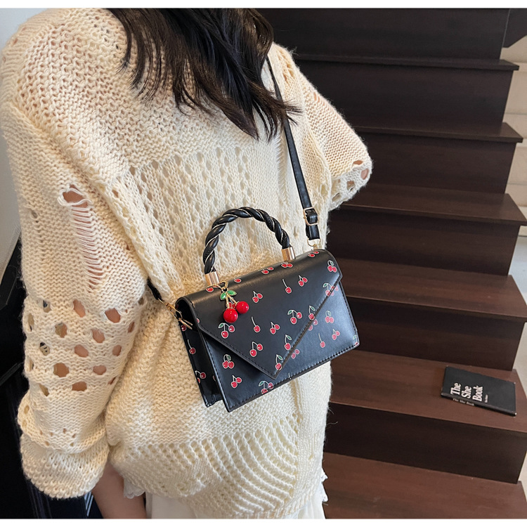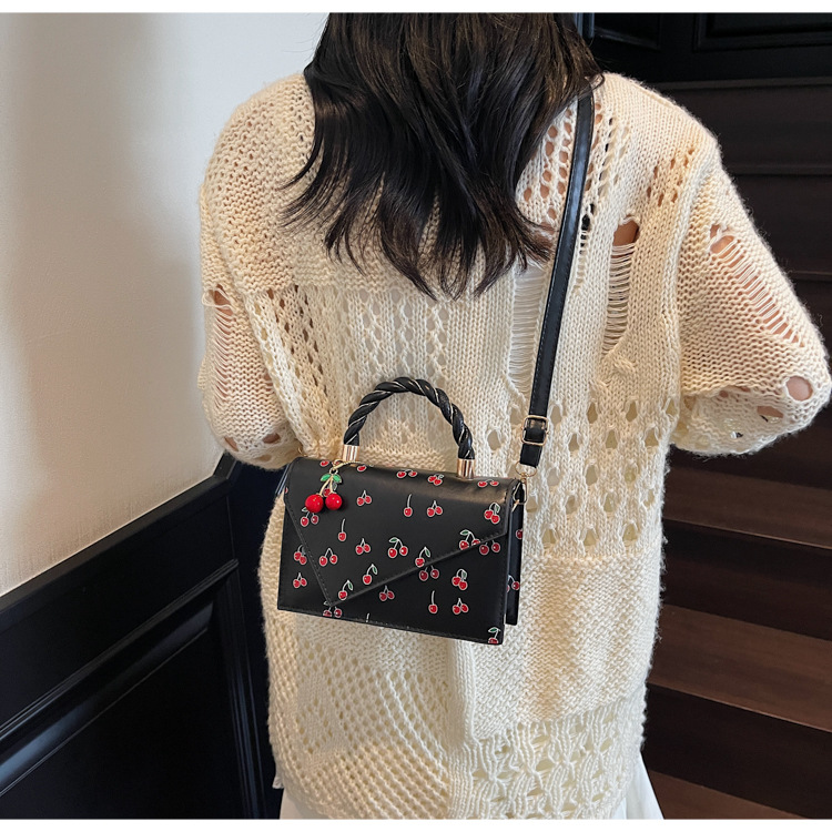 신선하고 달콤한 휴대용 작은 사각형 가방 여성 가방 2025 여름 새로운 체리 대비 색상 어깨 가방 통근 크로스 바디 백