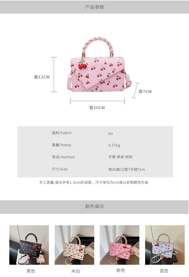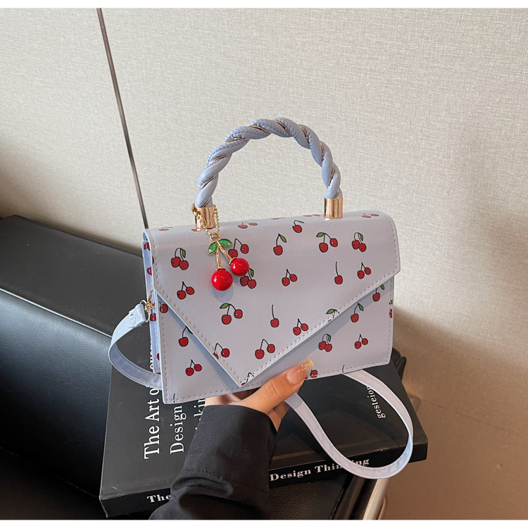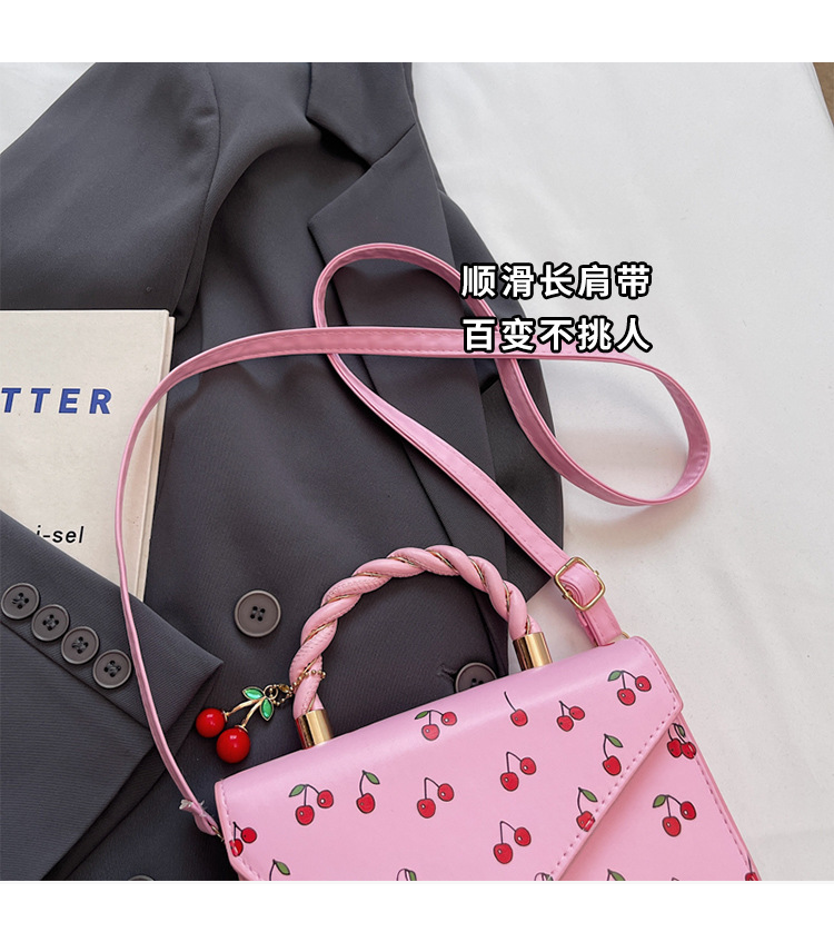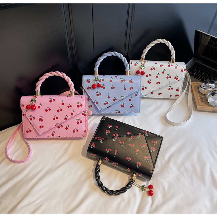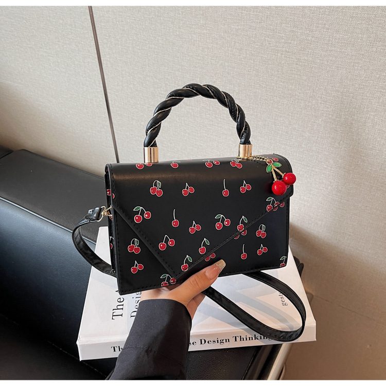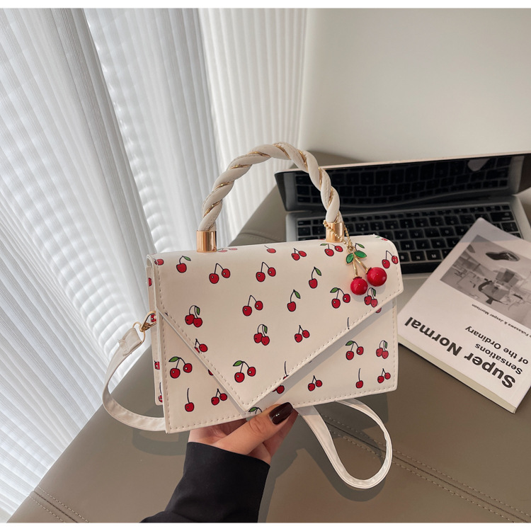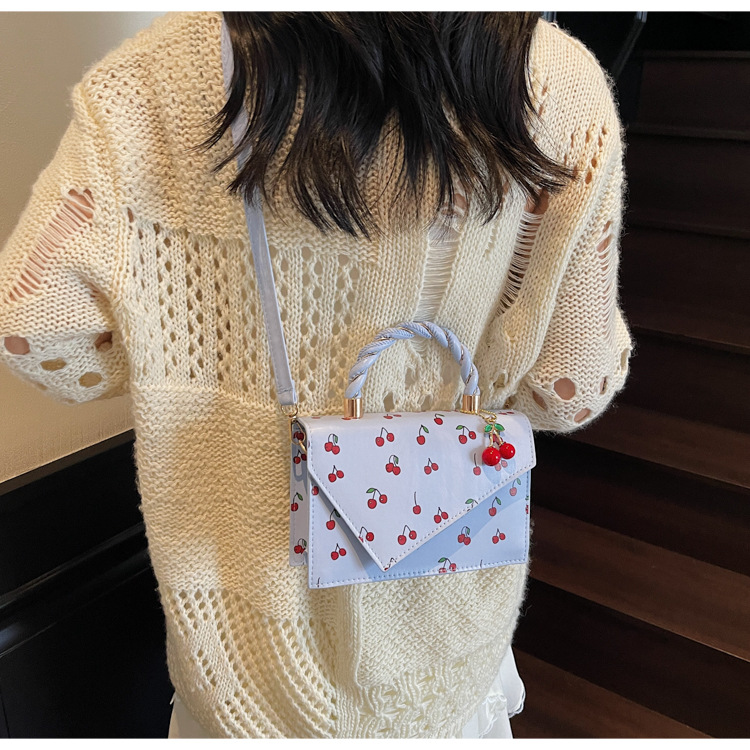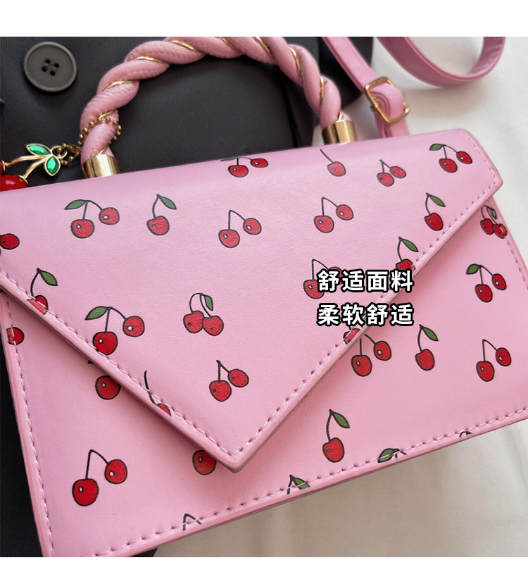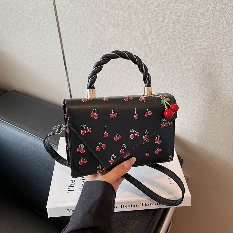 신선하고 달콤한 휴대용 작은 사각형 가방 여성 가방 2025 여름 새로운 체리 대비 색상 어깨 가방 통근 크로스 바디 백