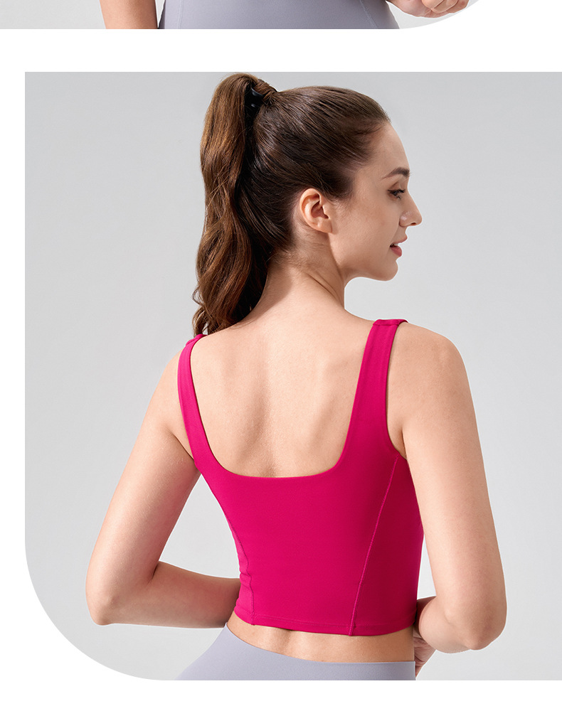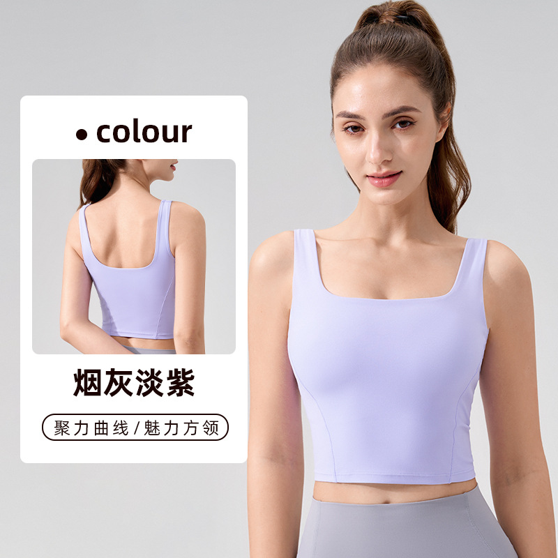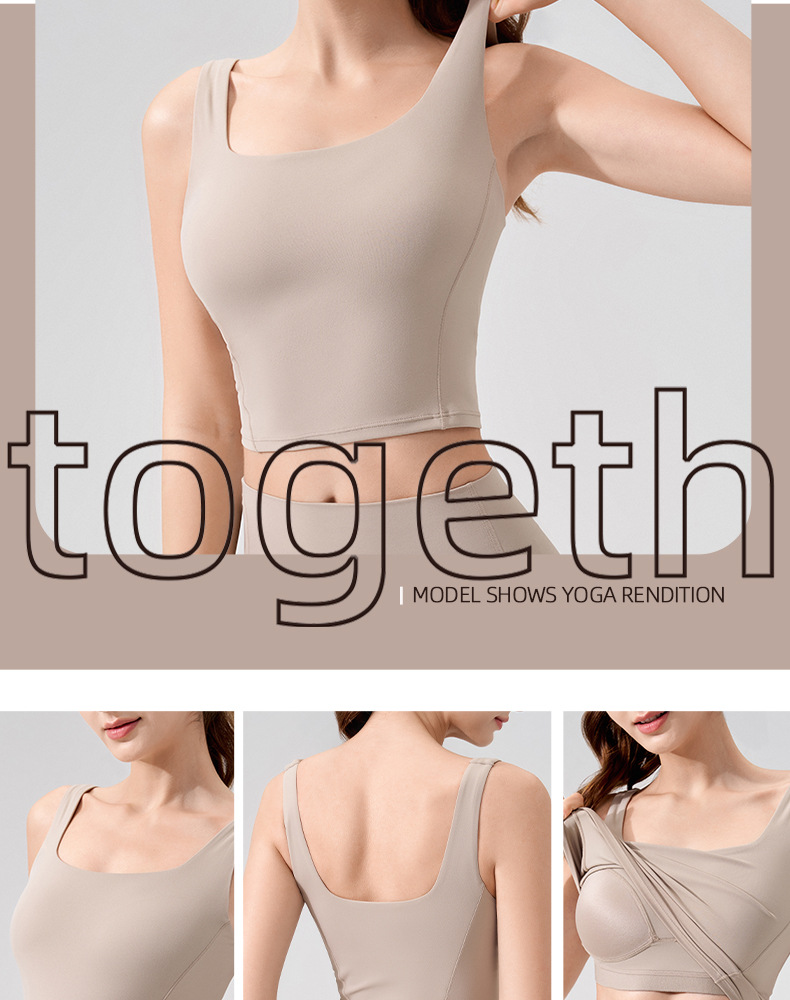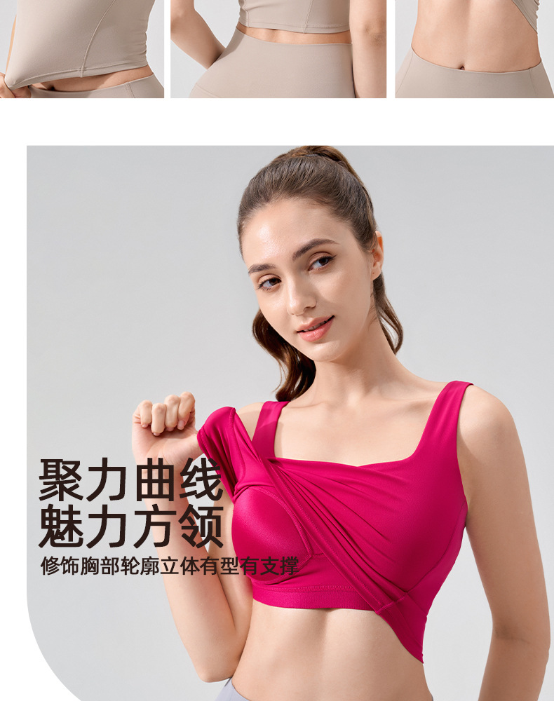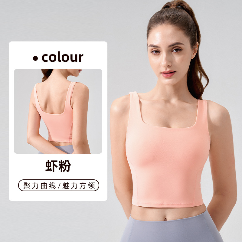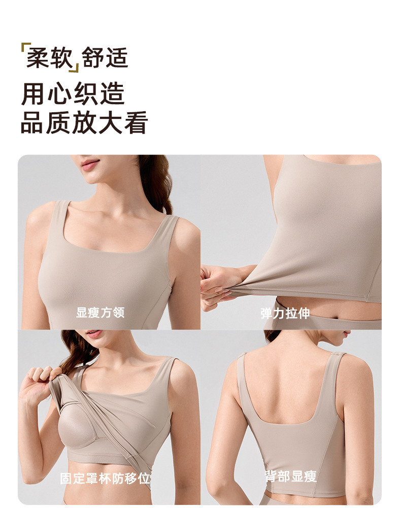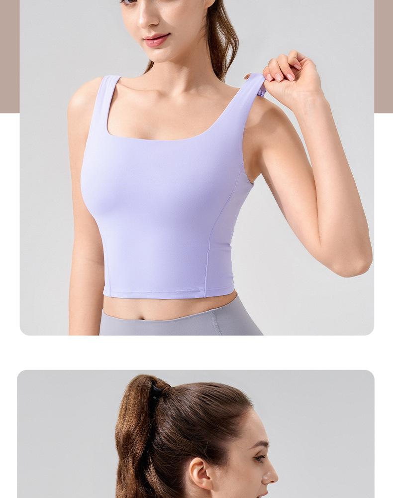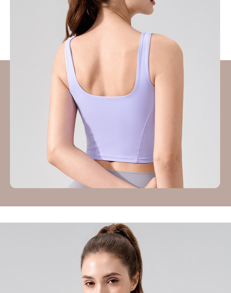 NS 누드 원피스 고정 컵 요가복 여성용 민소매 짧은 스포츠 브라 와이드 숄더 서스펜더 요가 조끼