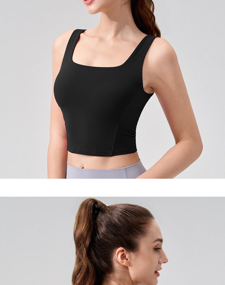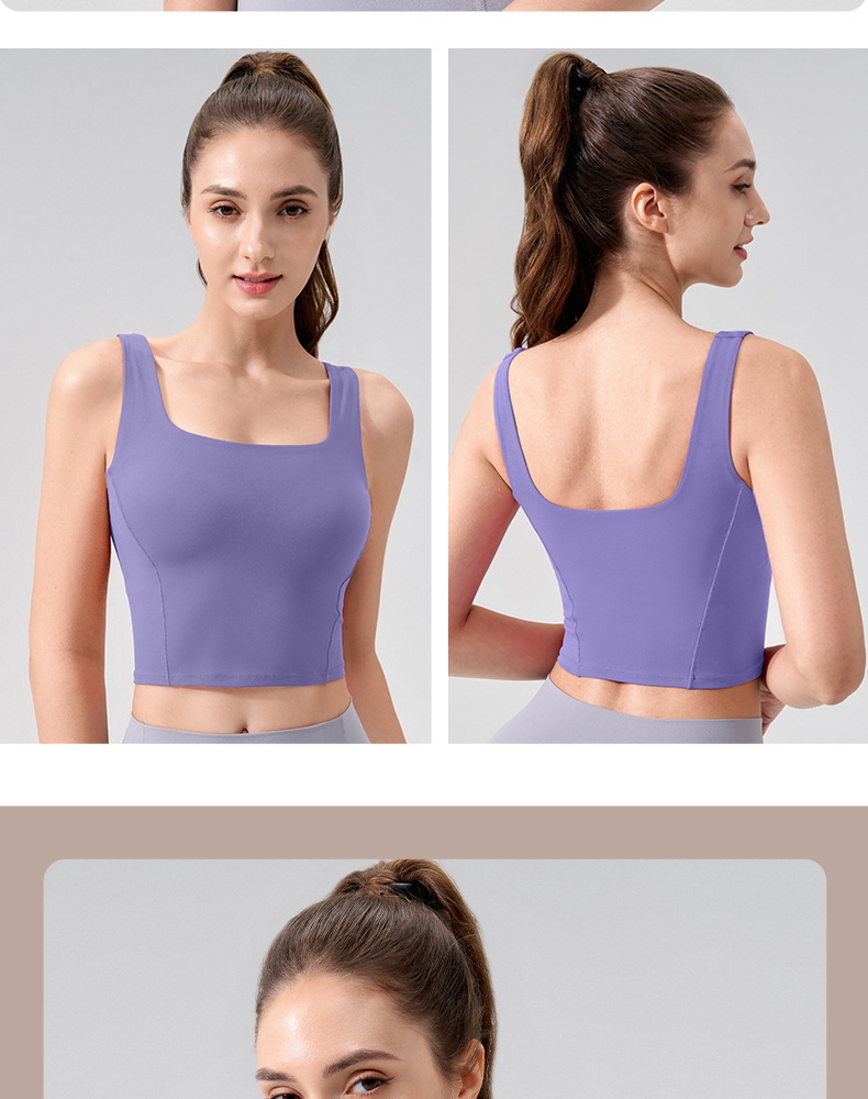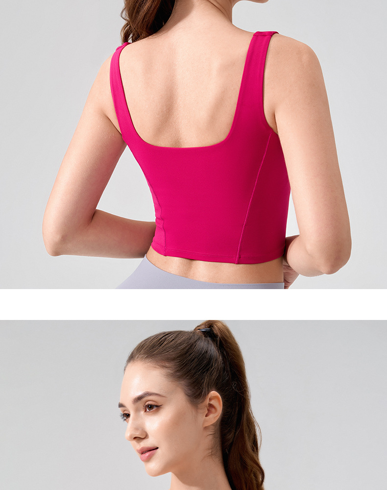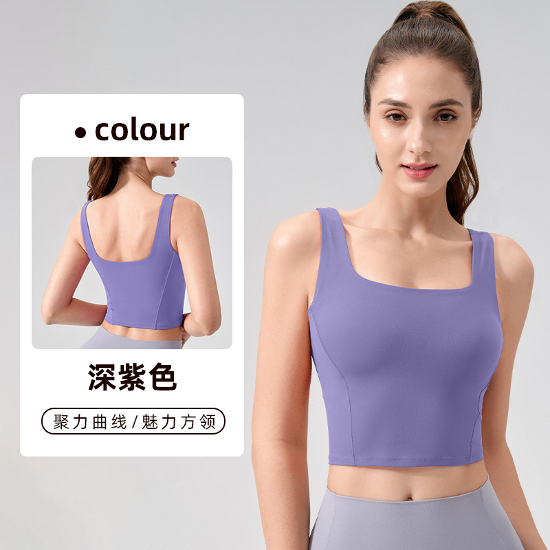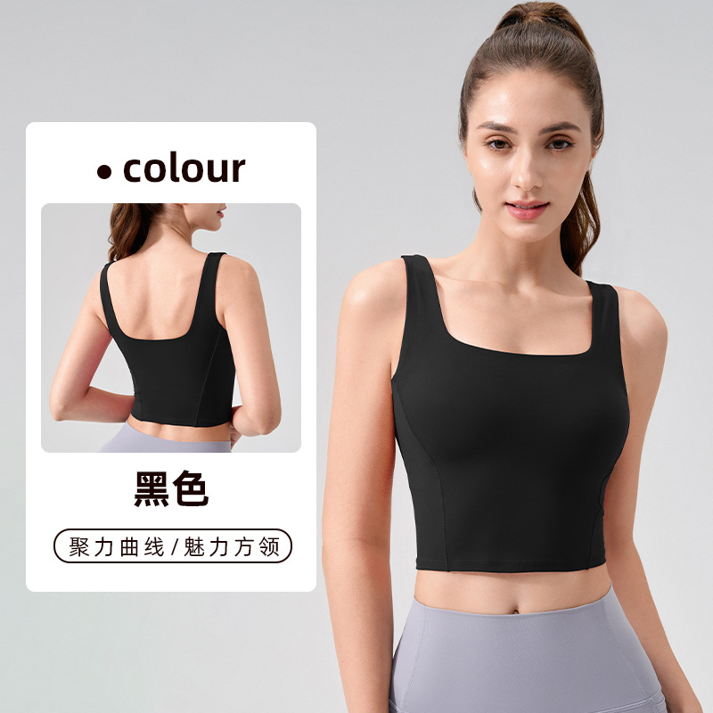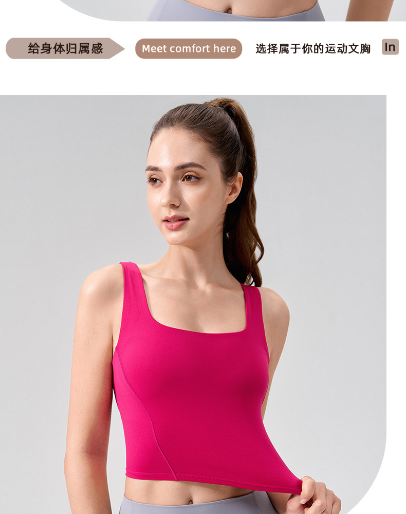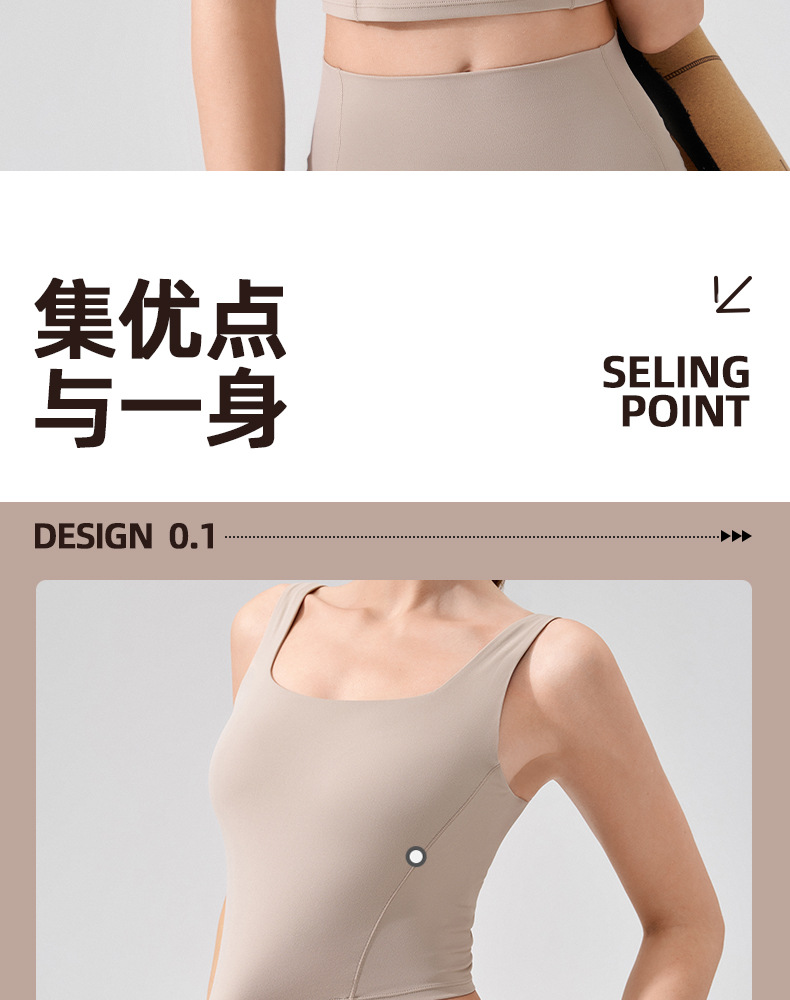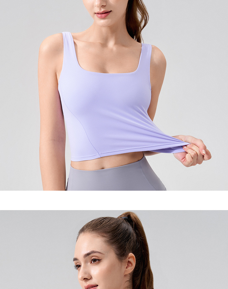 NS 누드 원피스 고정 컵 요가복 여성용 민소매 짧은 스포츠 브라 와이드 숄더 서스펜더 요가 조끼
