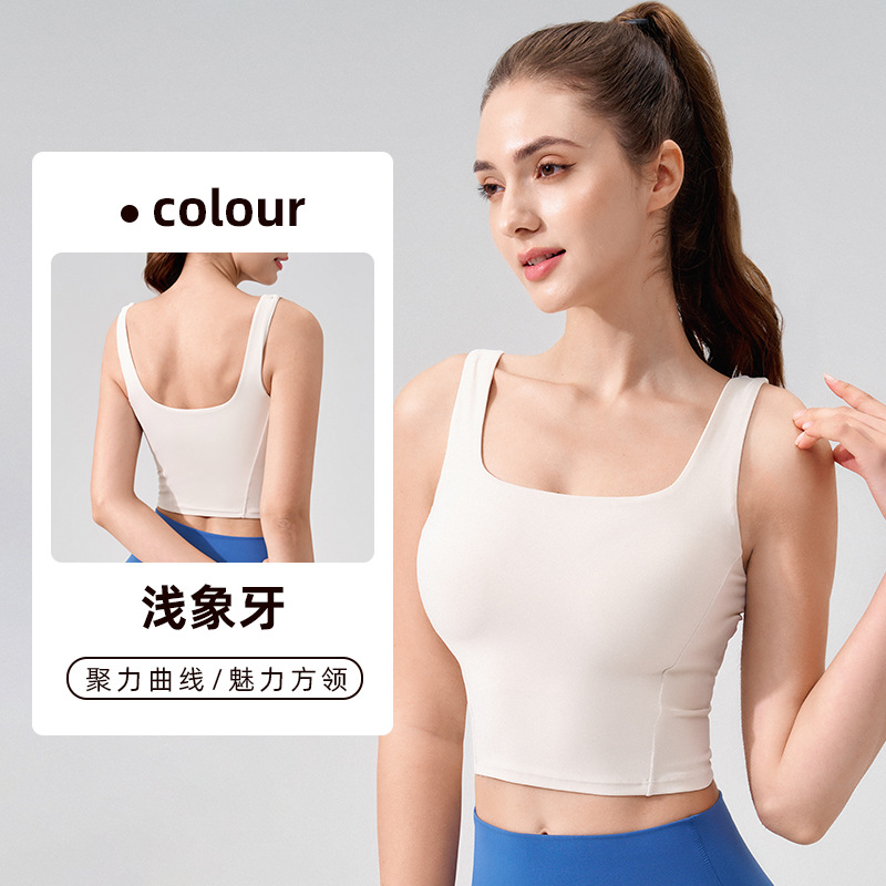 NS 누드 원피스 고정 컵 요가복 여성용 민소매 짧은 스포츠 브라 와이드 숄더 서스펜더 요가 조끼스토어 가기