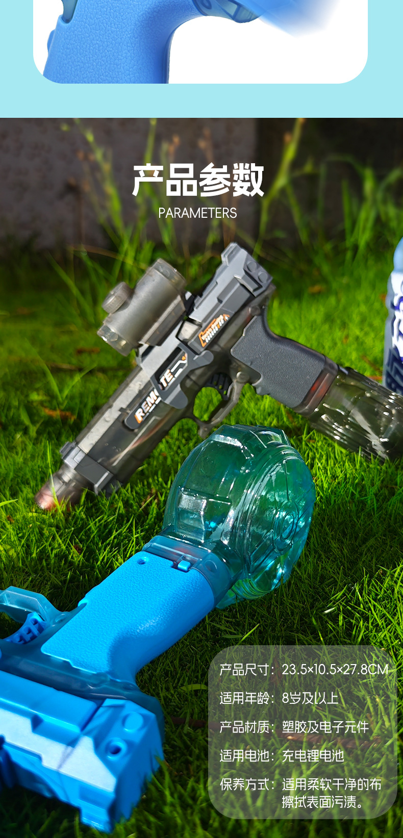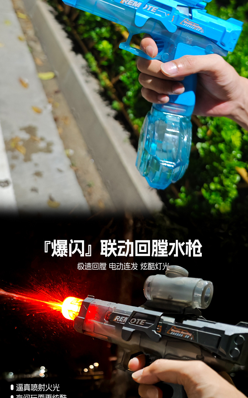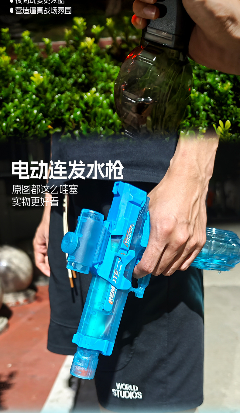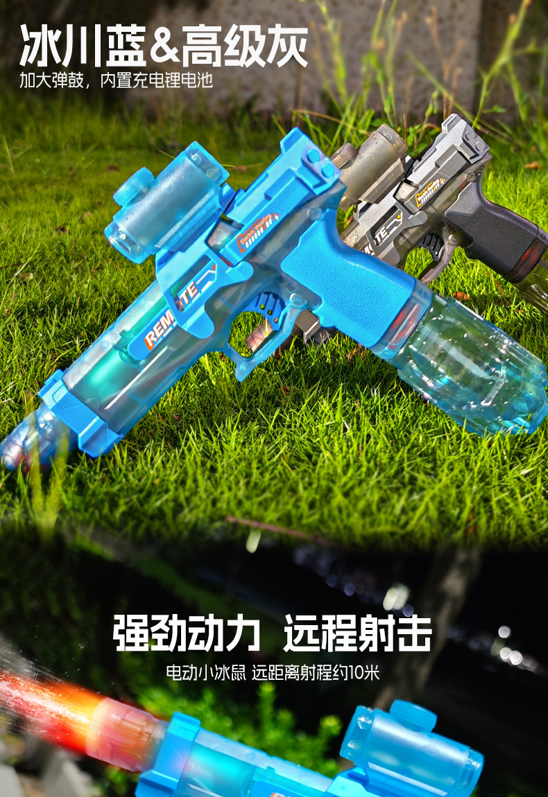 2세대 글록 물총, 플래시 조명, 완전 자동 고속 연결 대용량 전기 물총 어린이 장난감스토어 가기
