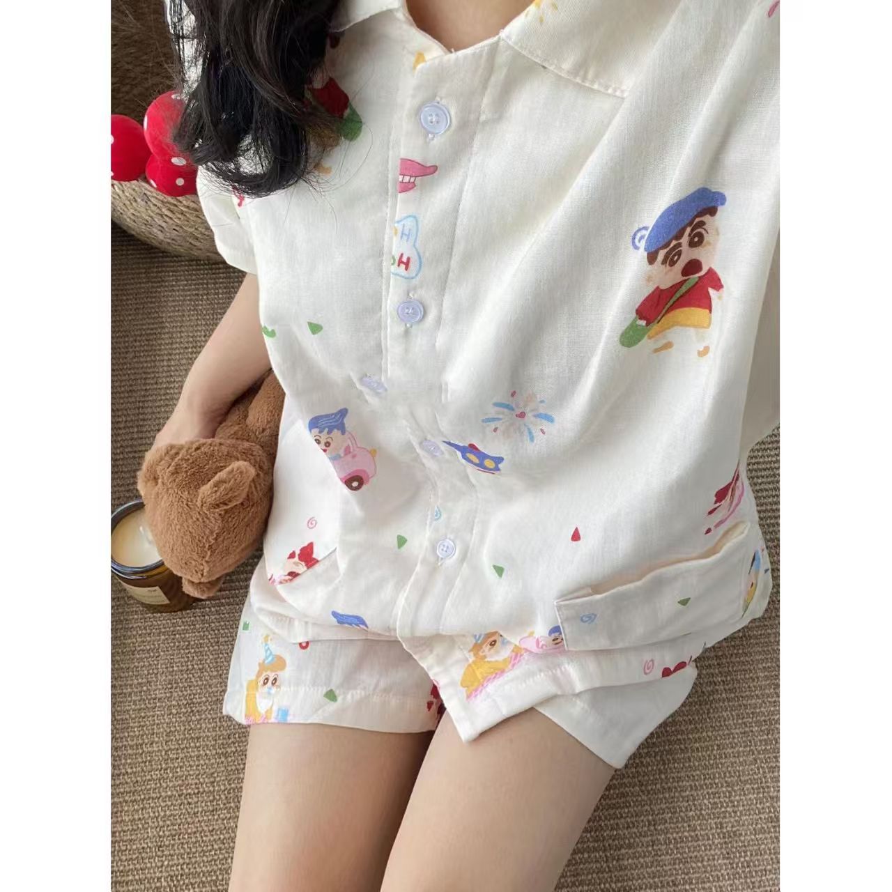 여름 반팔 반바지가 포함된 여성을 위한 매우 귀여운 커스터드 토끼 잠옷, 학생 기숙사용 달콤한 양복, 집 밖에서 입을 수 있는 옷