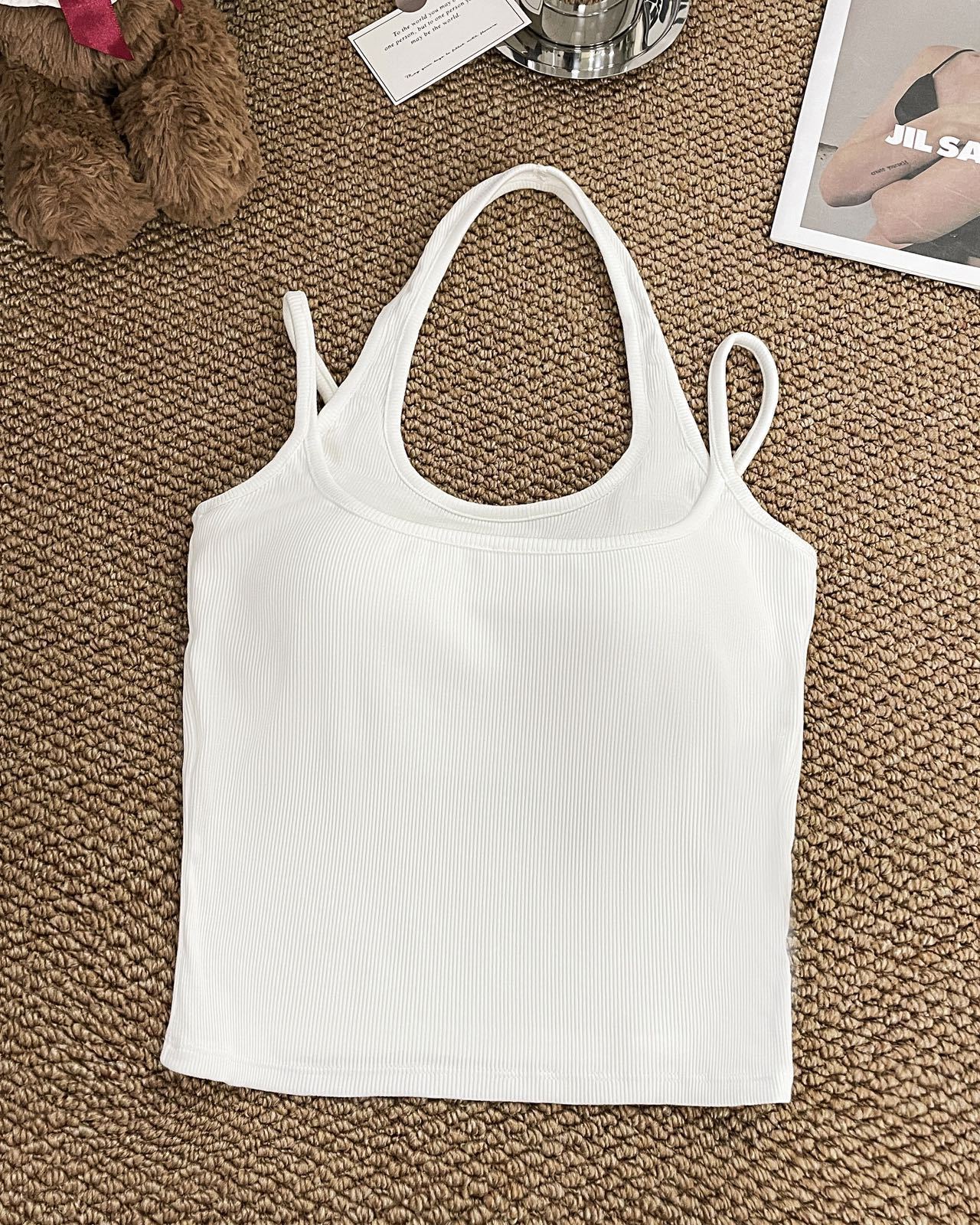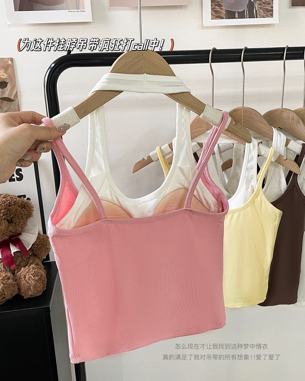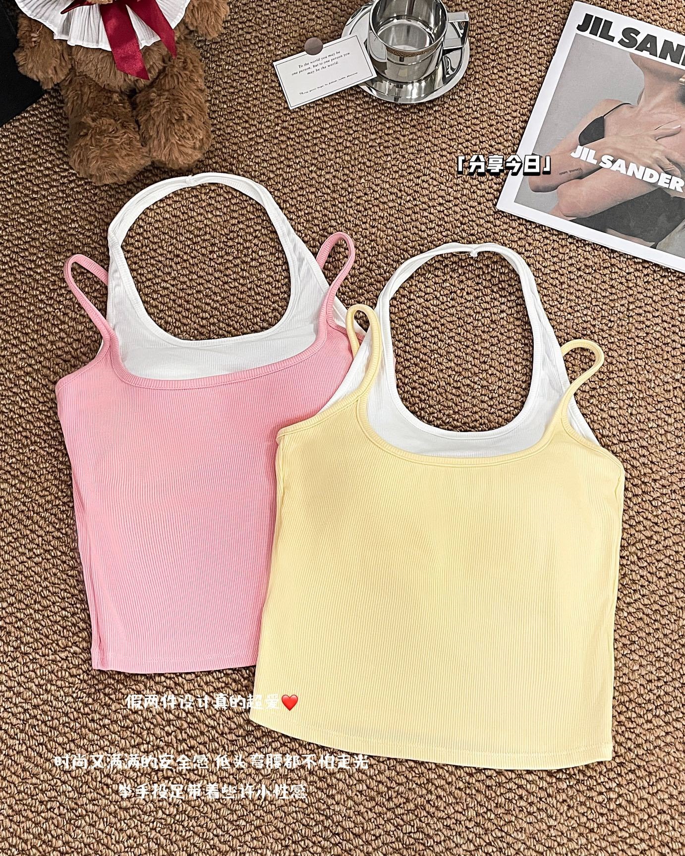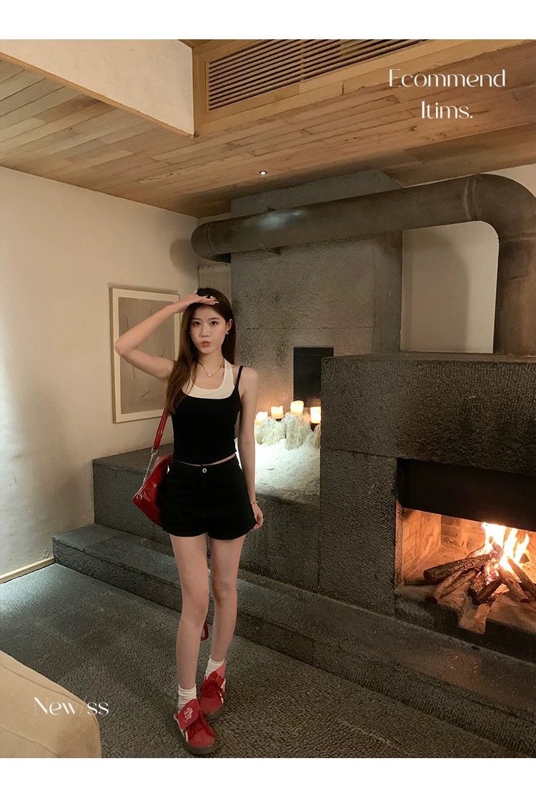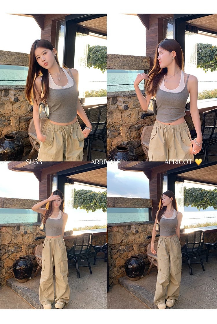 R991입니다. # 도파민 타이 스타일 홀터넥 페이크 투피스 캐미솔 신상 올인원 아름다운 등 숏탑 가슴 패드 포함스토어 가기