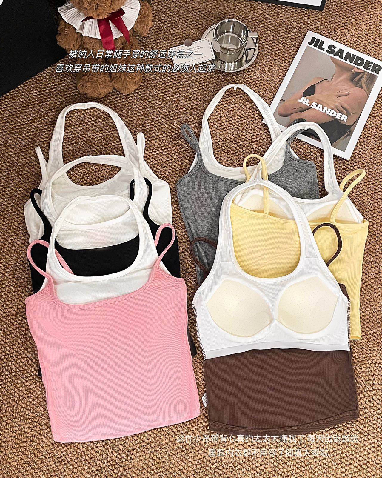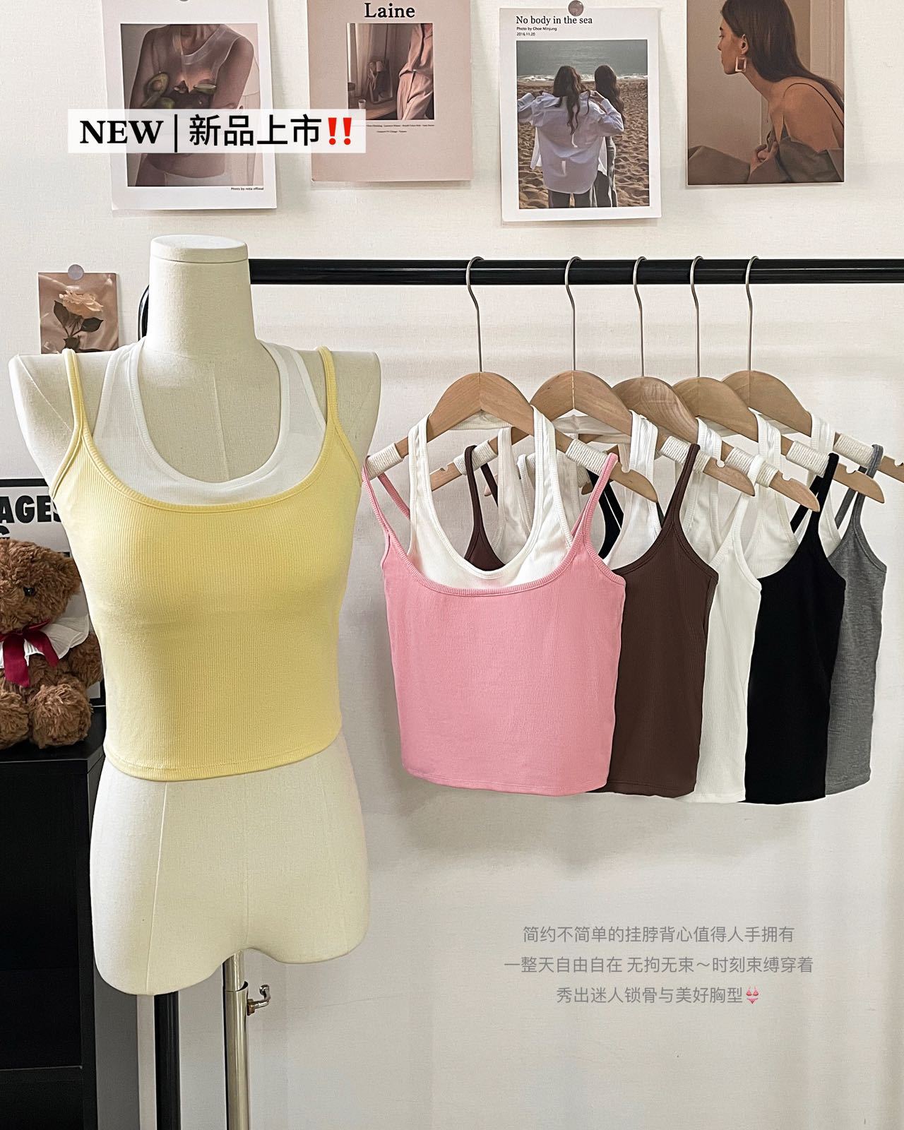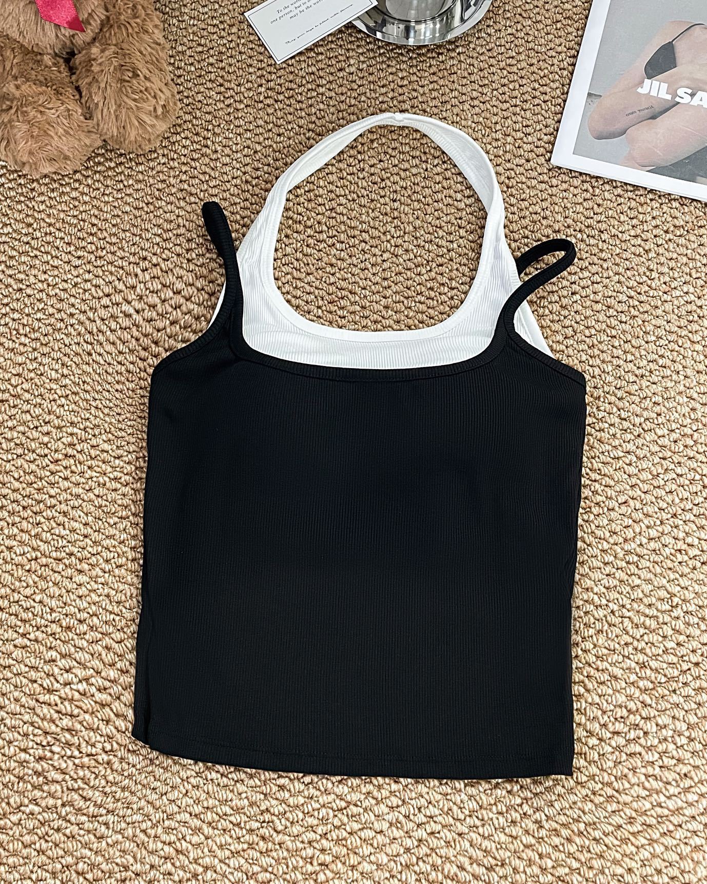 R991입니다. # 도파민 타이 스타일 홀터넥 페이크 투피스 캐미솔 신상 올인원 아름다운 등 숏탑 가슴 패드 포함스토어 가기