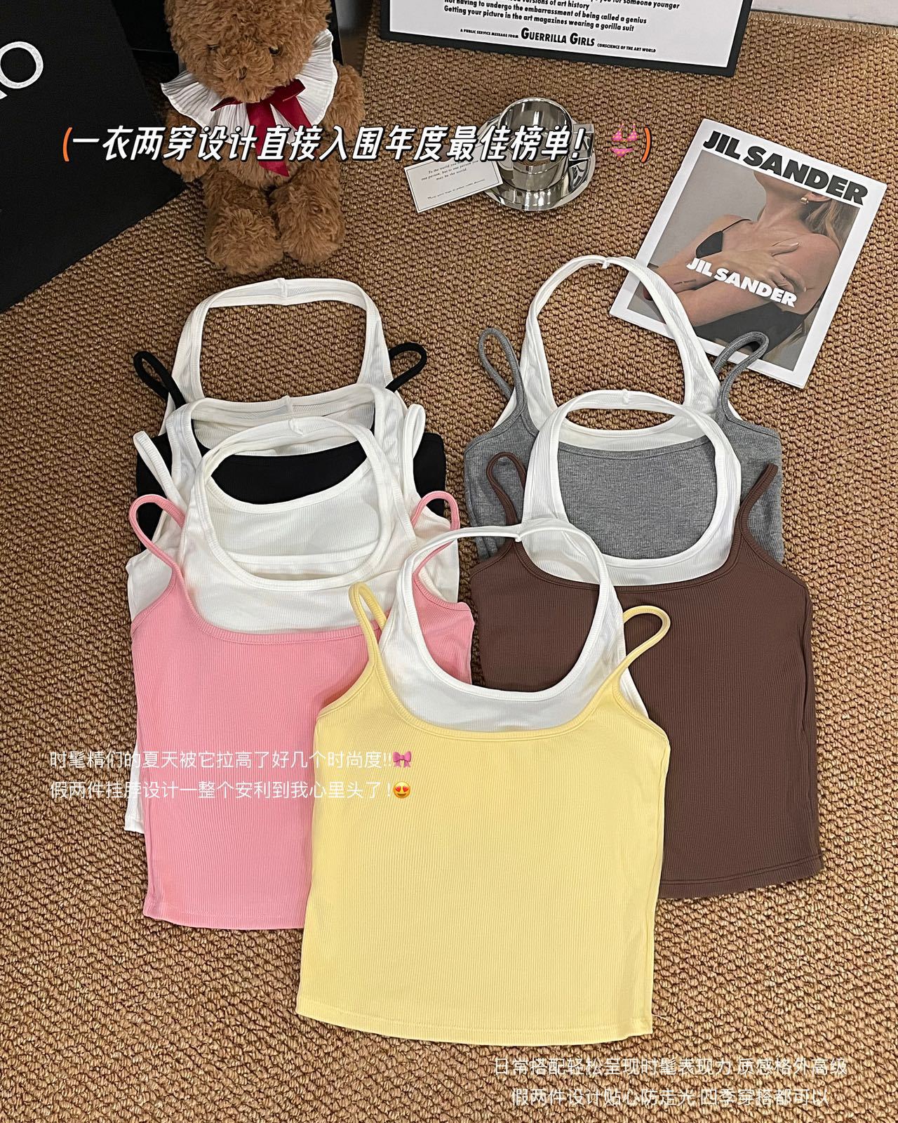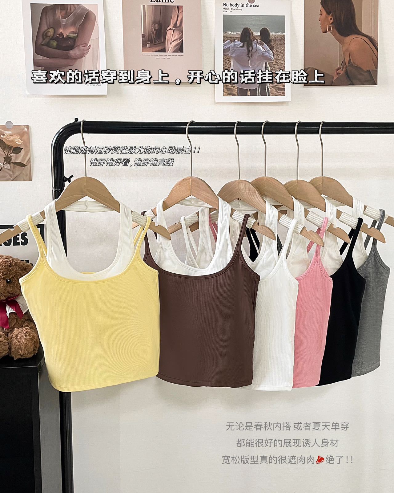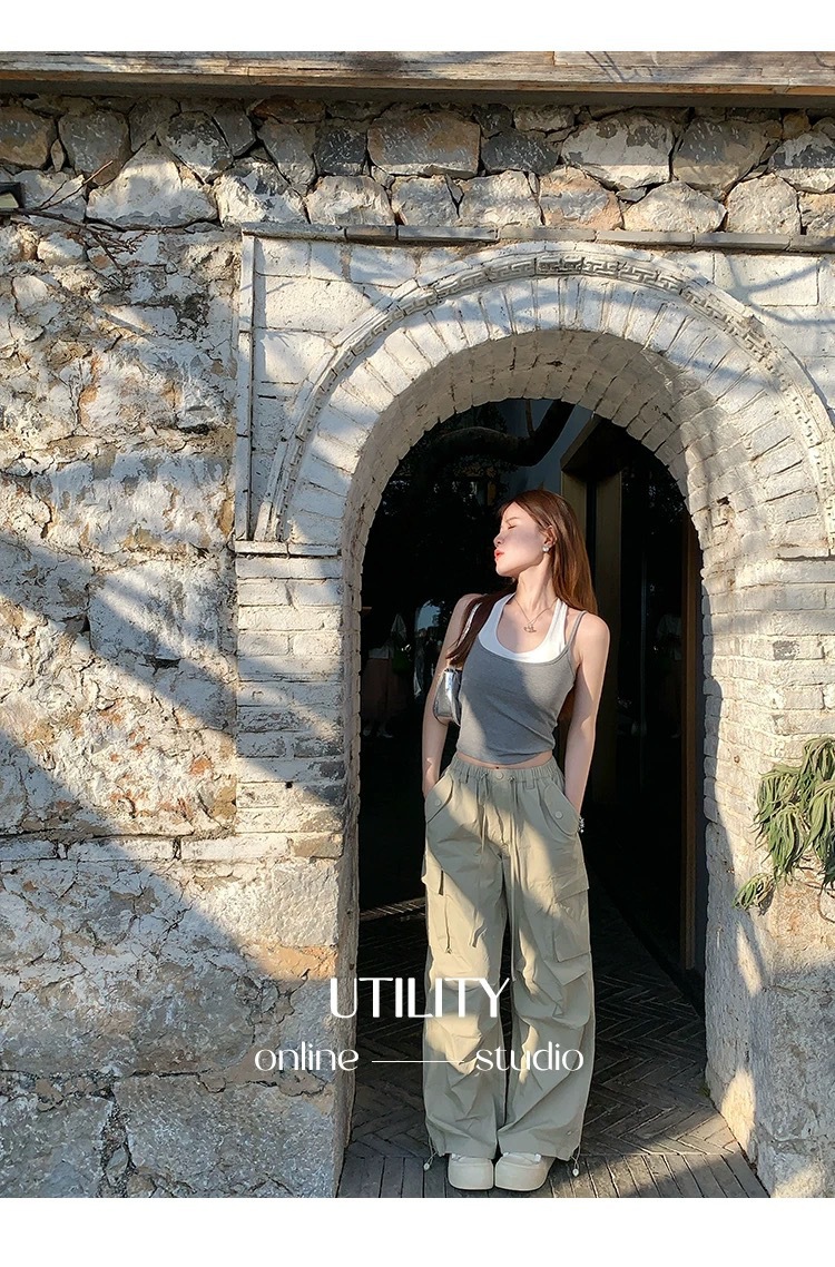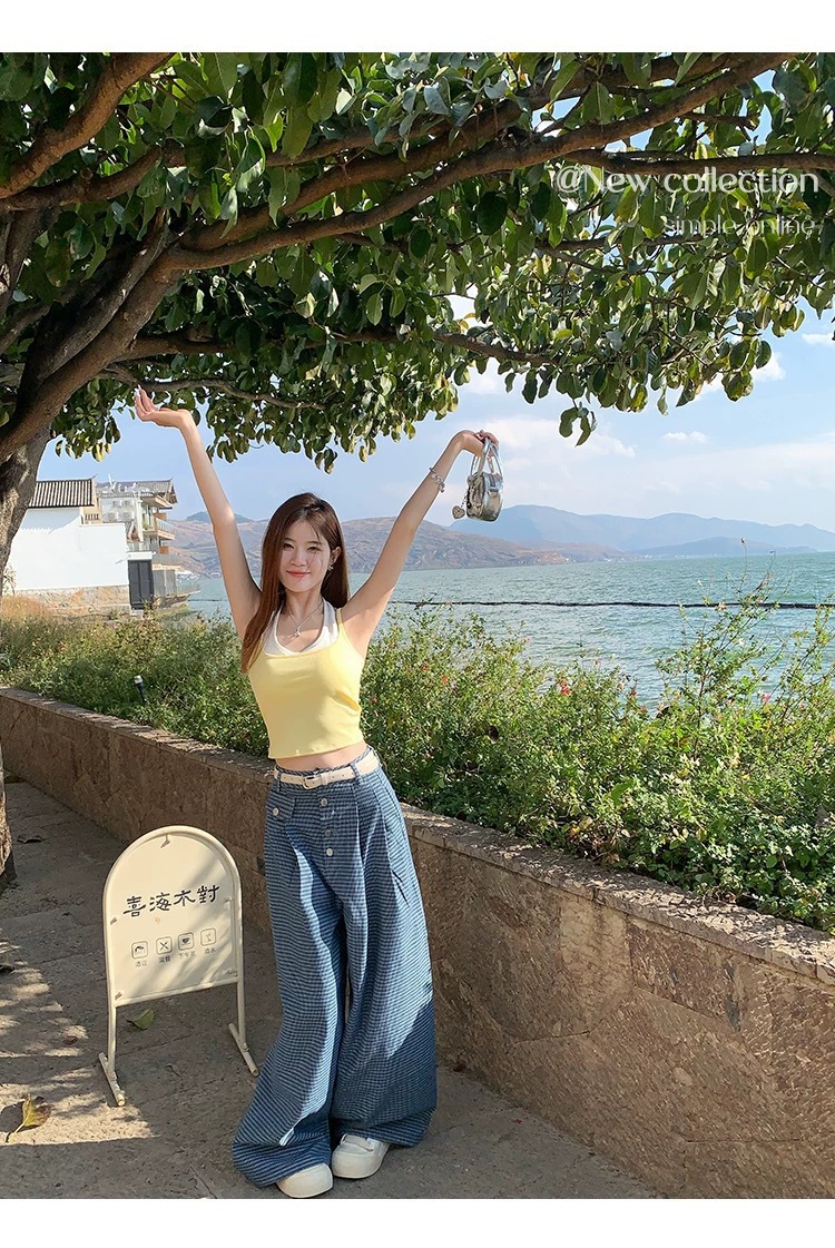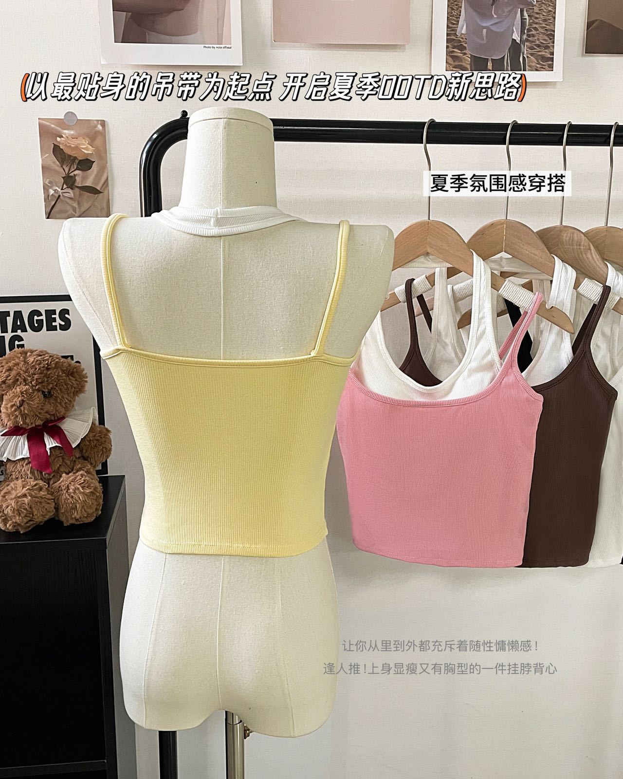 R991입니다. # 도파민 타이 스타일 홀터넥 페이크 투피스 캐미솔 신상 올인원 아름다운 등 숏탑 가슴 패드 포함스토어 가기