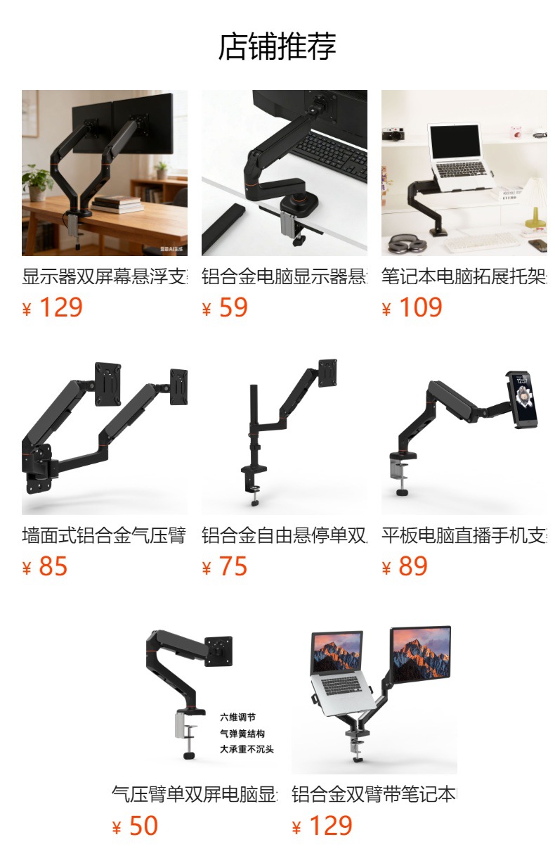 材质说明:本支架下臂与底座部分是铝合金材质,上臂部分为碳钢材质,笔记本托盘为碳钢材质