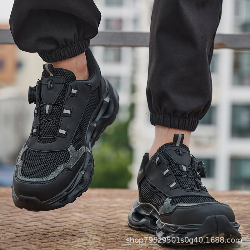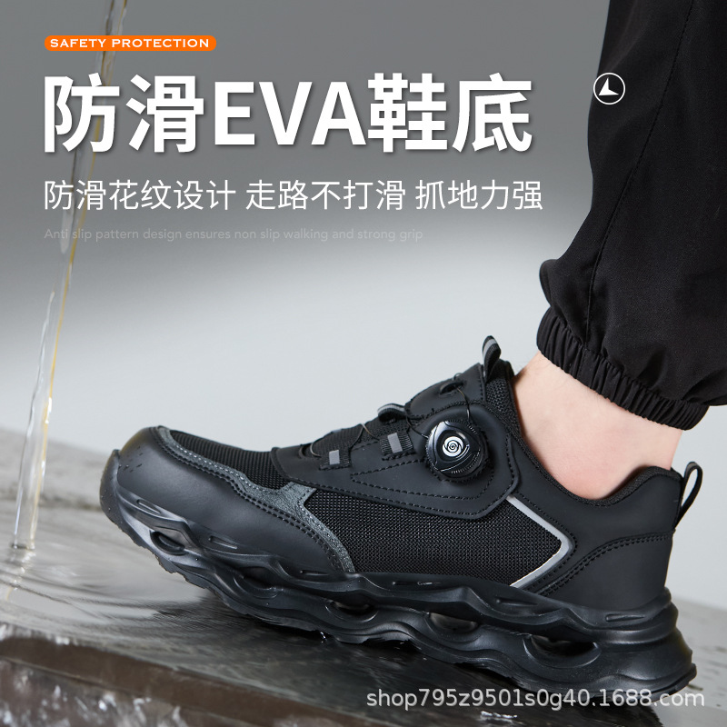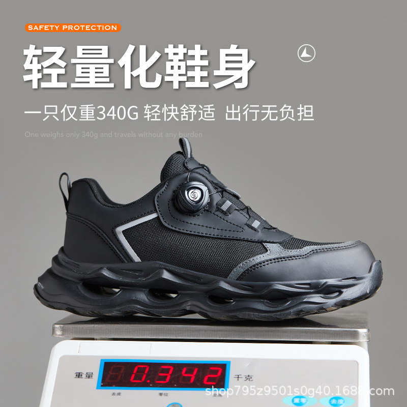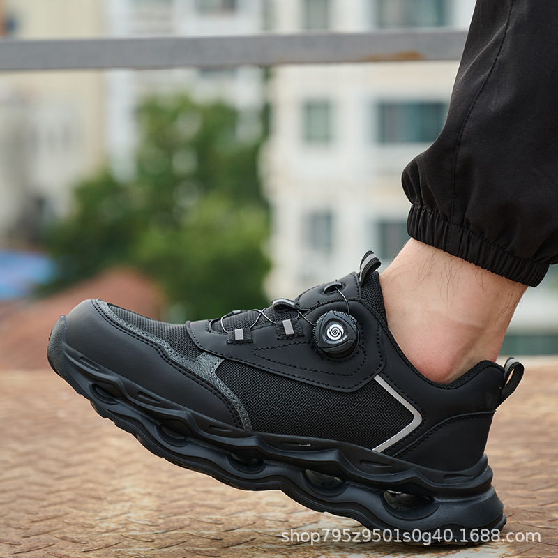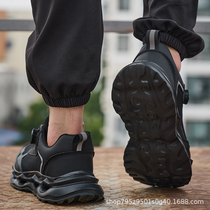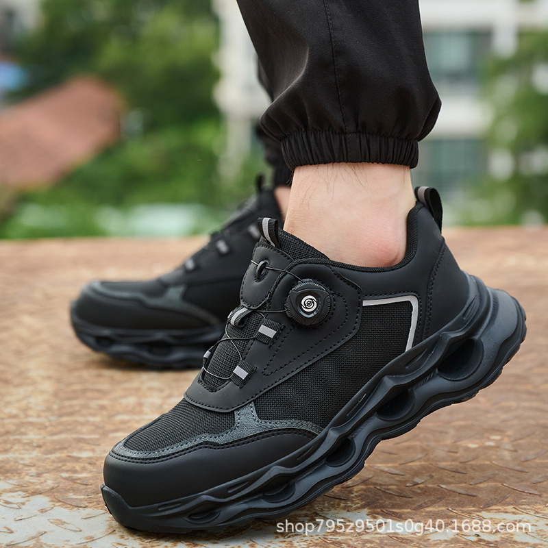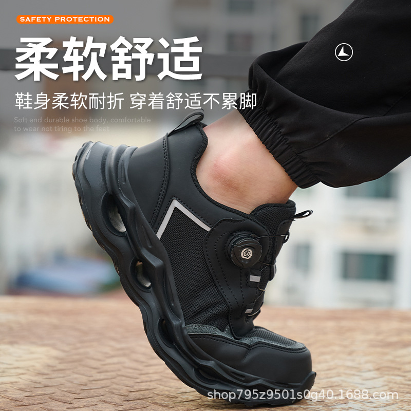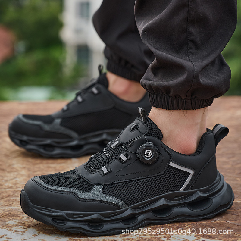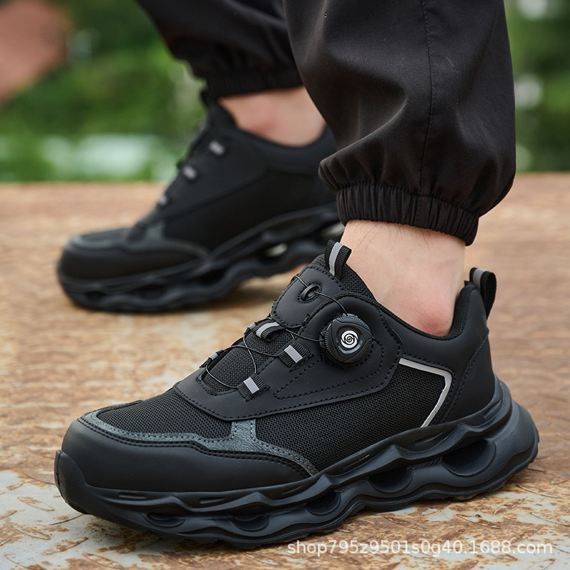 국경 간 회전 버클 노동 보호 신발, 통기성 남성용 안티 스매싱 및 안티 펑크 강철 발가락 안전 신발, 스마트 버클 작업 대외 무역 신발스토어 가기