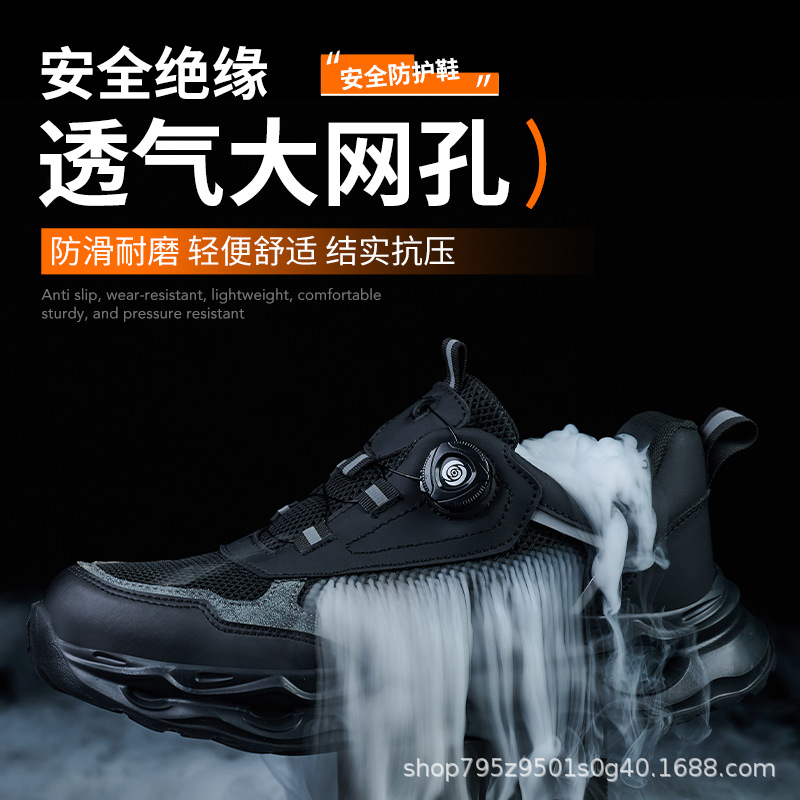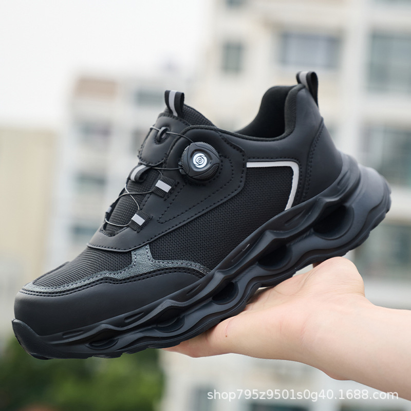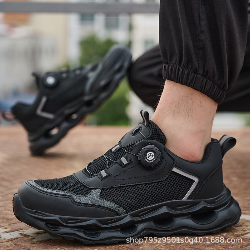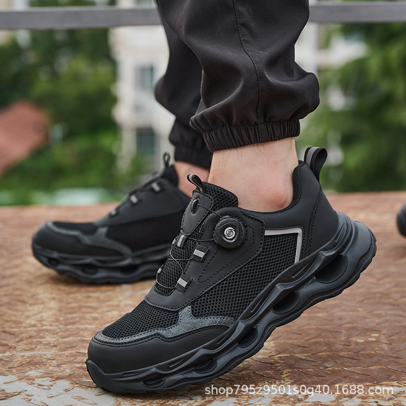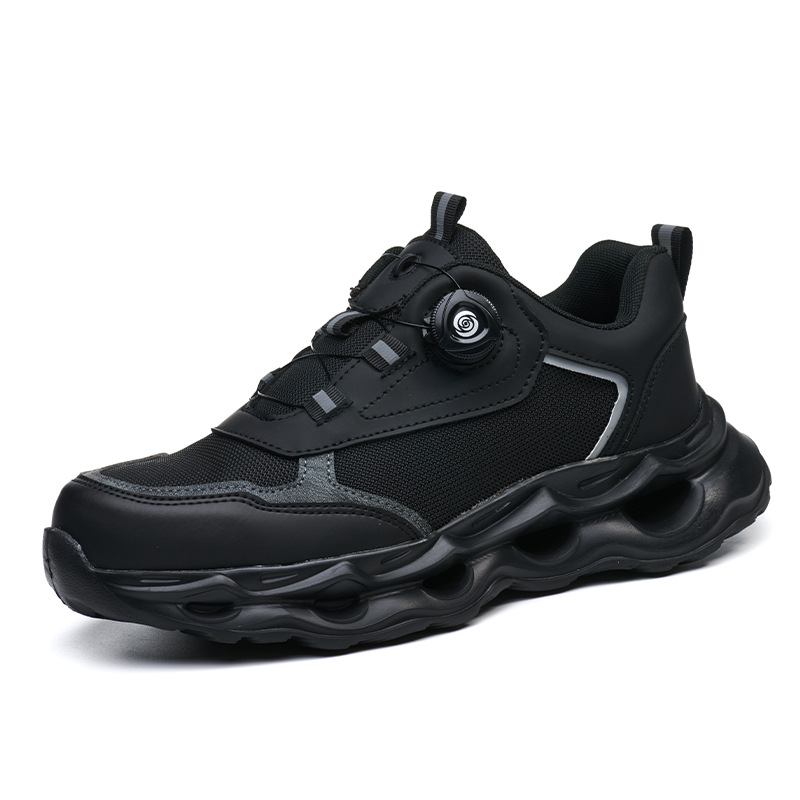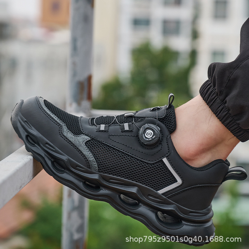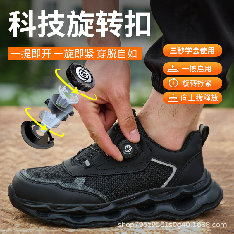 국경 간 회전 버클 노동 보호 신발, 통기성 남성용 안티 스매싱 및 안티 펑크 강철 발가락 안전 신발, 스마트 버클 작업 대외 무역 신발
