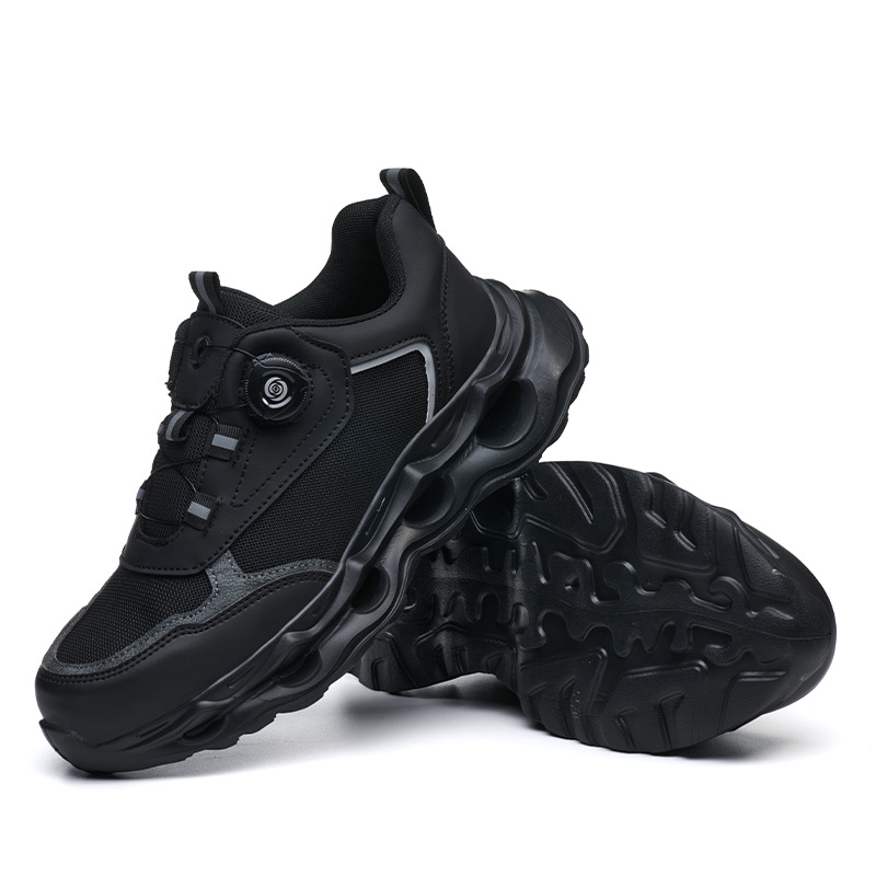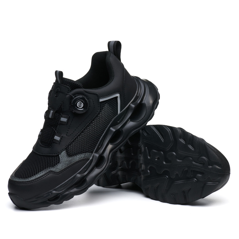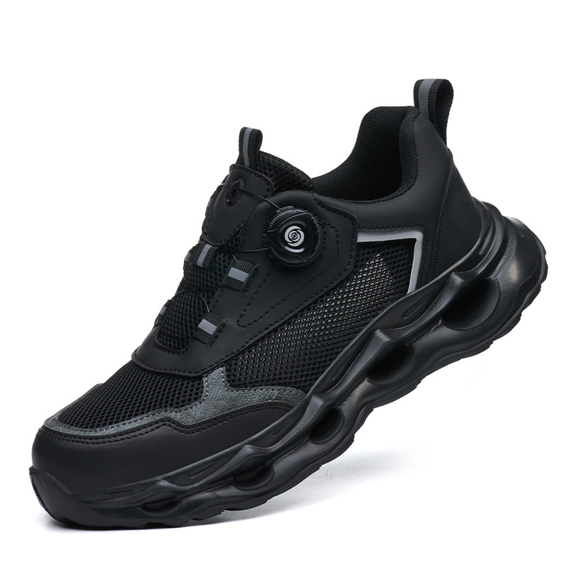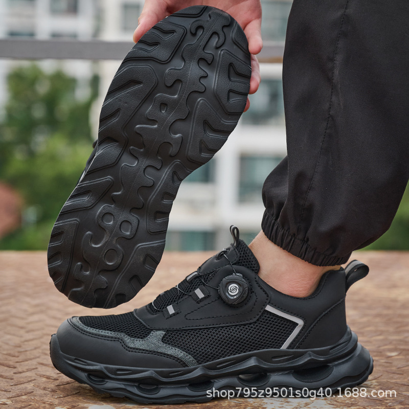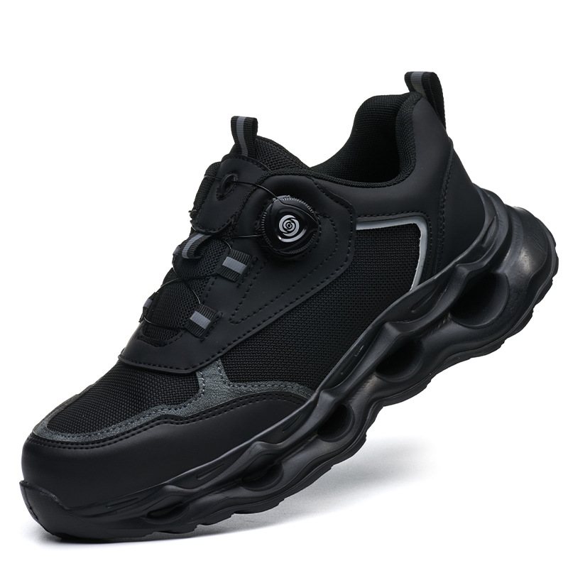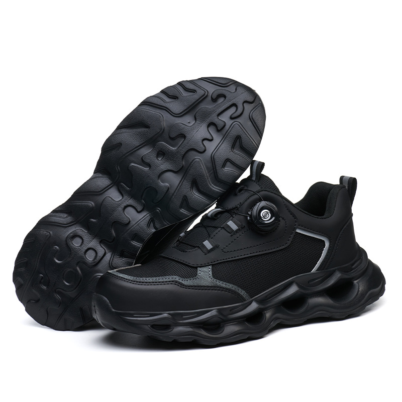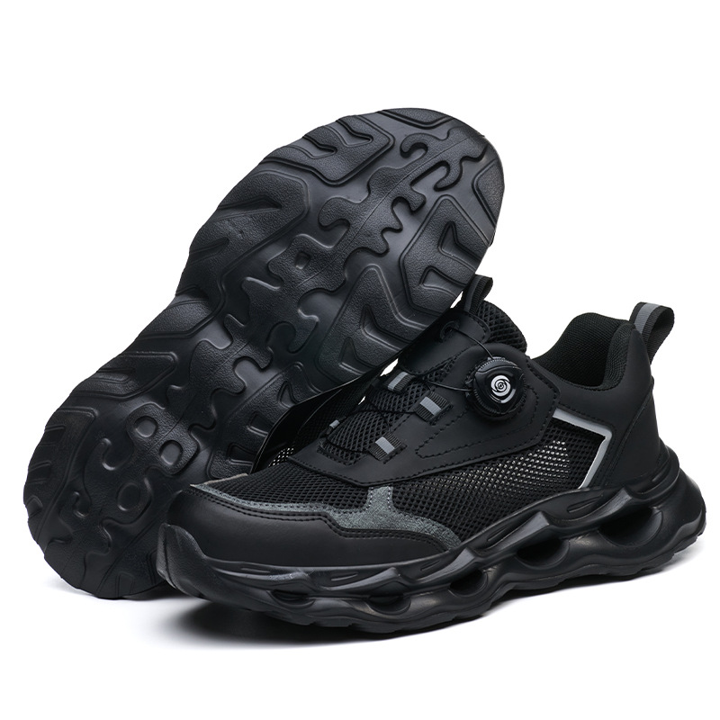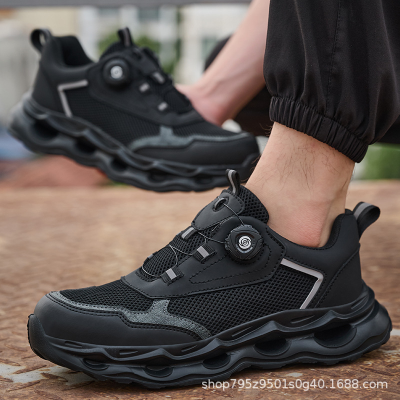 국경 간 회전 버클 노동 보호 신발, 통기성 남성용 안티 스매싱 및 안티 펑크 강철 발가락 안전 신발, 스마트 버클 작업 대외 무역 신발
