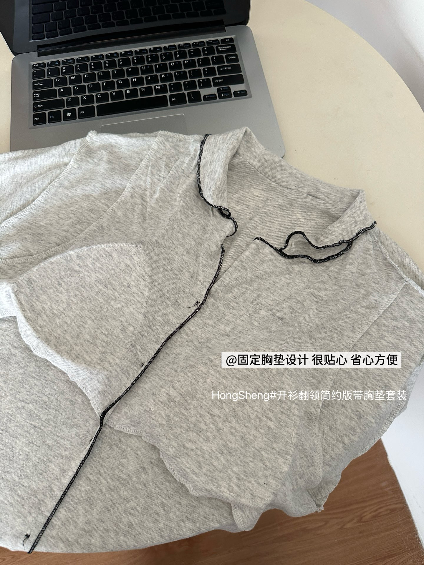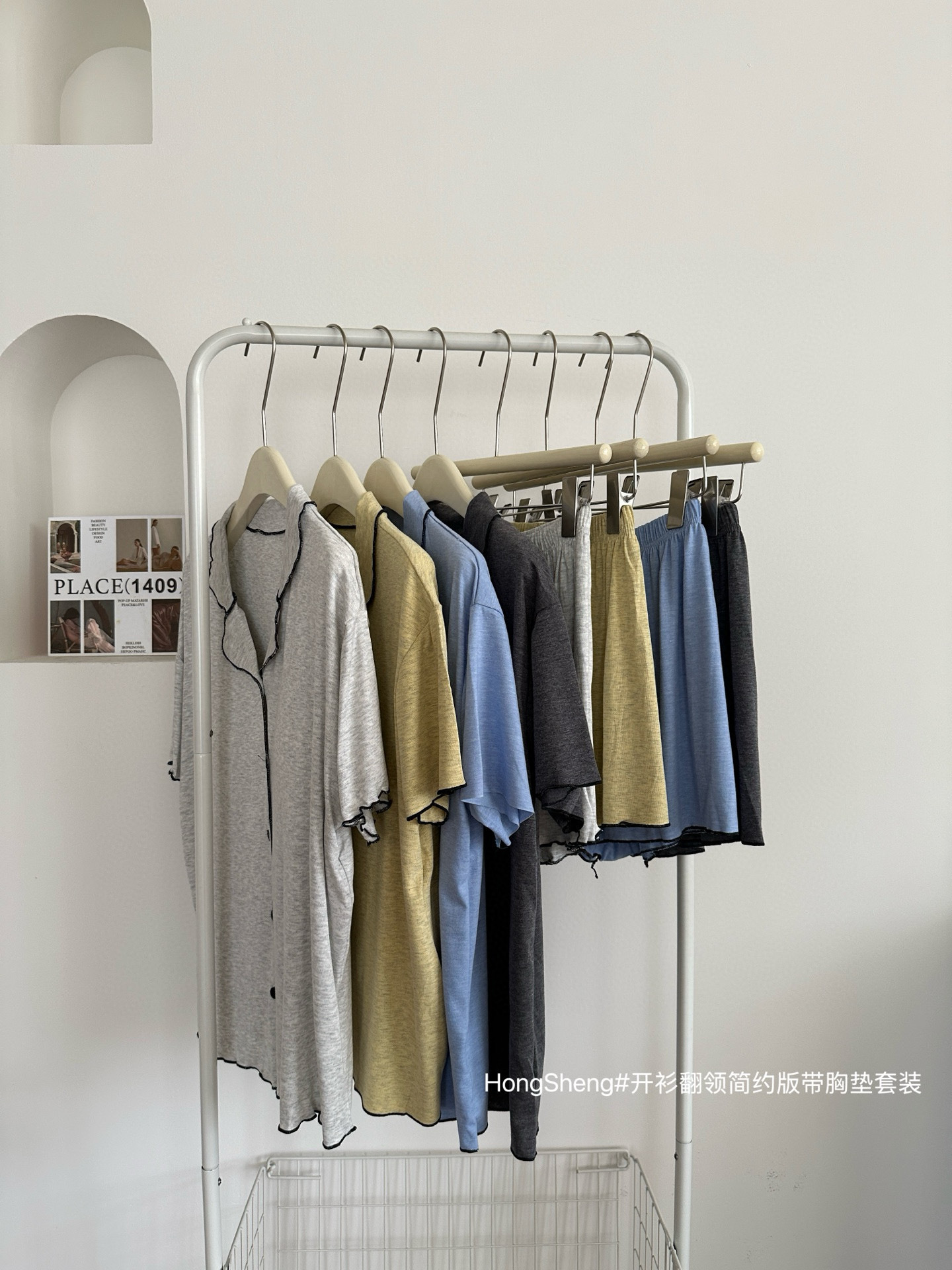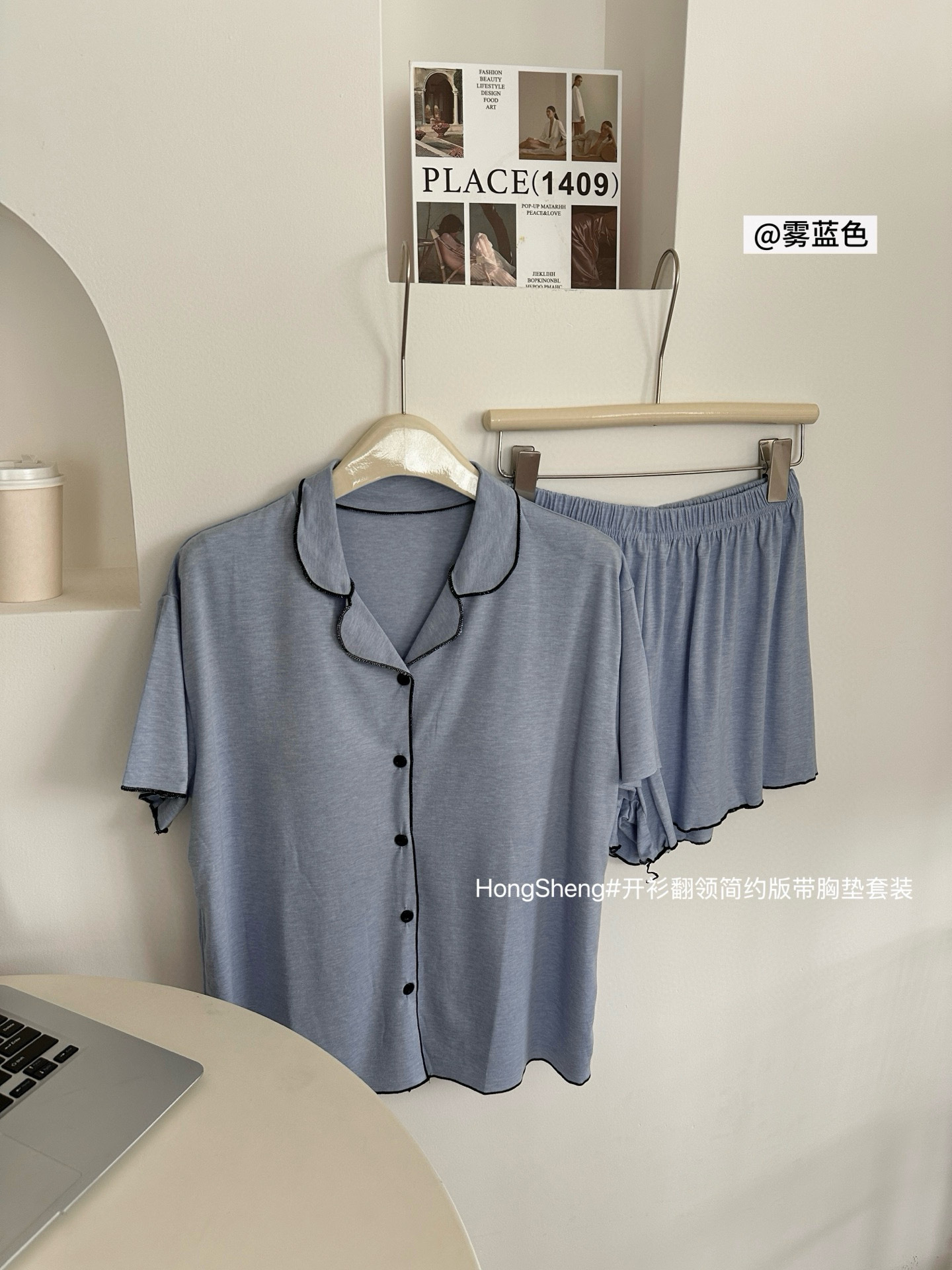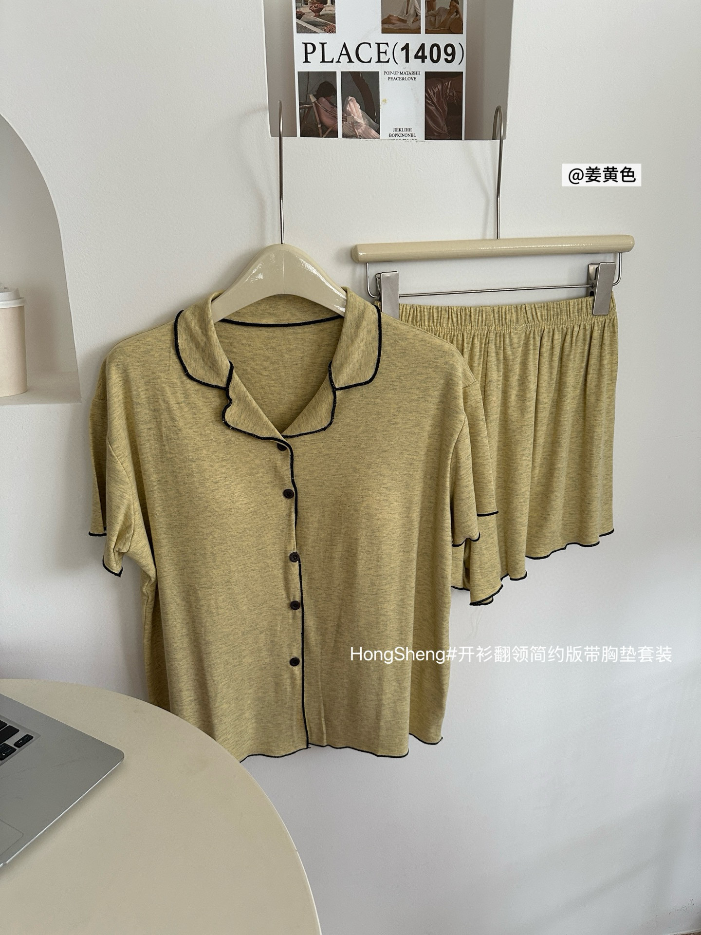 여름 여성을 위한 한국식 심플 모달 잠옷, 가슴 패드가 있는 얇은 가디건, 귀를 뽑은 반팔 반바지 캐주얼 슈트스토어 가기