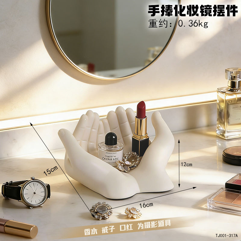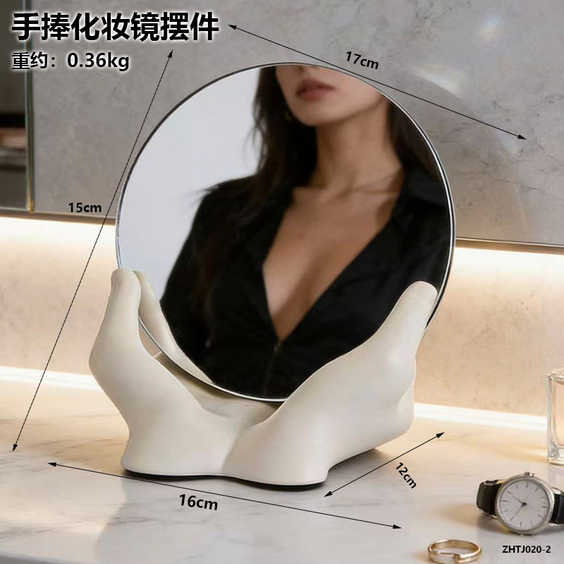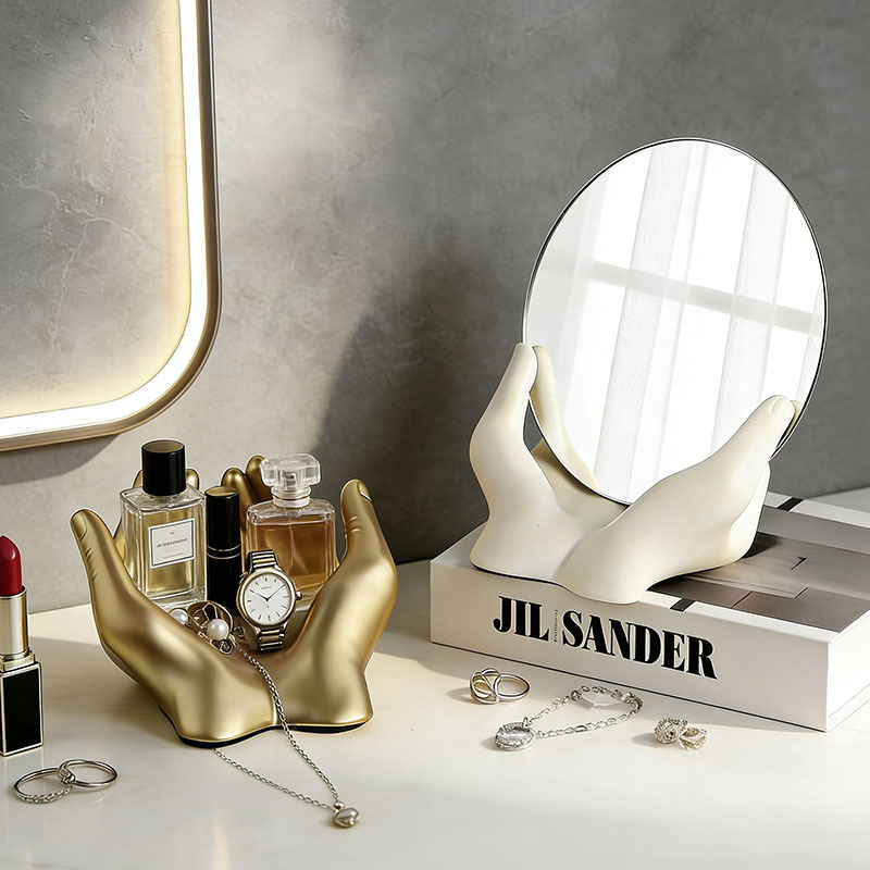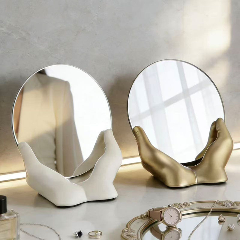 크림 스타일 휴대용 화장 거울 장식품 홈 침실 화장대 데스크탑 하이 엔드 스토리지 장식 장식품