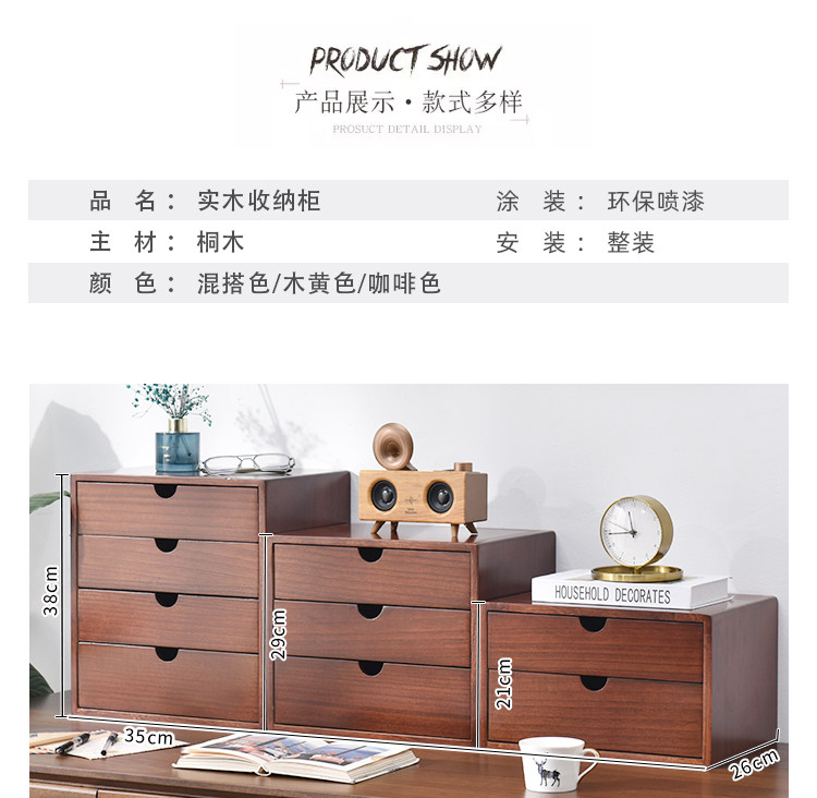 ⇙ 단단한 나무 데스크탑 보관함 서랍형 다층 데스크탑 보관 캐비닛 사무실 잡다한 파일 학생 보관함스토어 가기