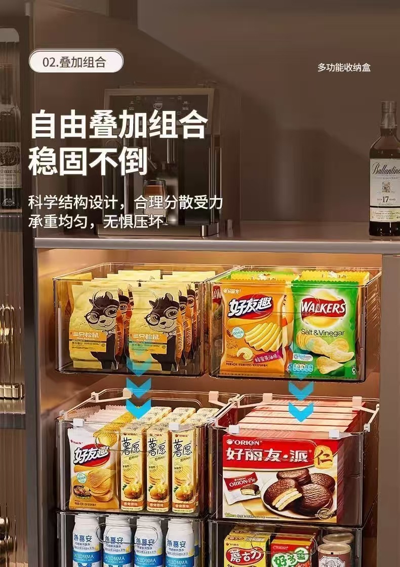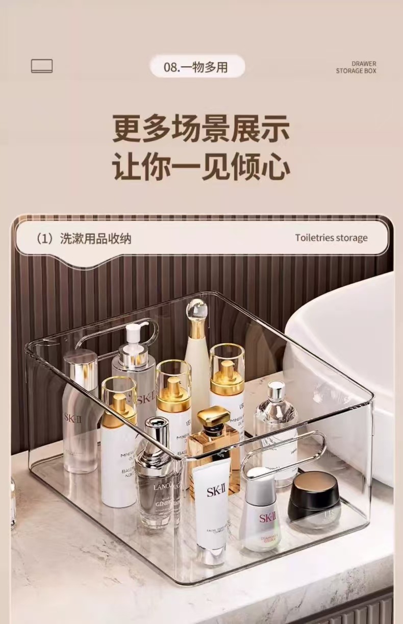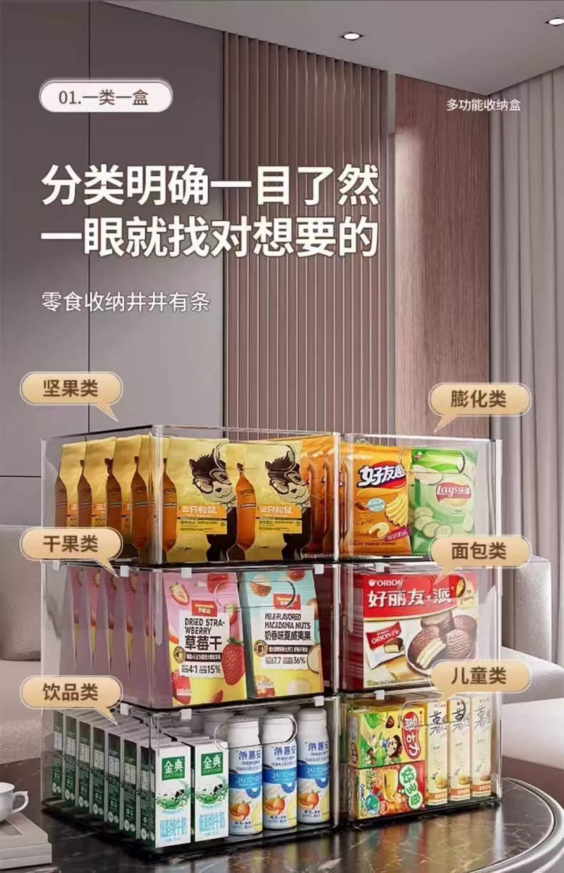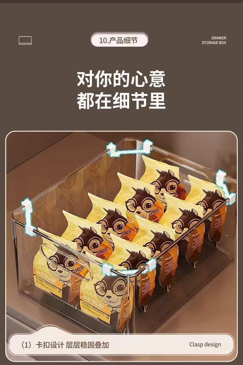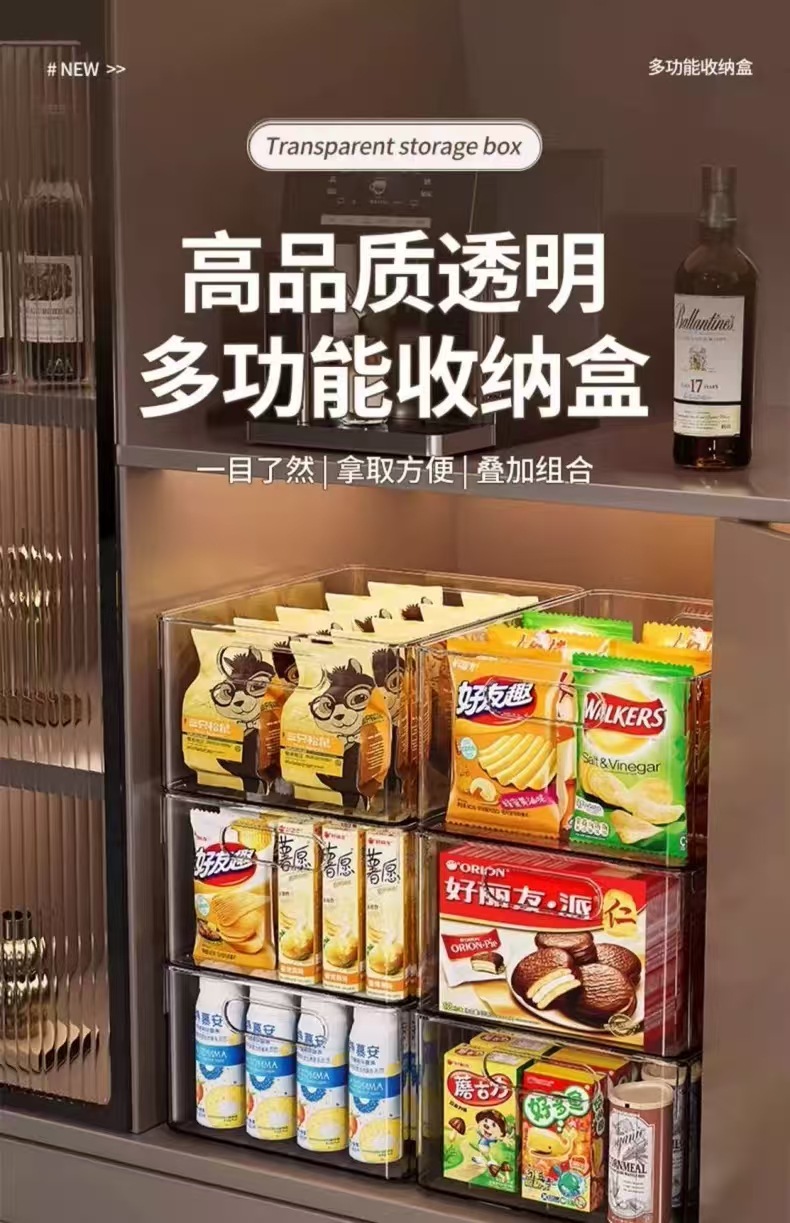 잡화 및 간식 정리용 캐비닛 보관함, 좁고 긴 보관 바구니, 데스크탑 투명 아크릴 직사각형 보관함