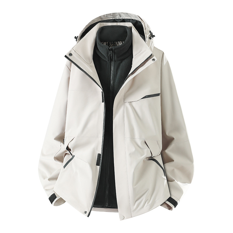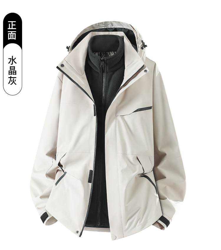 새로운 가을, 겨울 야외 두꺼운 방풍 및 방수 고품질 재킷 남성과 여성 따뜻한 3-in-1 0.05kg 피스 세트