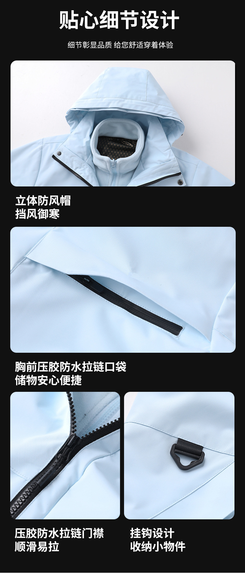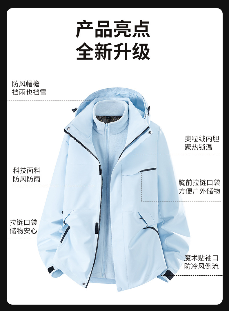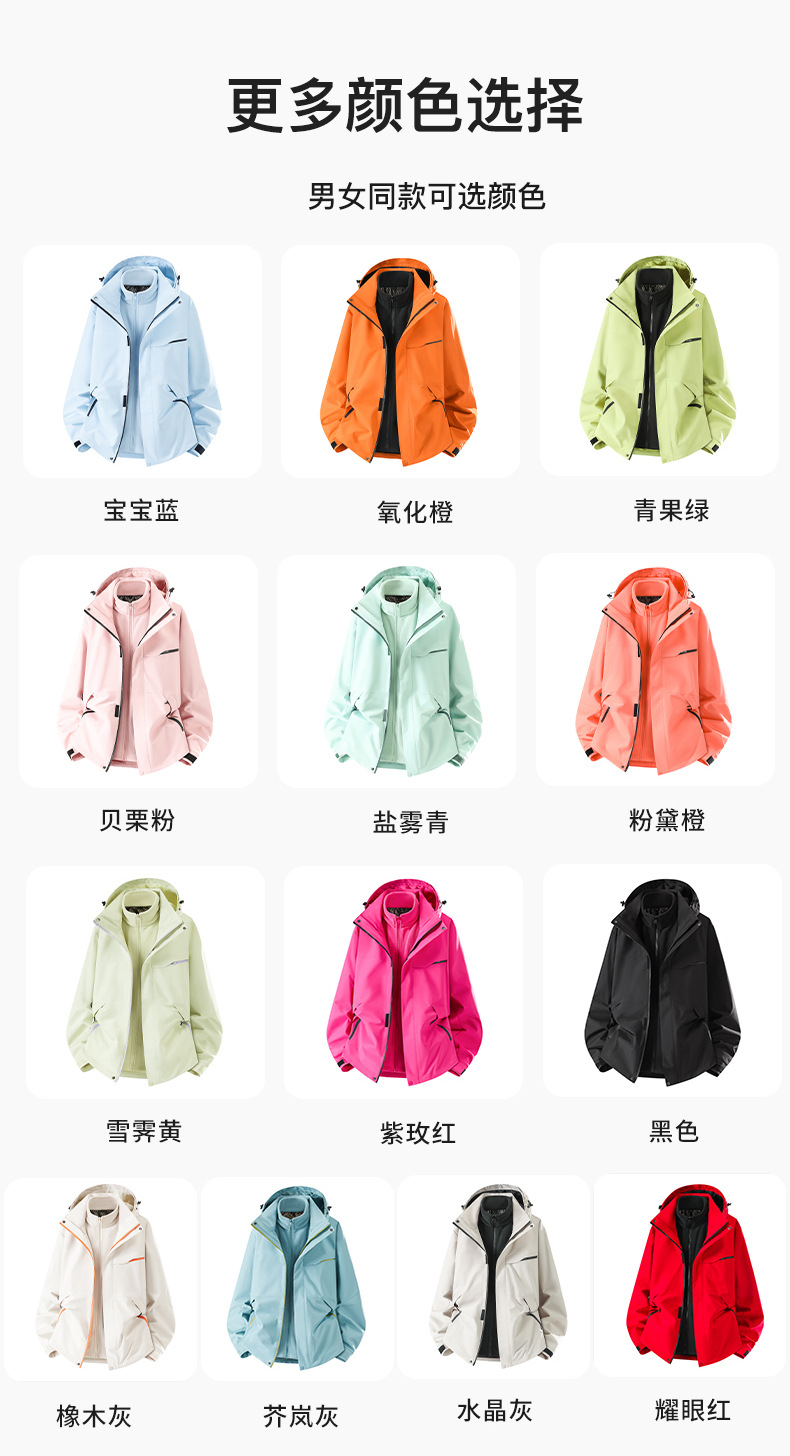 새로운 가을, 겨울 야외 두꺼운 방풍 및 방수 고품질 재킷 남성과 여성 따뜻한 3-in-1 0.05kg 피스 세트스토어 가기