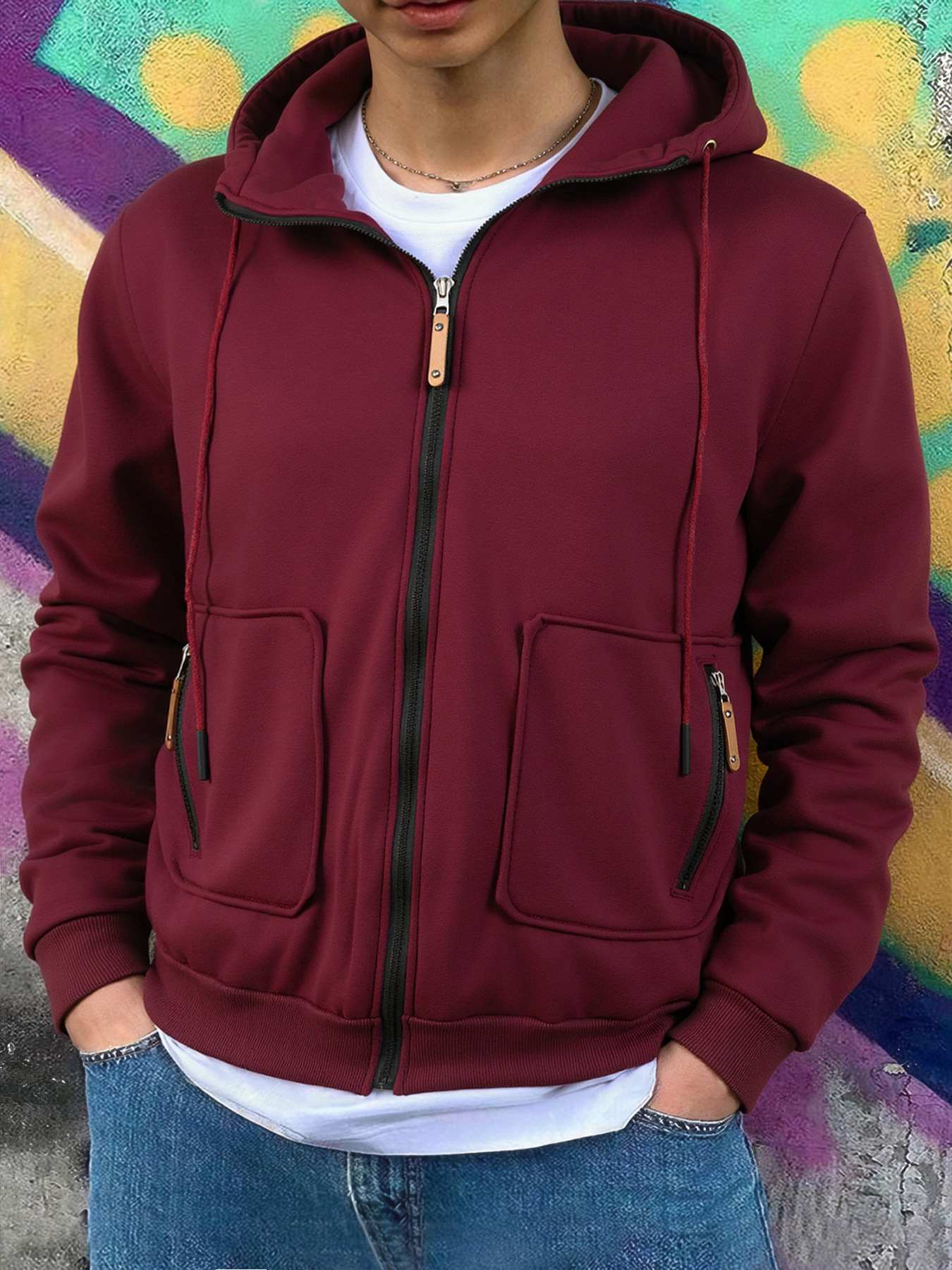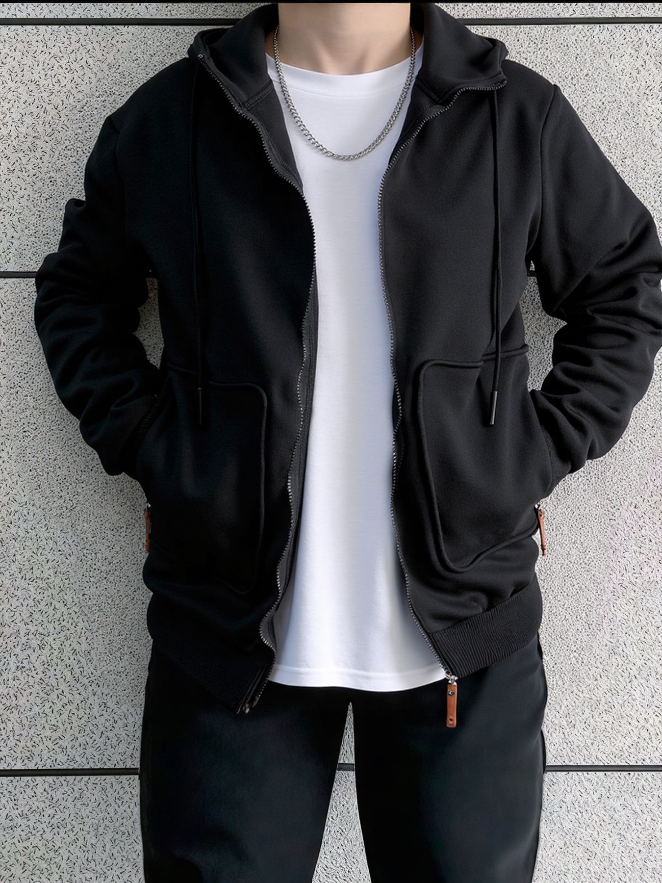 봄과 가을 새로운 패션 트렌드 카디건 탑 라이트 버전 후드 티셔츠 남성용 포켓 캐주얼 스웨트 플러스 벨벳