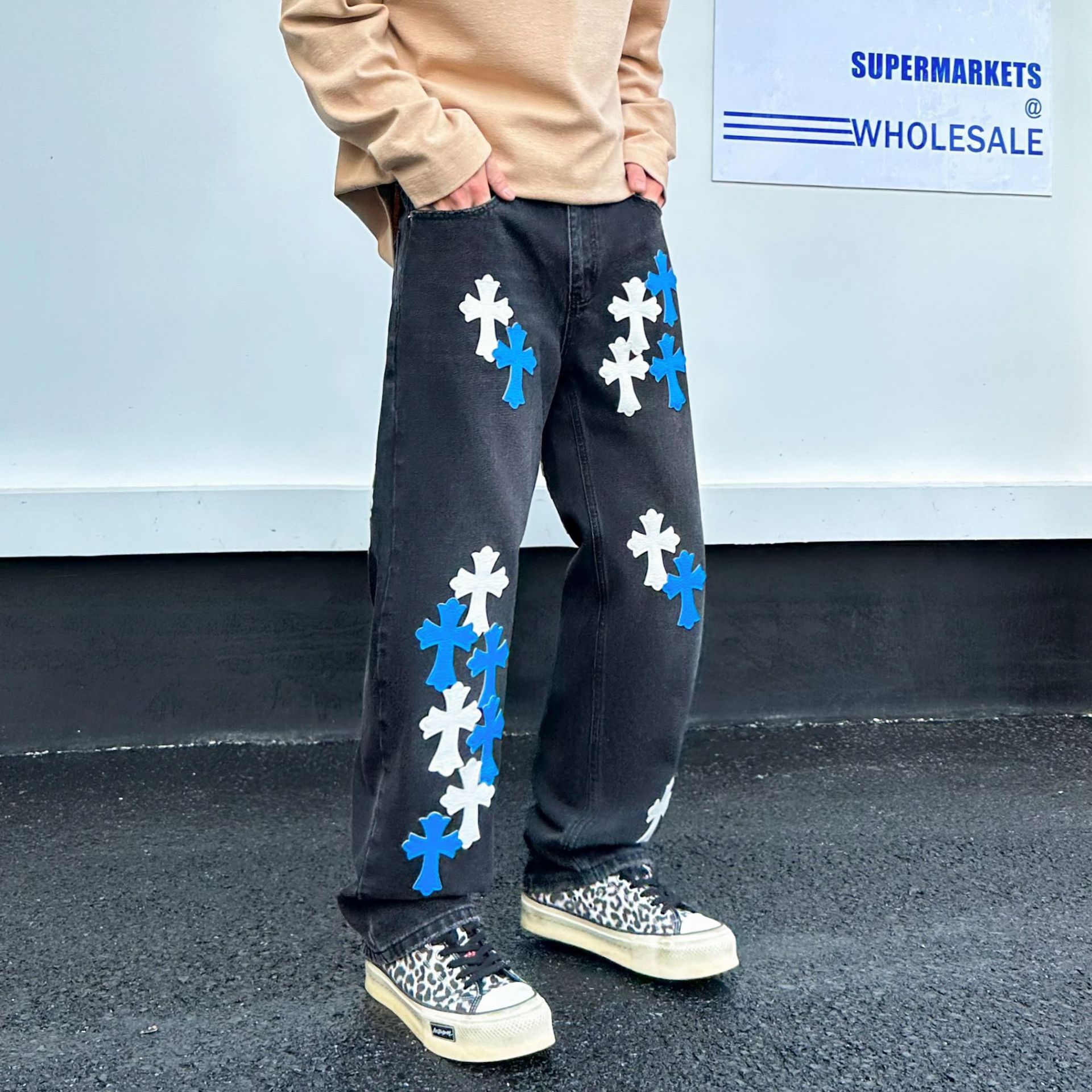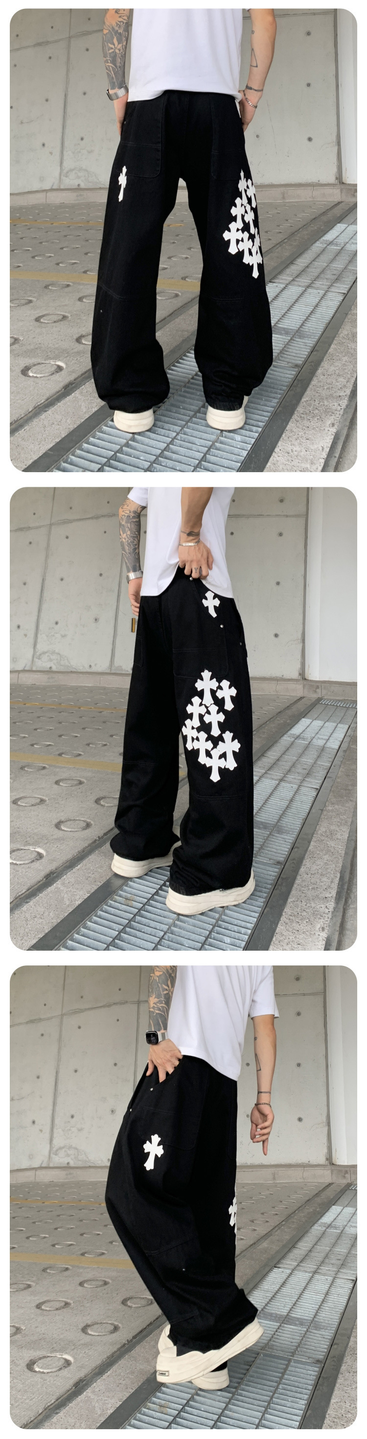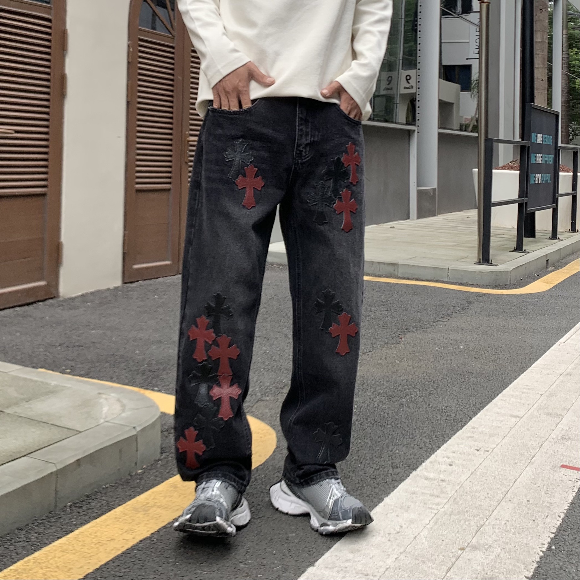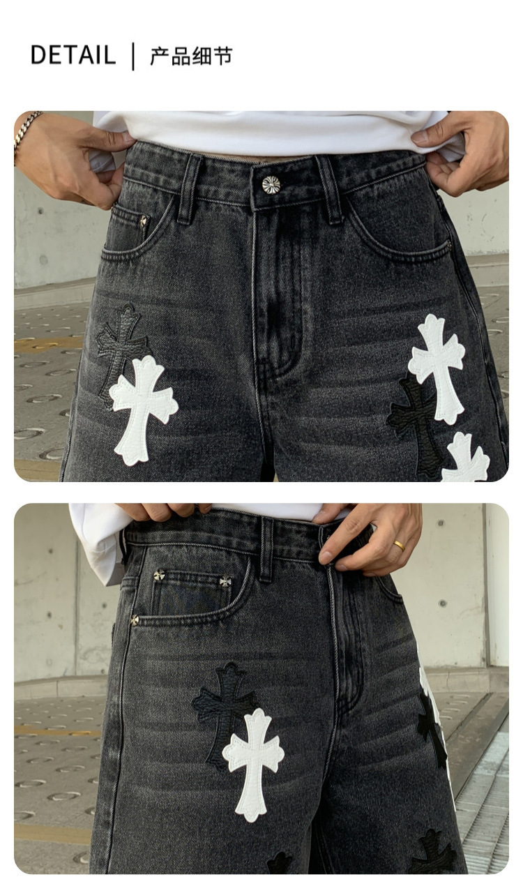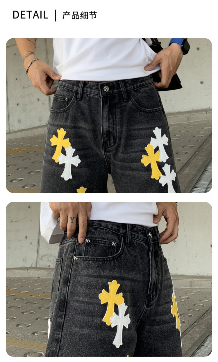 뉴 크로우 청바지 남성 아메리칸 패션 브랜드 크로스 루즈 스트레이트 캐주얼 와이드 팬츠 남성 여름스토어 가기
