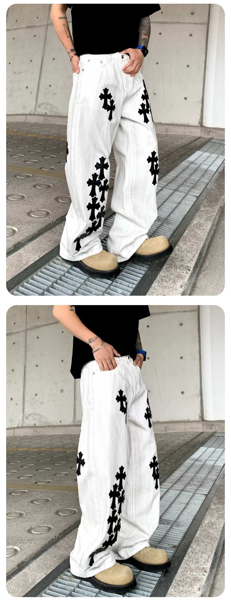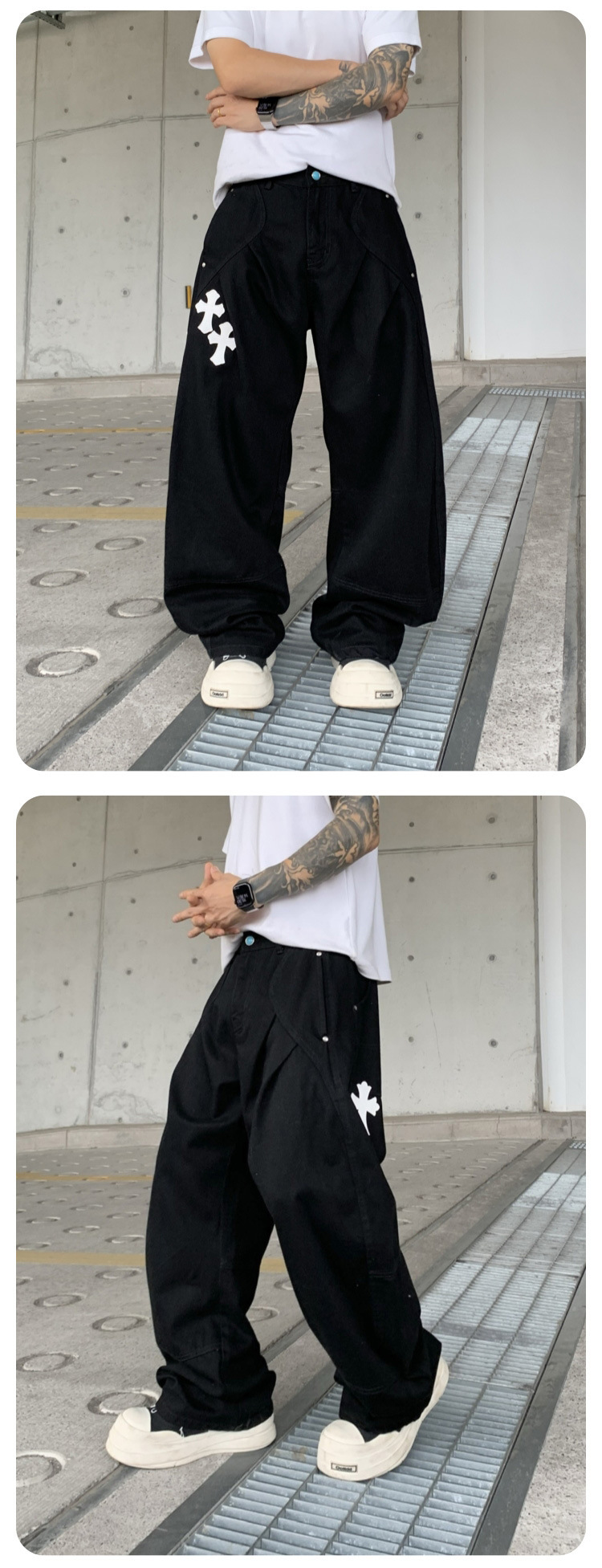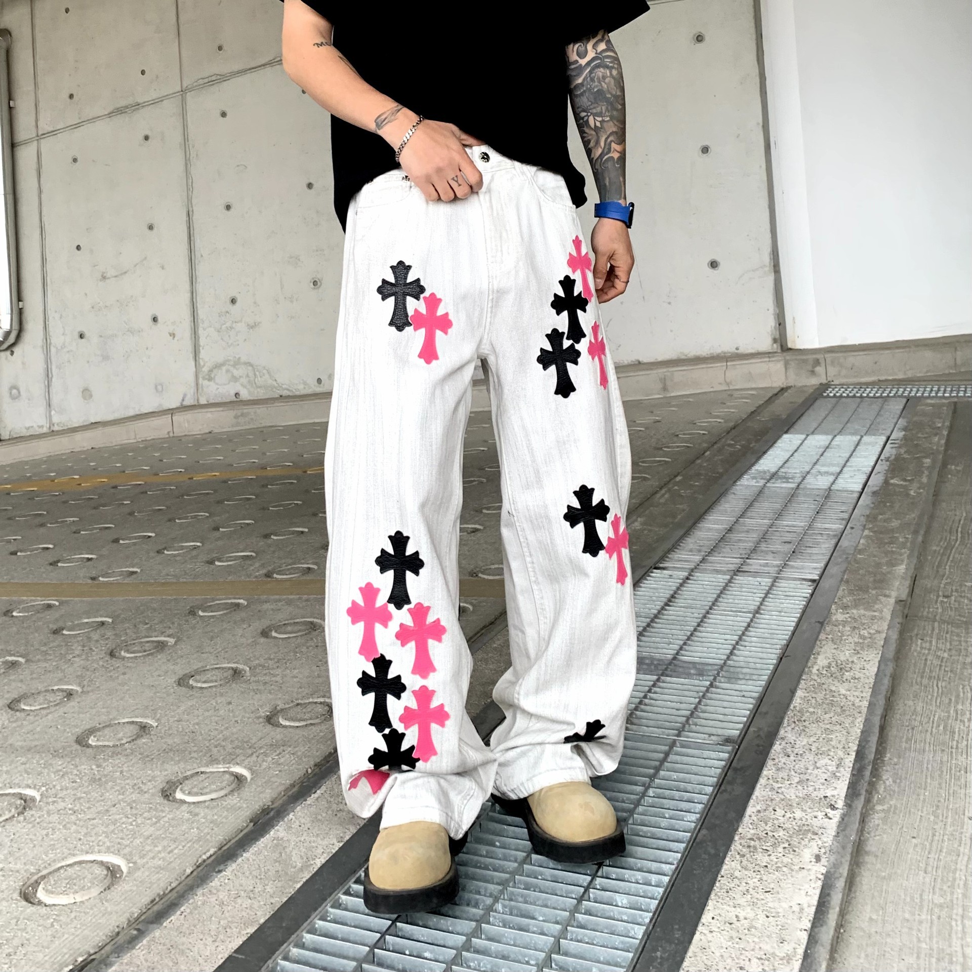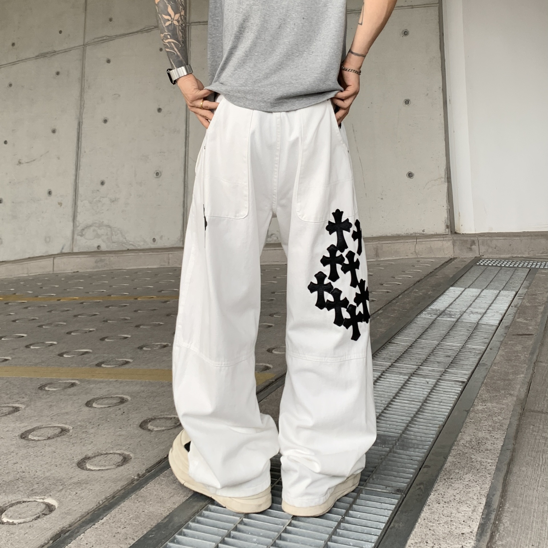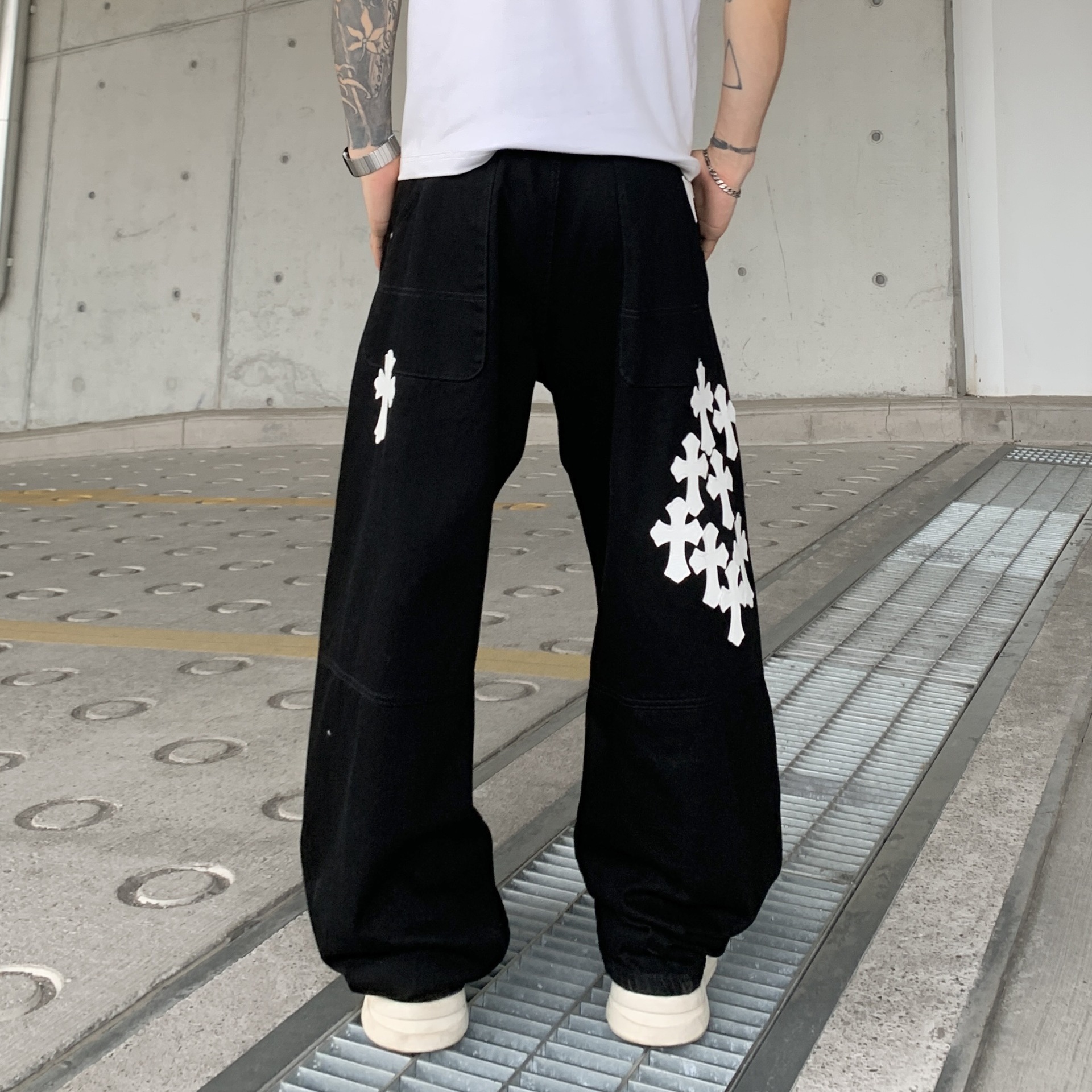 뉴 크로우 청바지 남성 아메리칸 패션 브랜드 크로스 루즈 스트레이트 캐주얼 와이드 팬츠 남성 여름스토어 가기