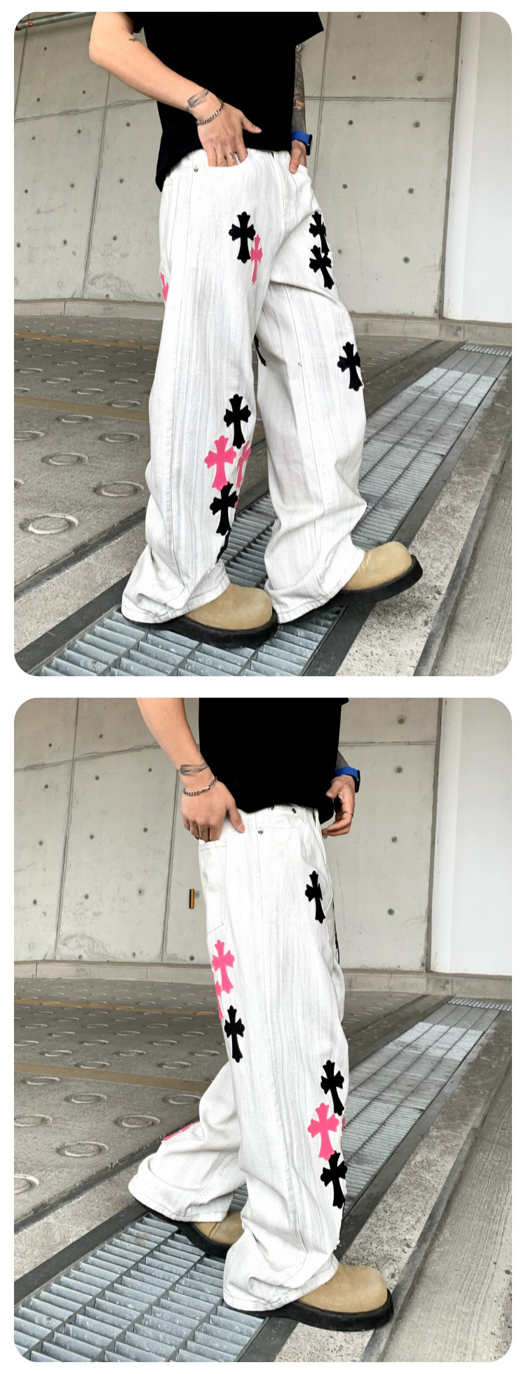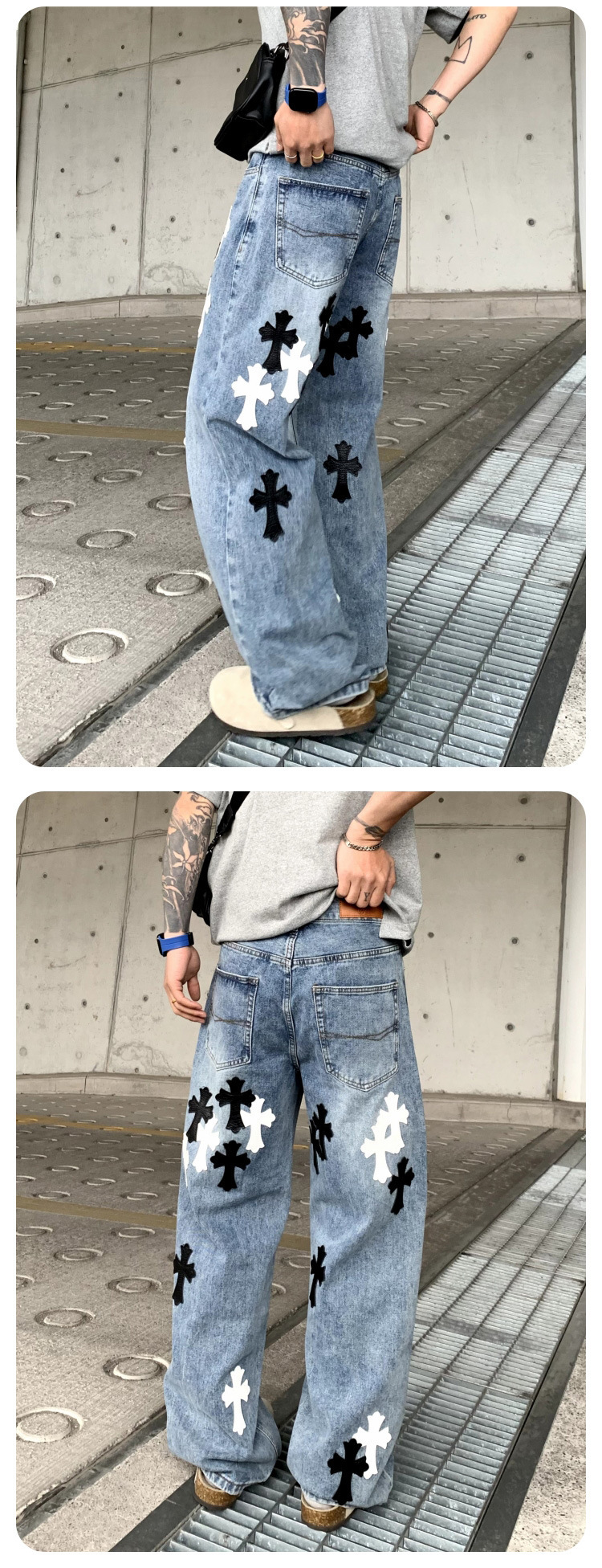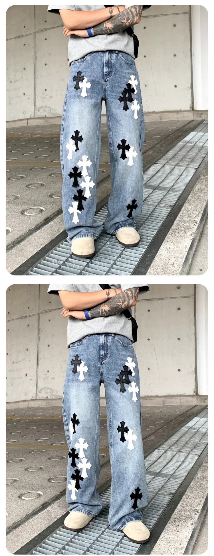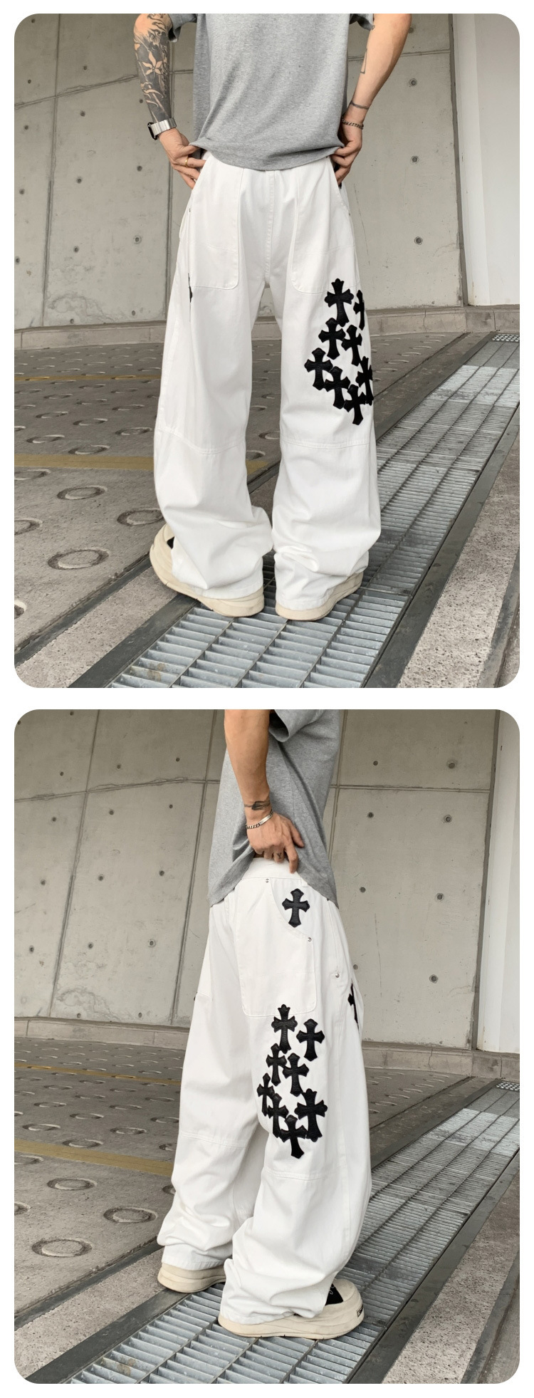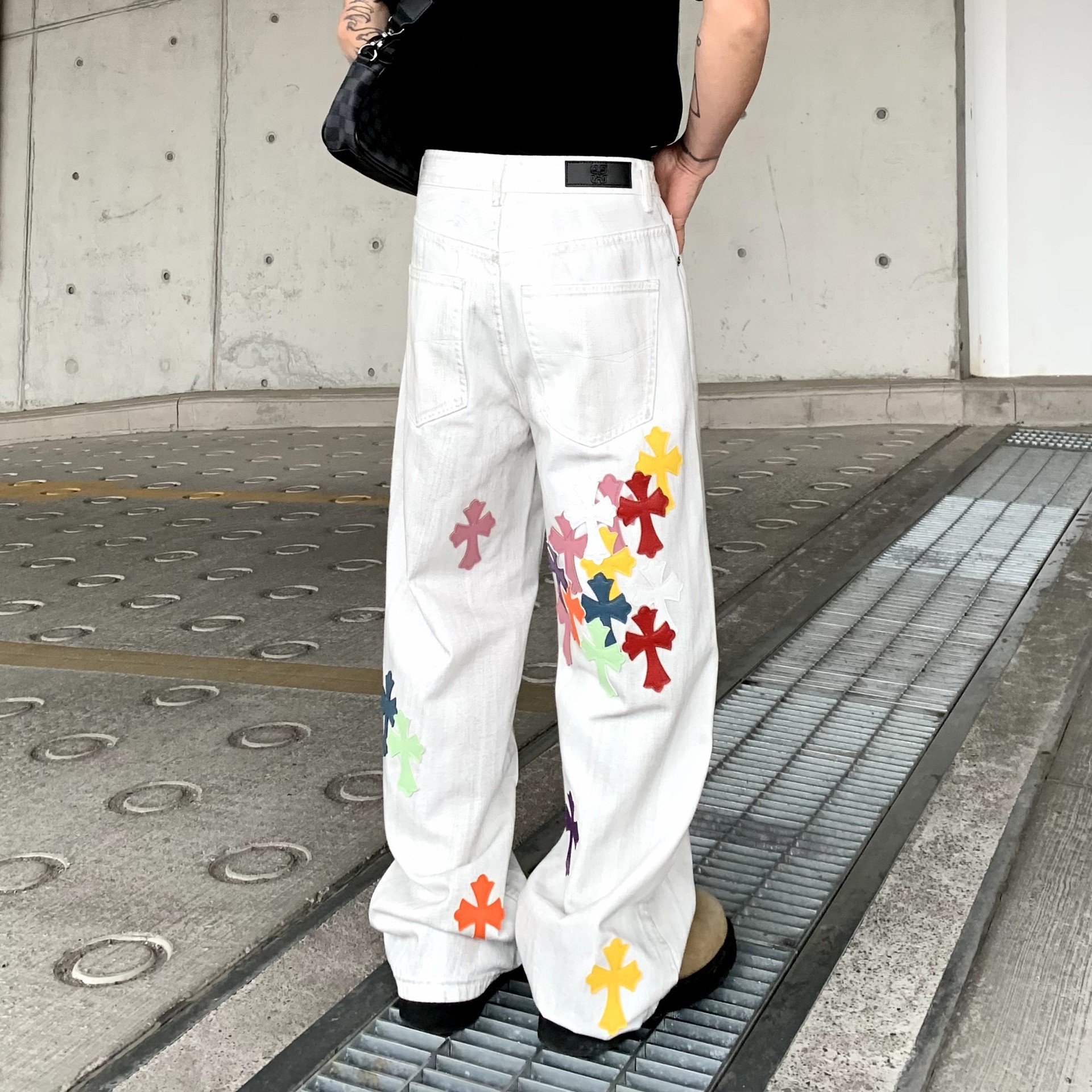 뉴 크로우 청바지 남성 아메리칸 패션 브랜드 크로스 루즈 스트레이트 캐주얼 와이드 팬츠 남성 여름스토어 가기